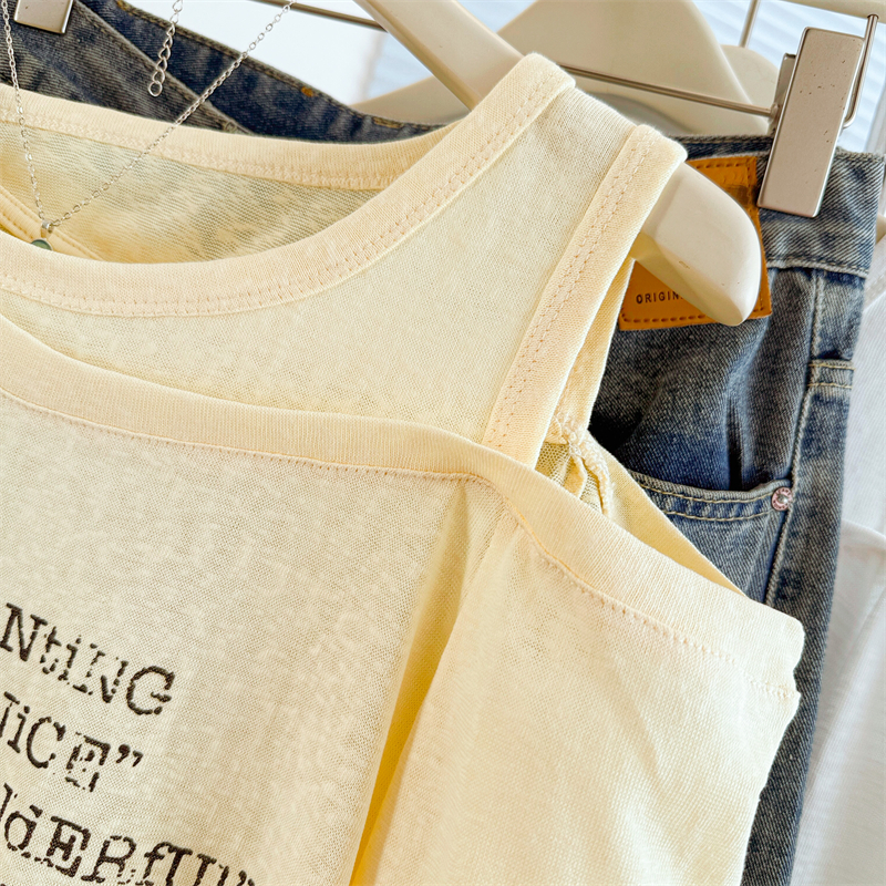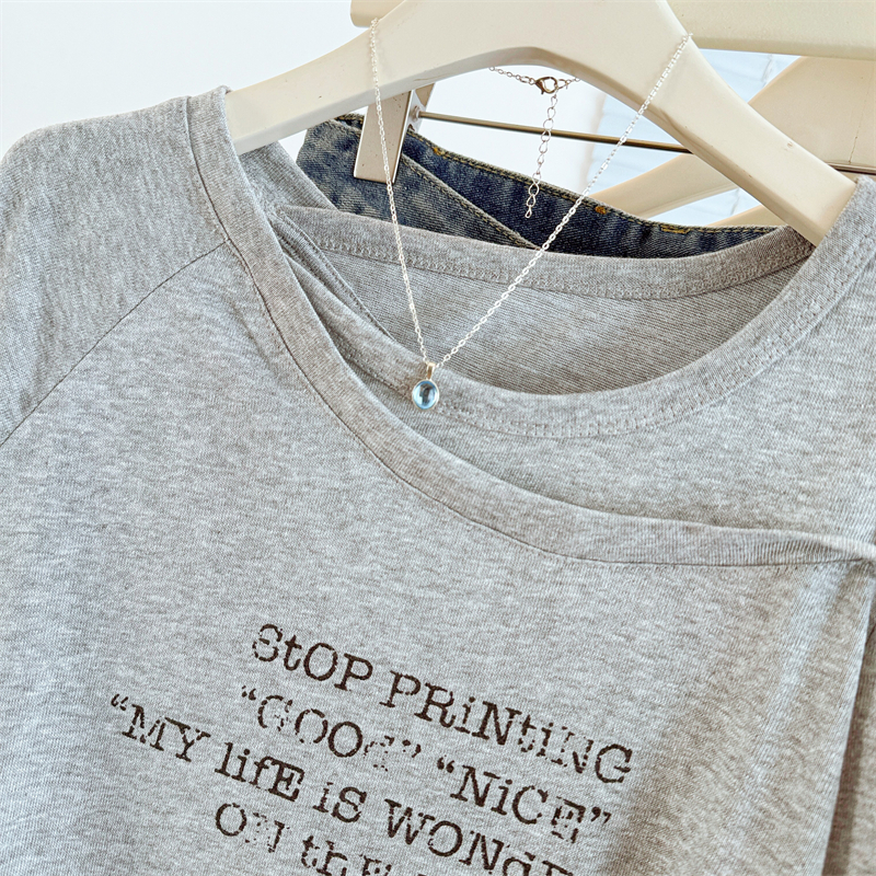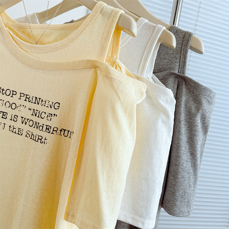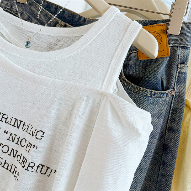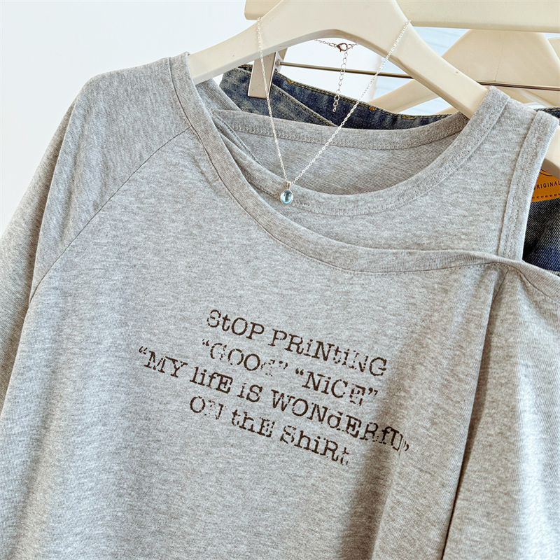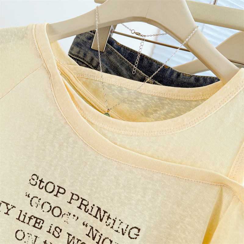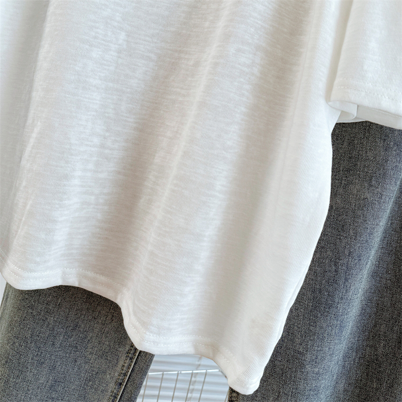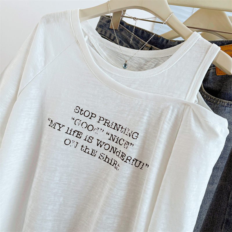 RY2459# 实拍大码女装夏季新款露肩设计字母百搭针织棉T宽松显瘦休闲上衣