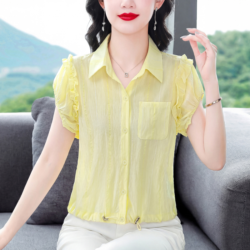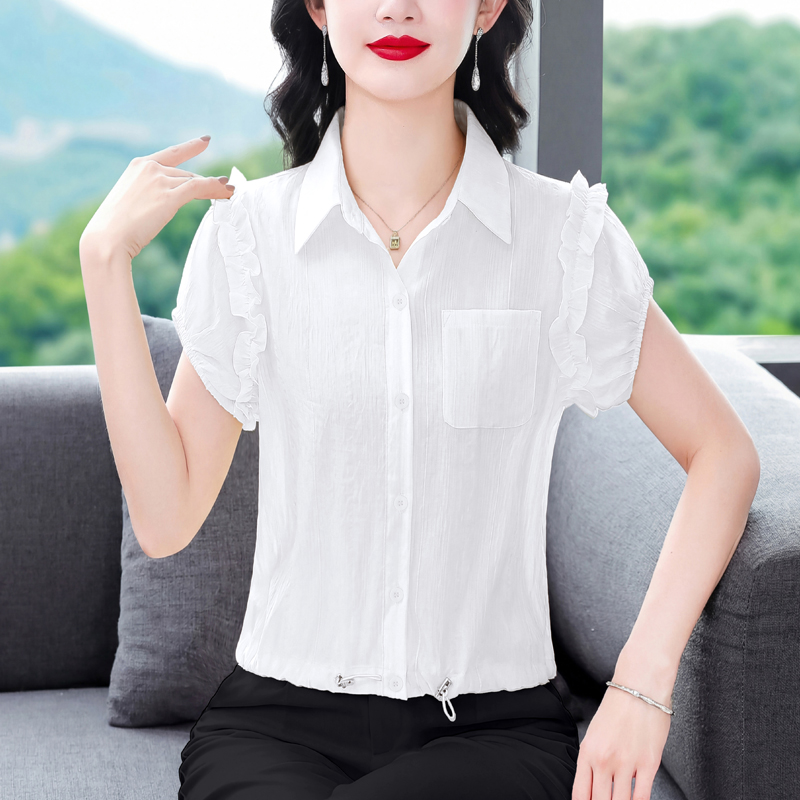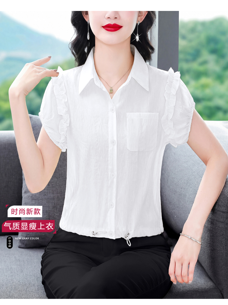 RY2470# 夏装新款短袖衬衫时尚大码上衣宽松遮肚子百搭
