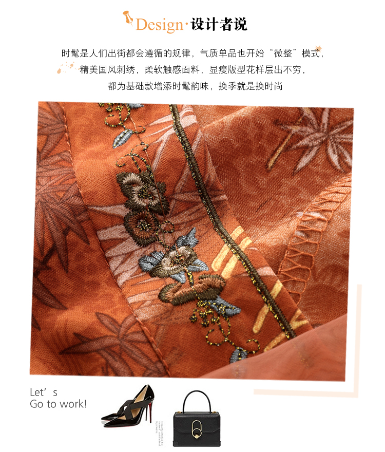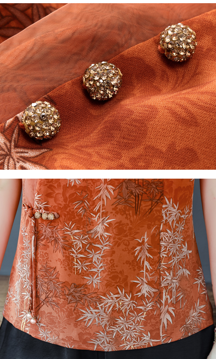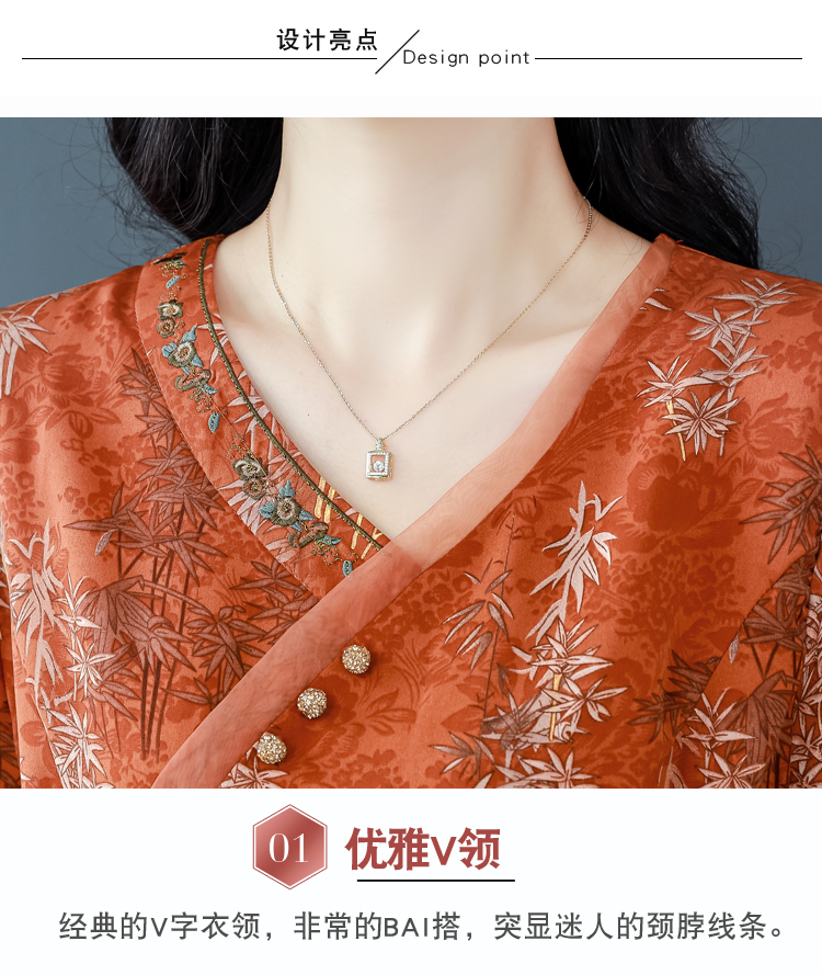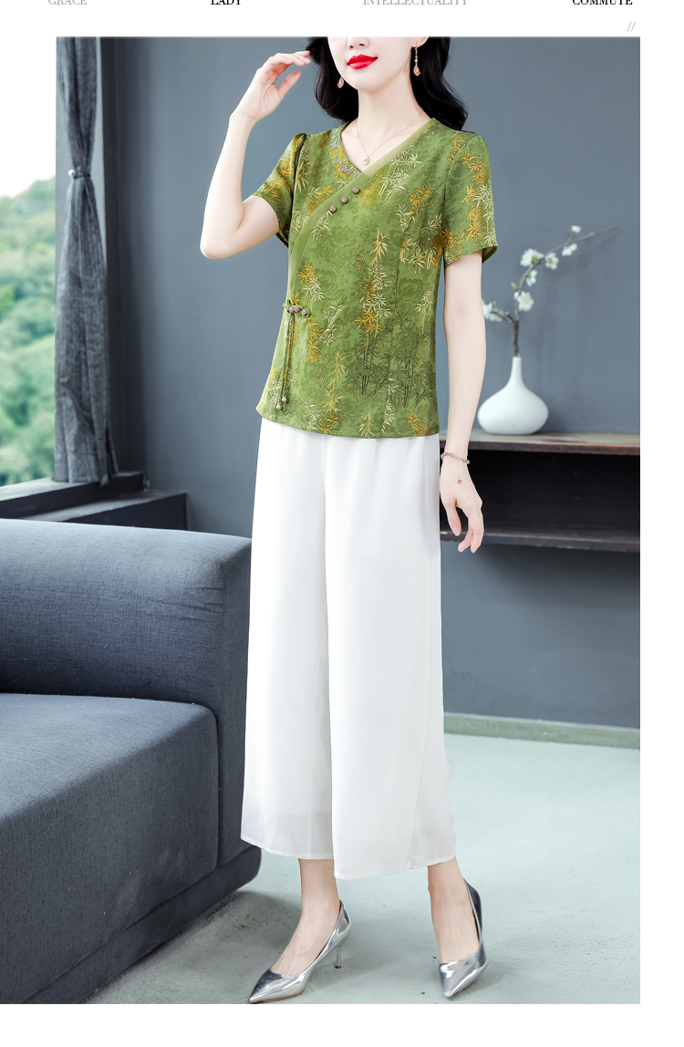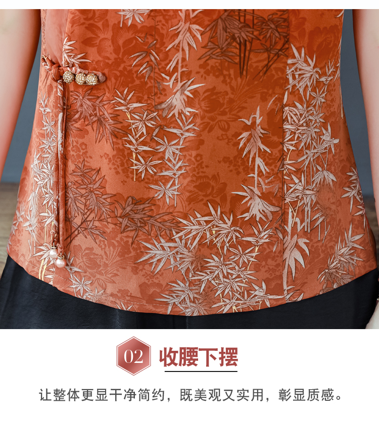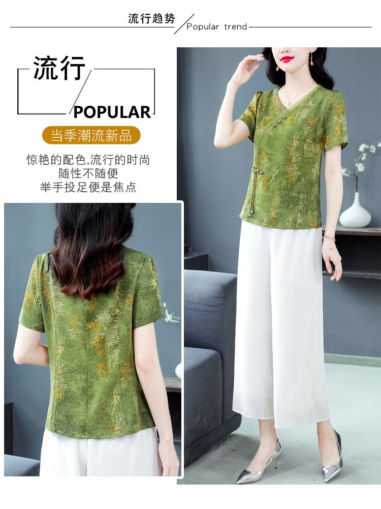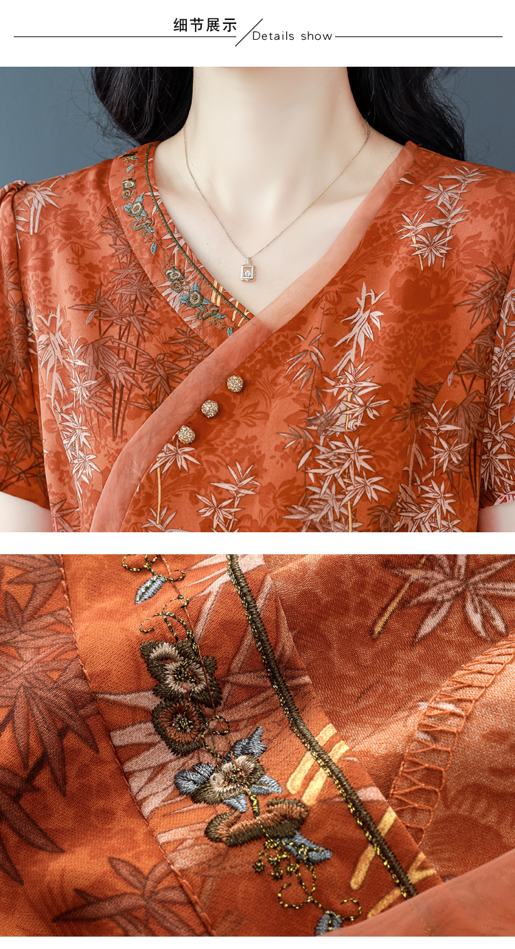 RY2475# 夏季复古国风短袖翻领印花宽松显瘦修身大码上衣女