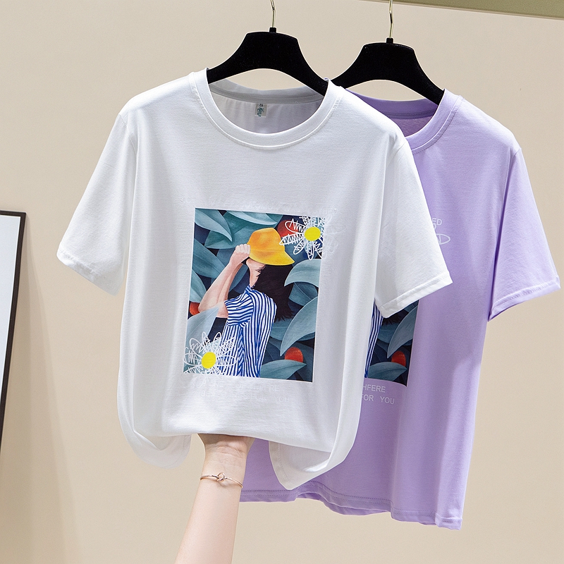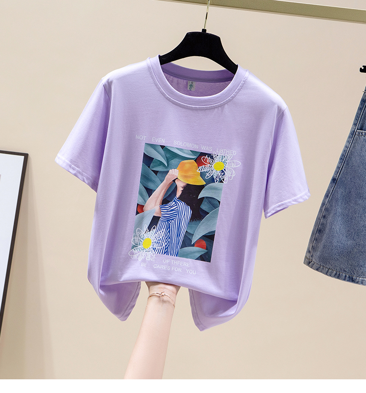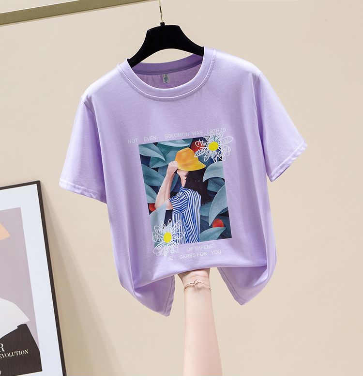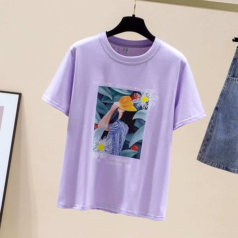 RY2481# 紫色短袖t恤女夏季2026新款设计感小众宽松显瘦上衣纯棉T桖潮