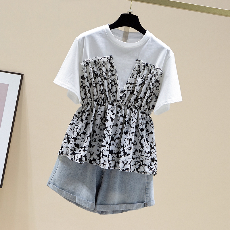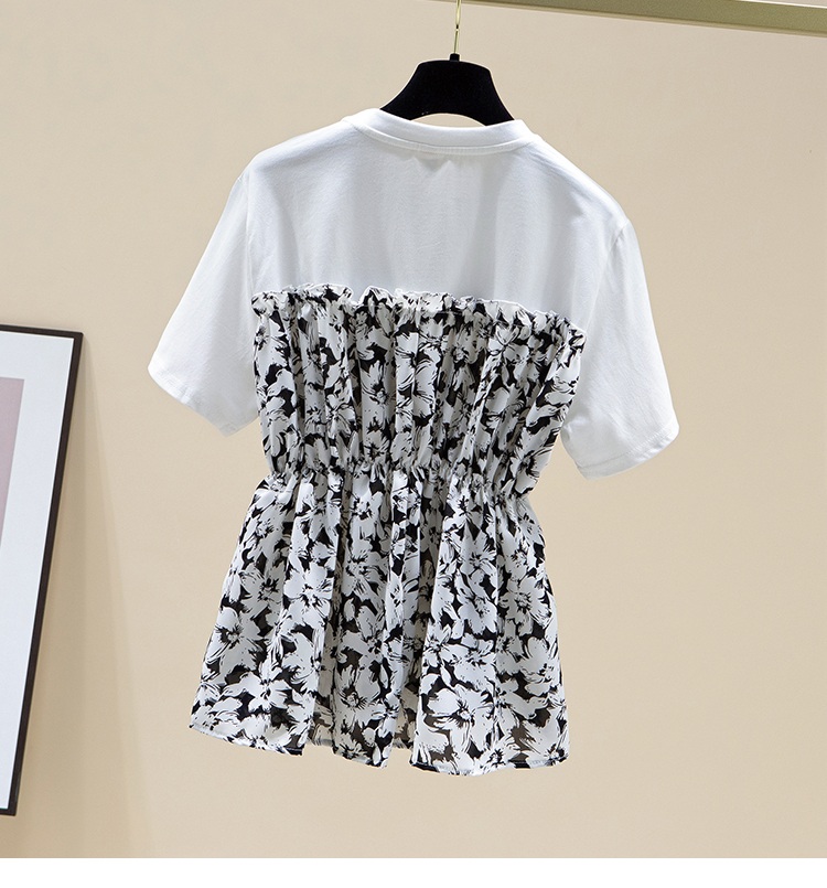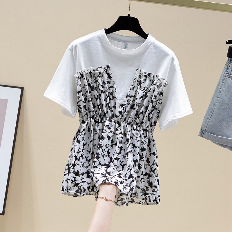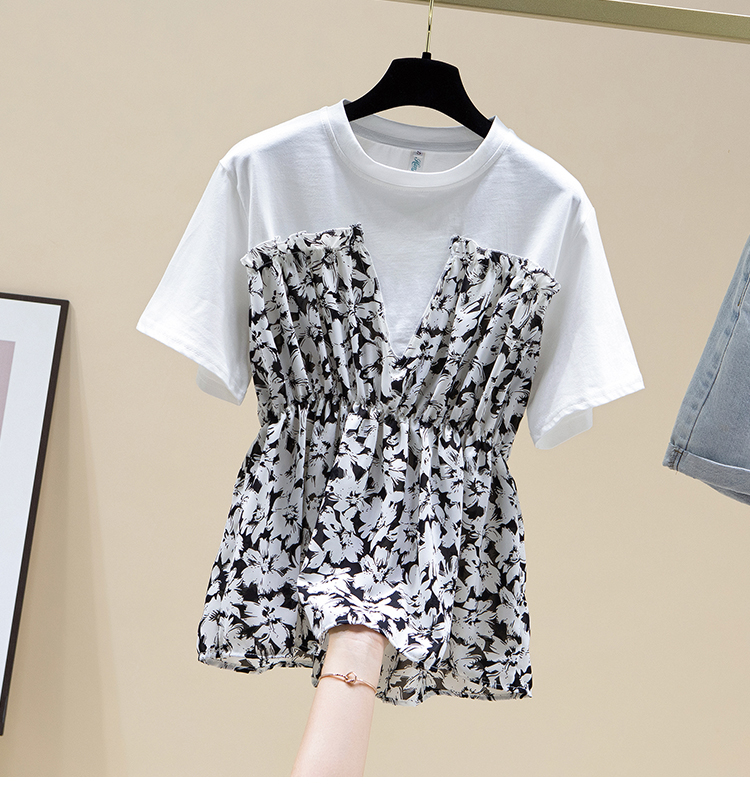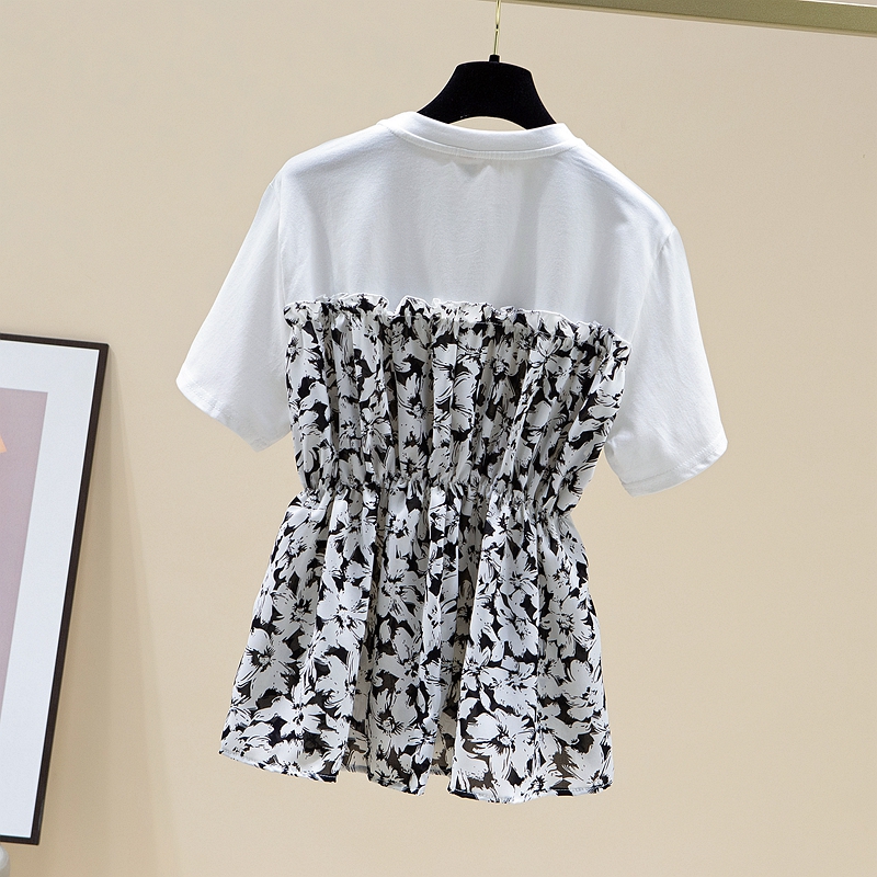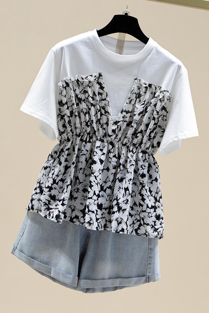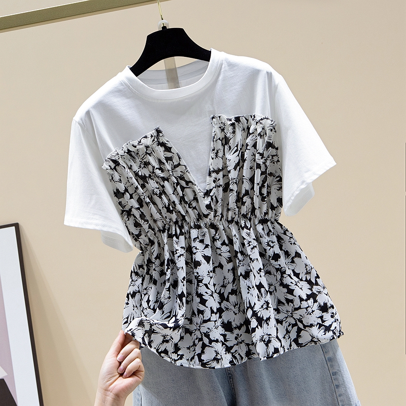RY2484# 碎花收腰上衣女夏短袖设计感小众2026年新款拼接娃娃衫法式t恤潮