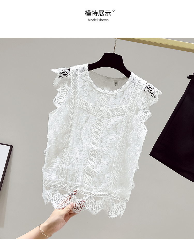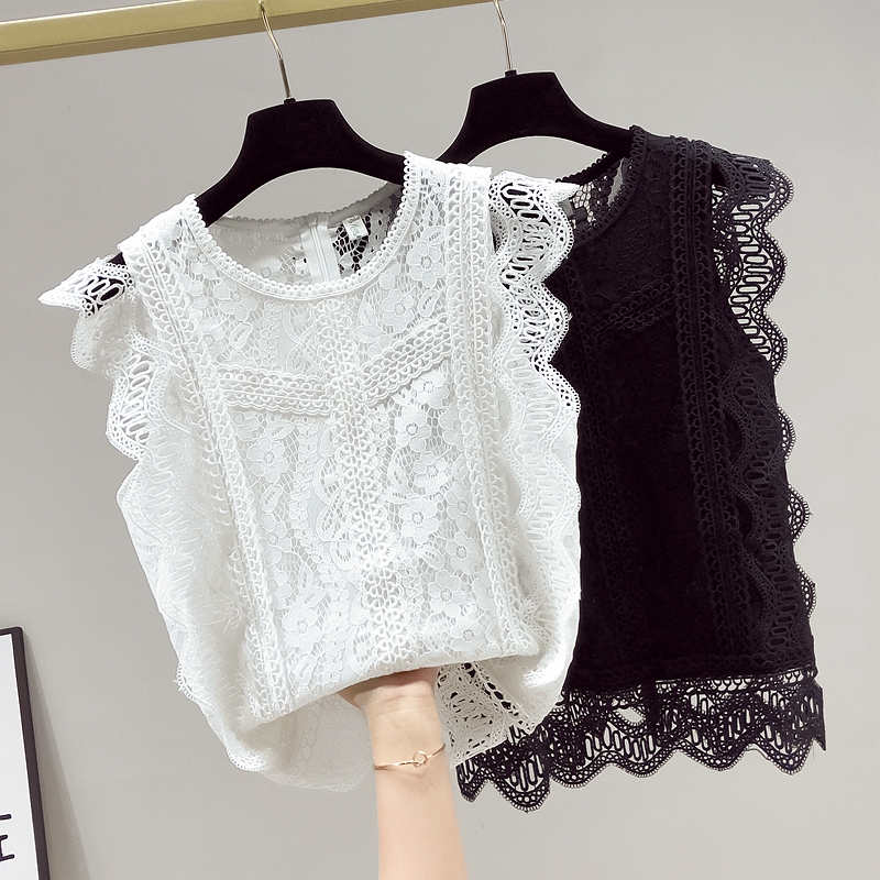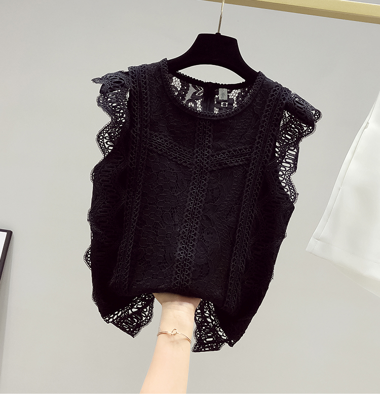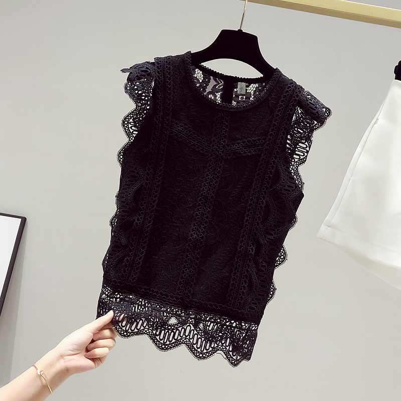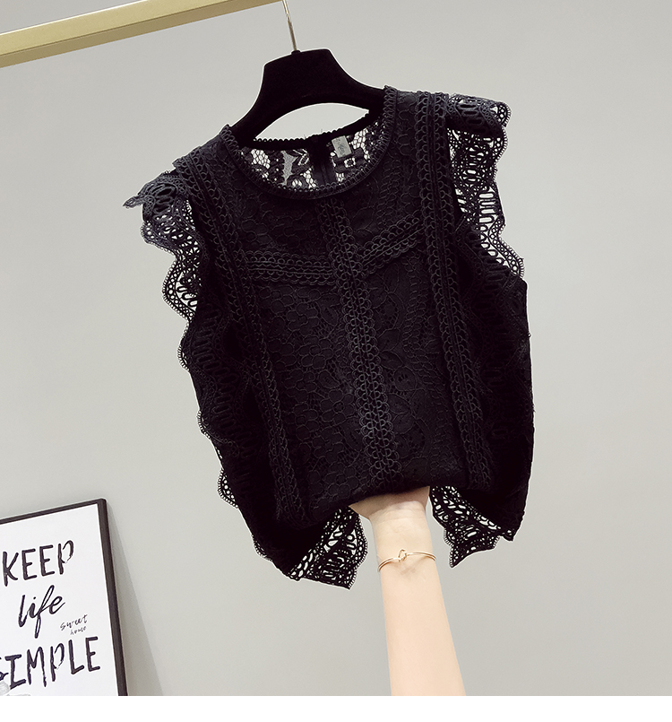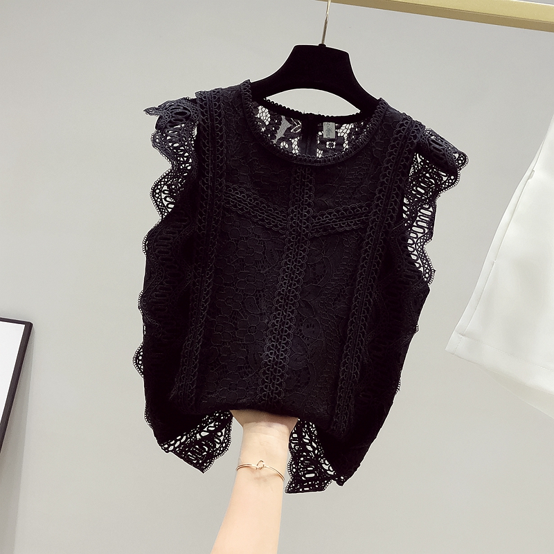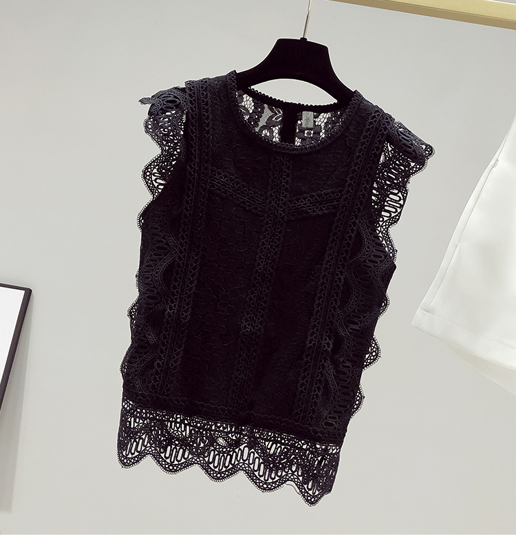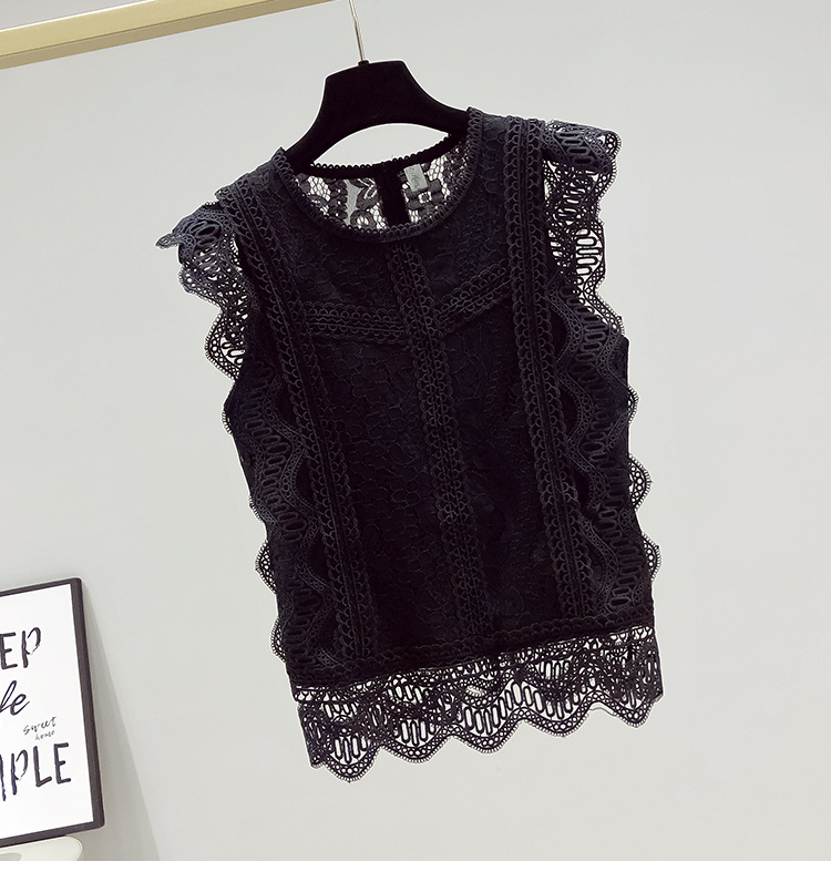 RY2486# 欧洲站黑色蕾丝衫女上衣2026夏季新款时尚波浪边无袖镂空洋气小衫