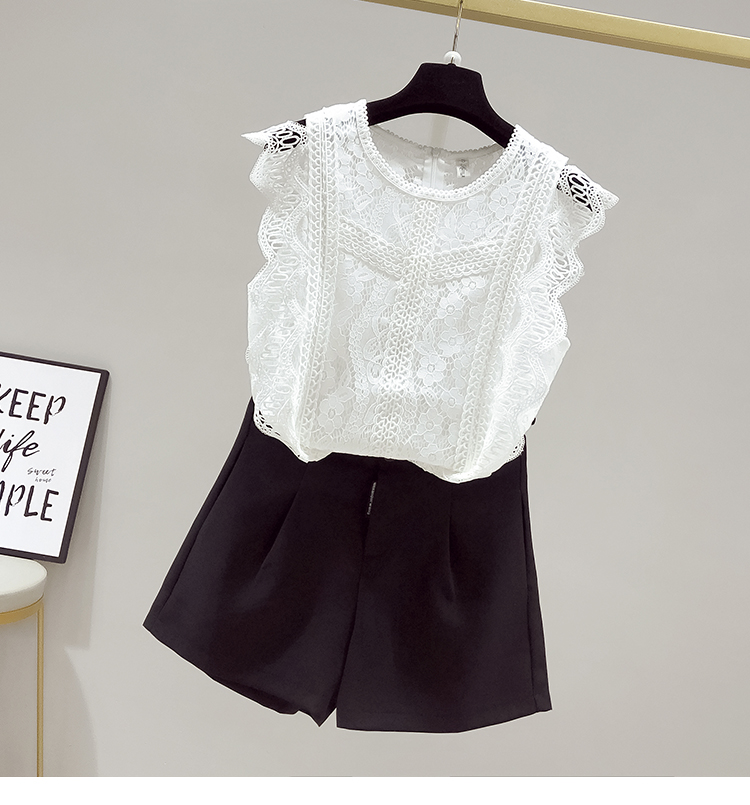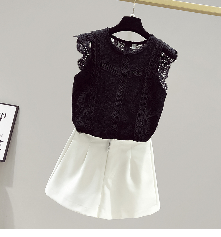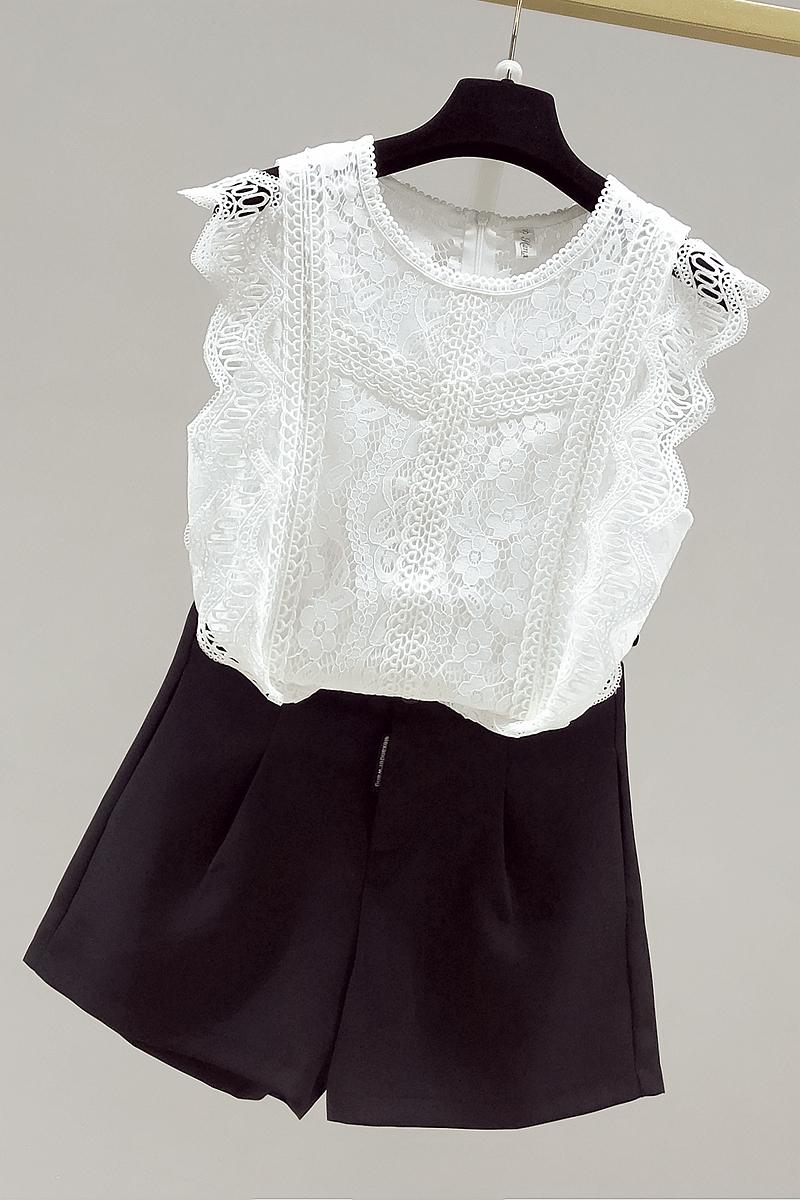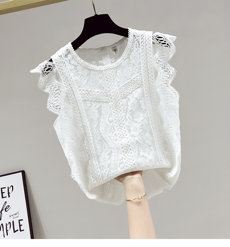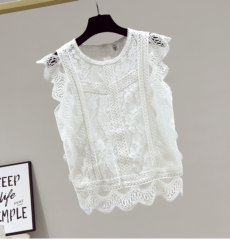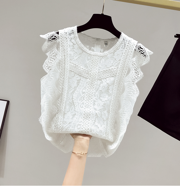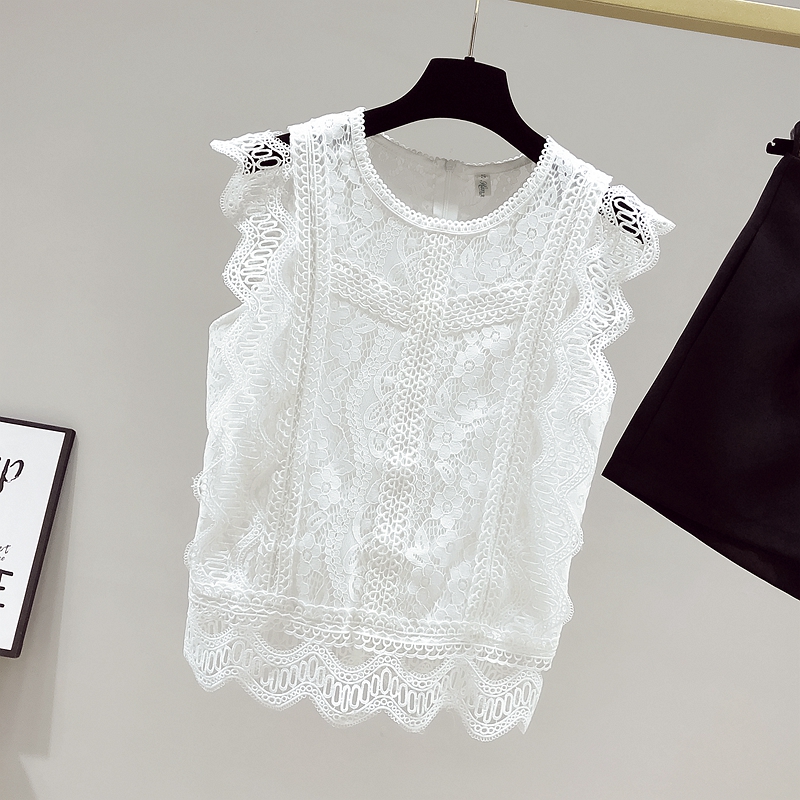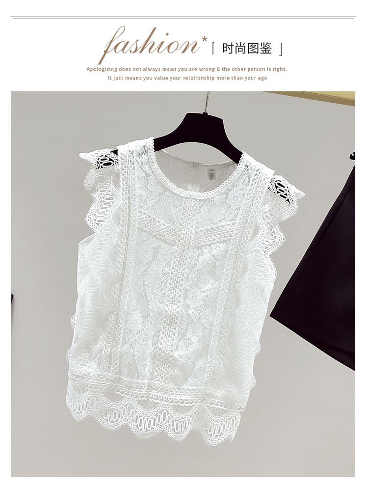 RY2486# 欧洲站黑色蕾丝衫女上衣2026夏季新款时尚波浪边无袖镂空洋气小衫