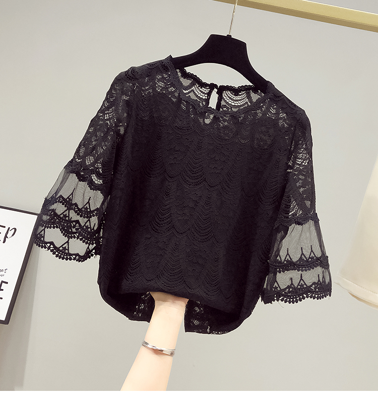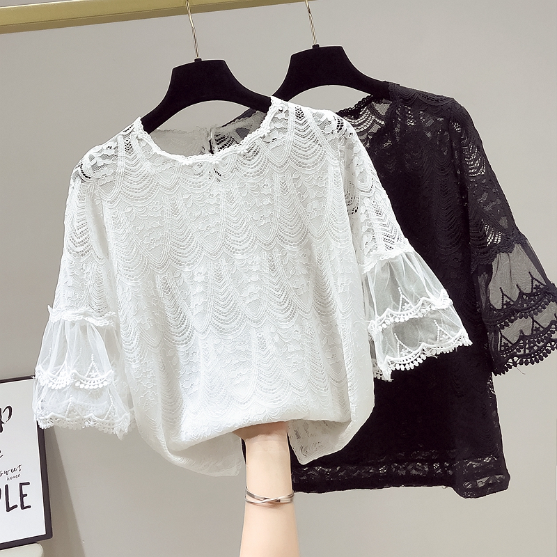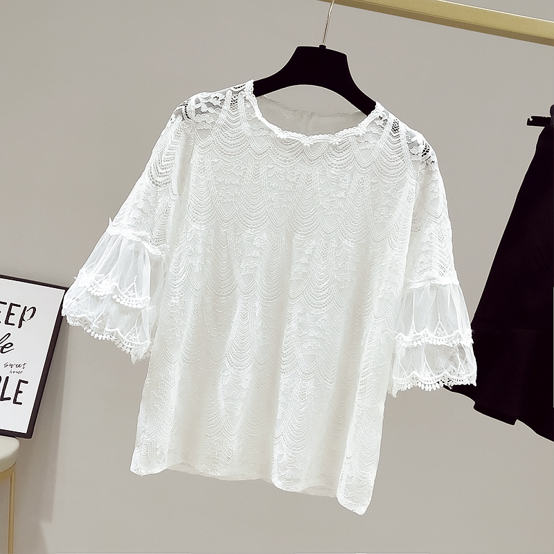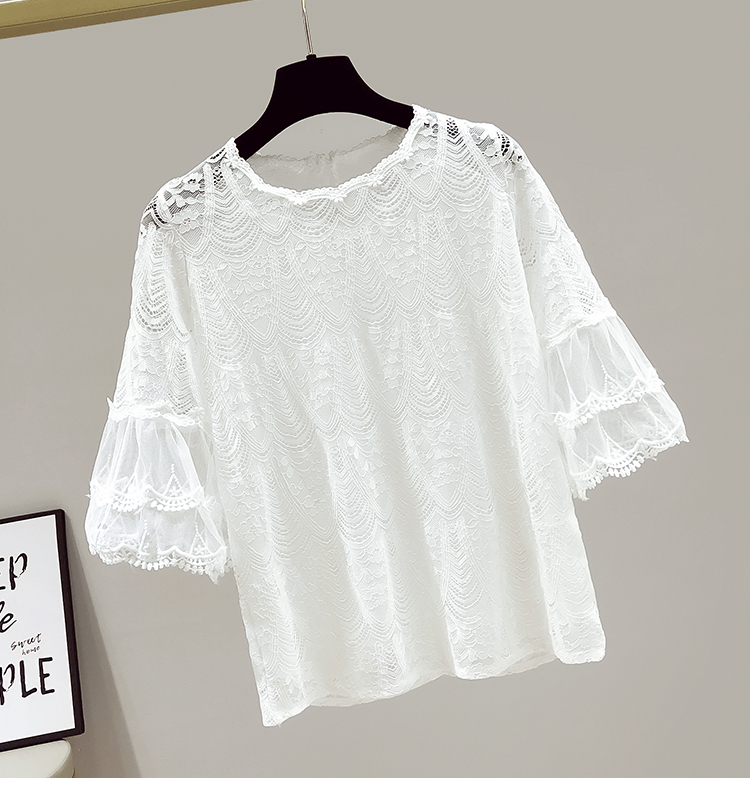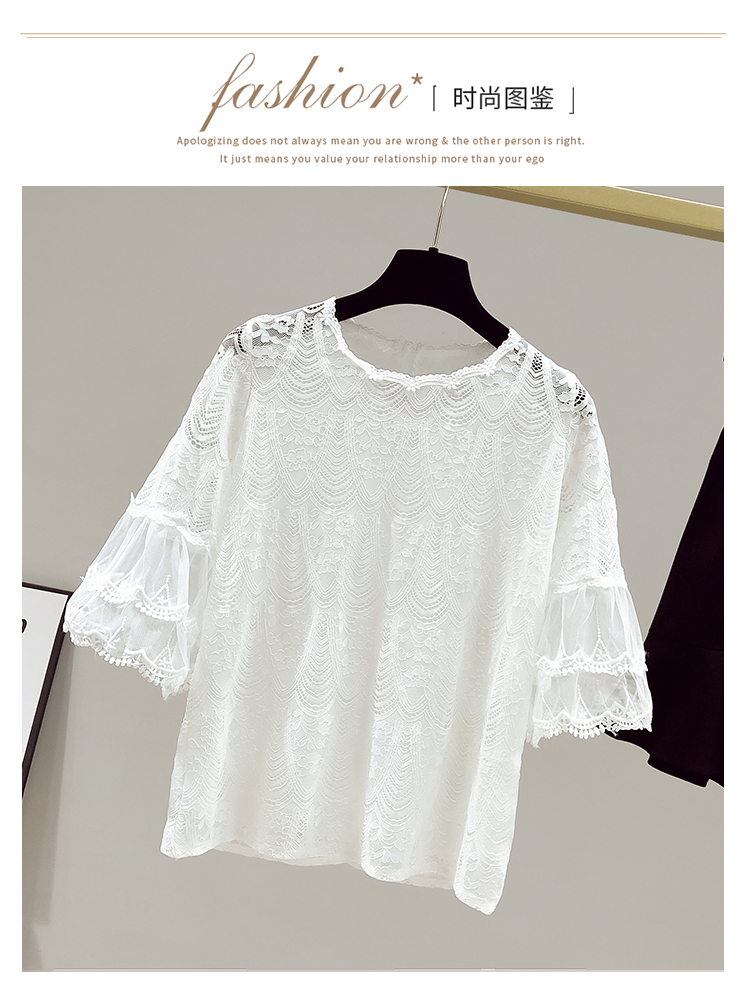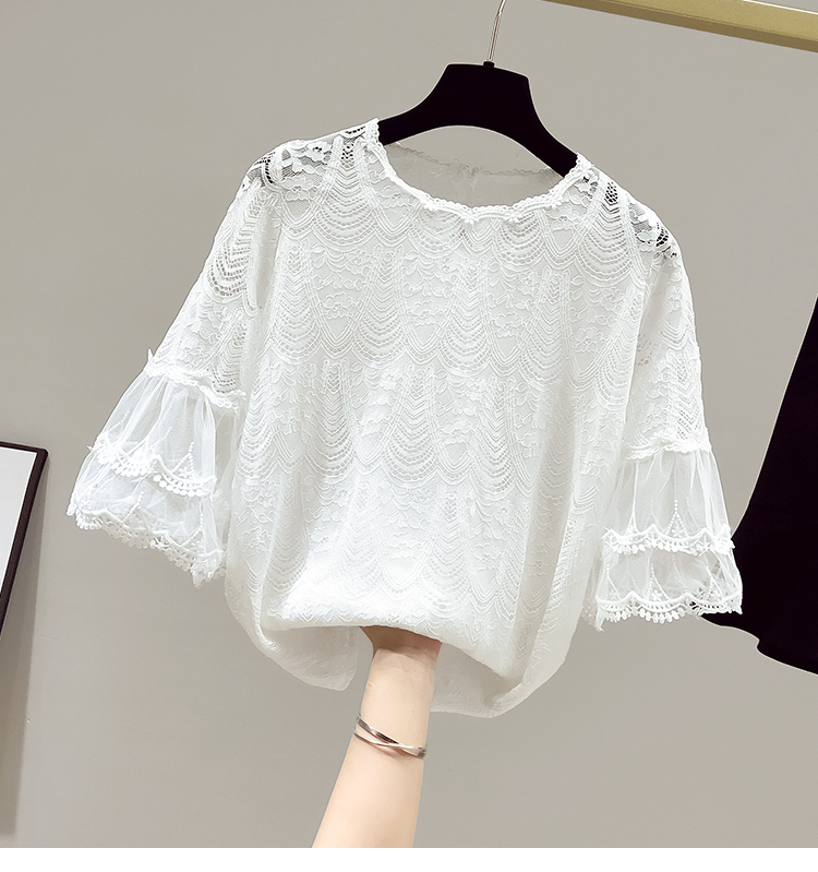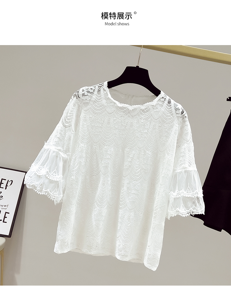 RY2487# 实拍2026夏季新款时尚洋气钩花镂空蕾丝衫女设计感小众雪纺上衣