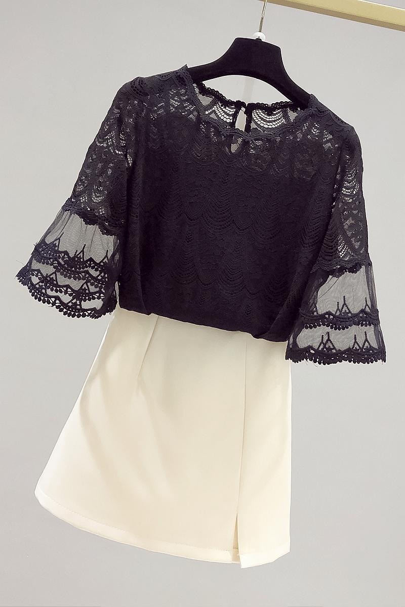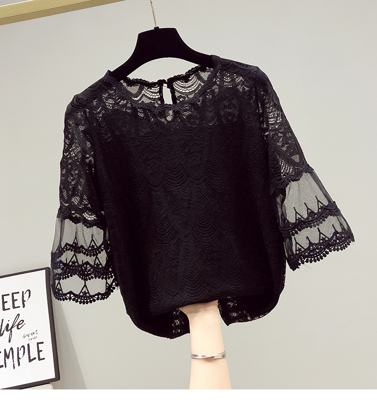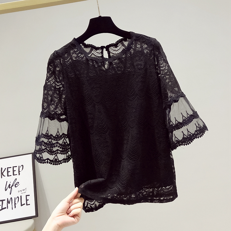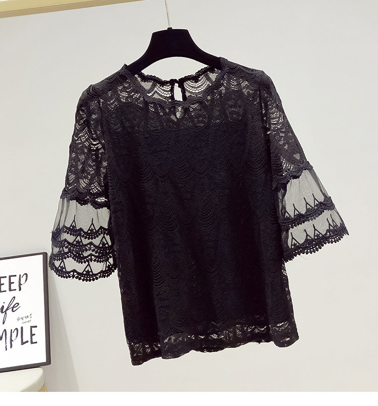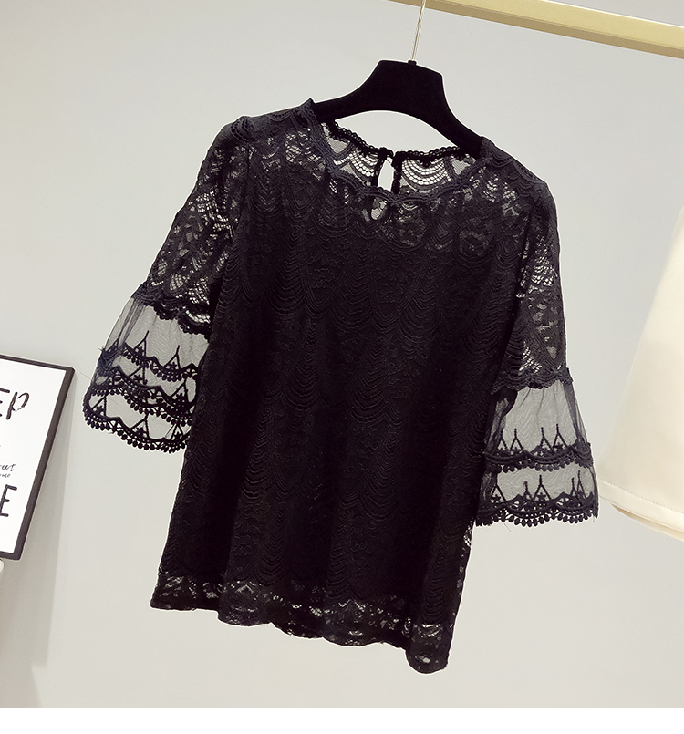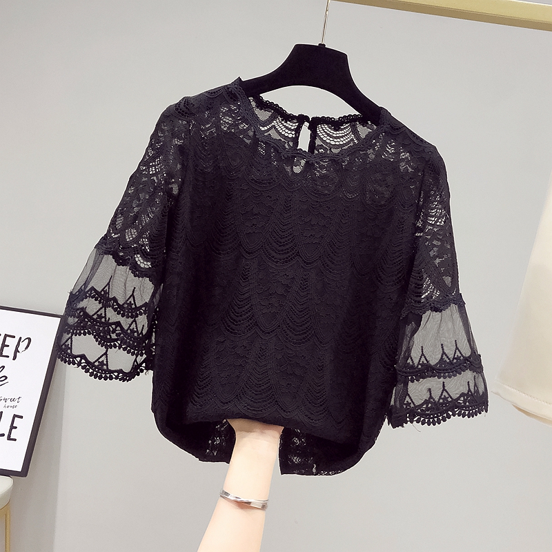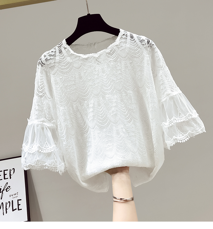 RY2487# 实拍2026夏季新款时尚洋气钩花镂空蕾丝衫女设计感小众雪纺上衣