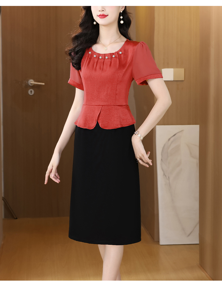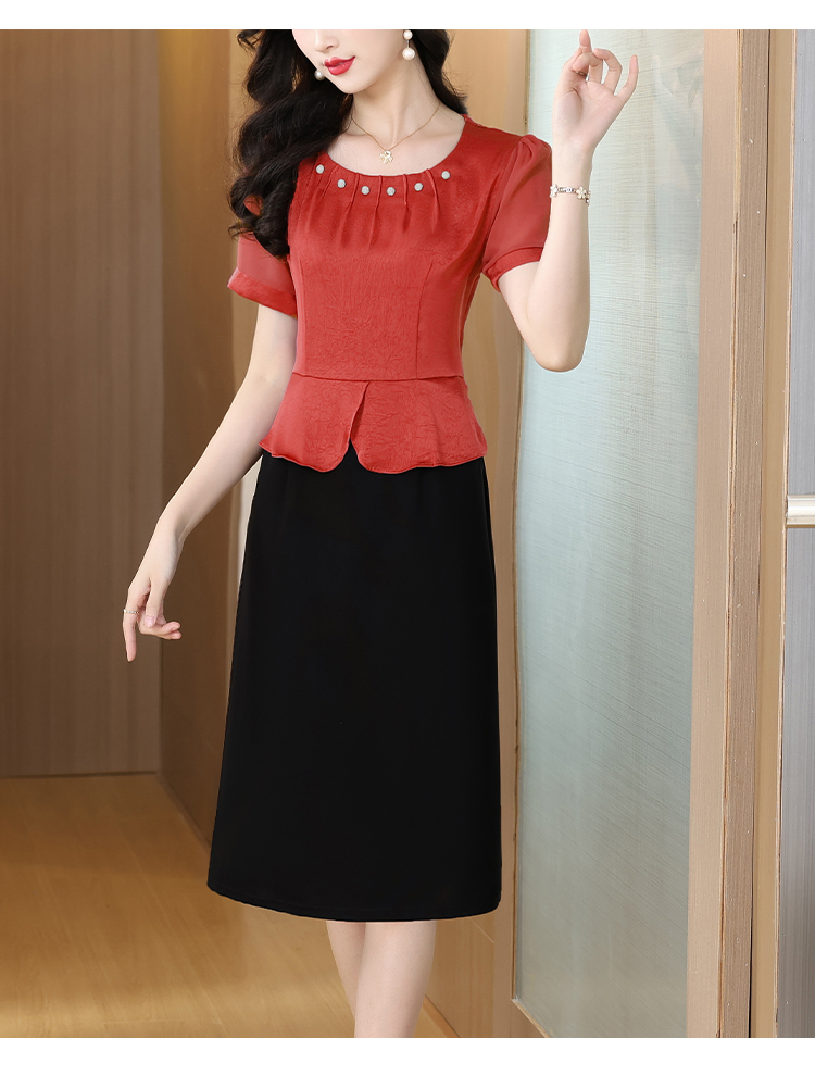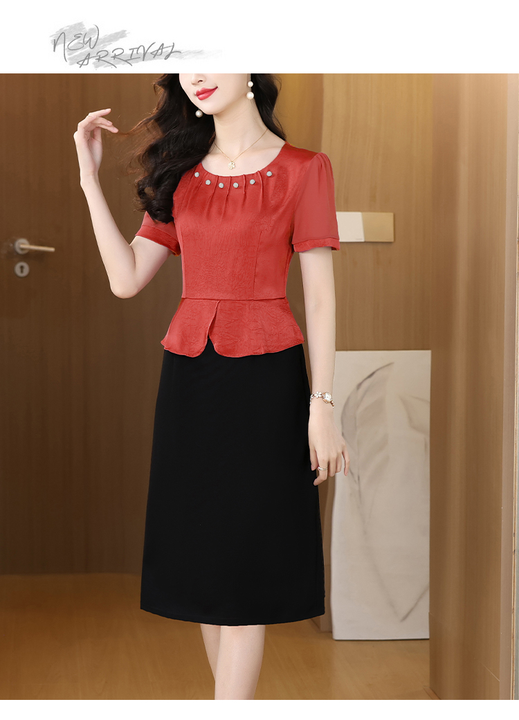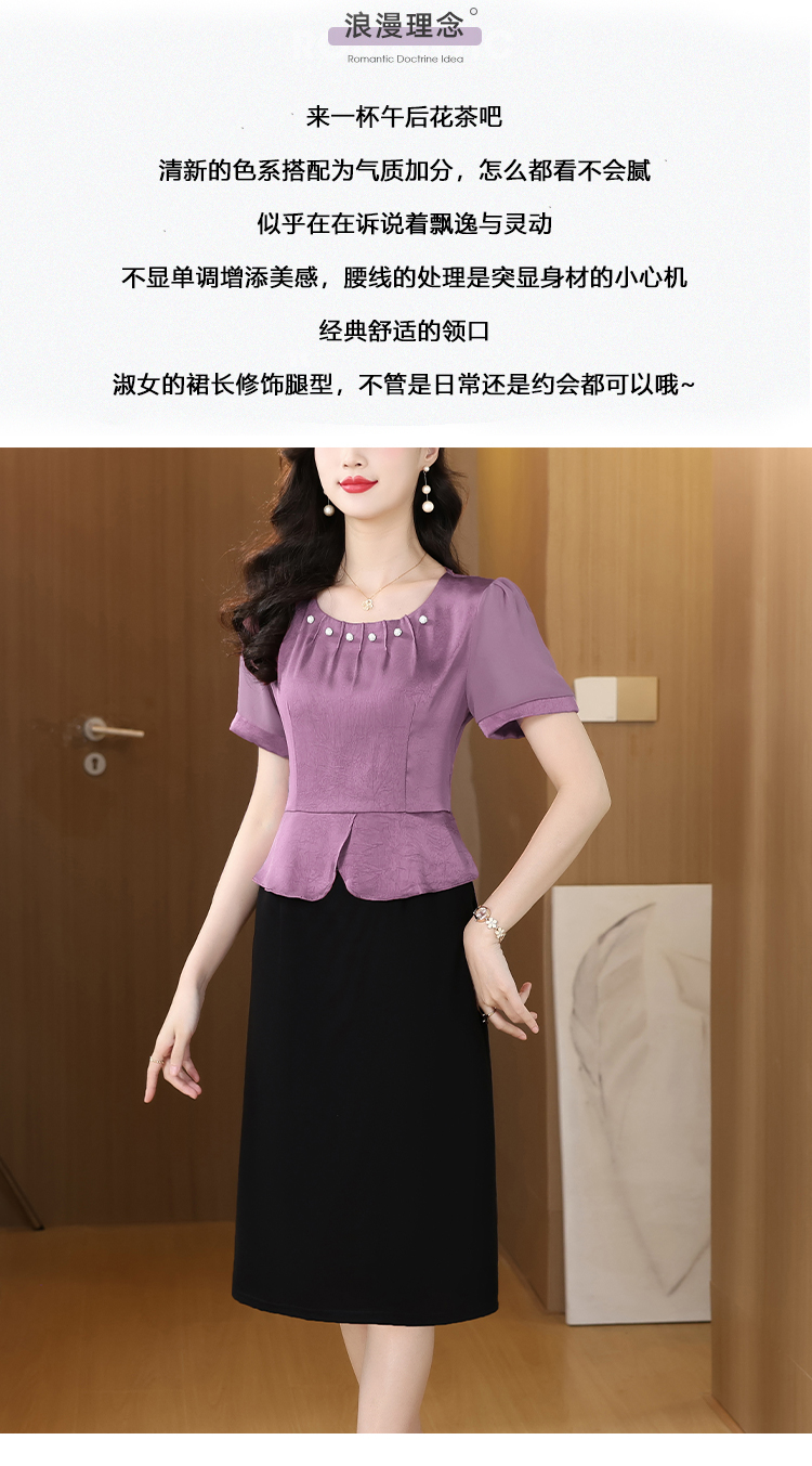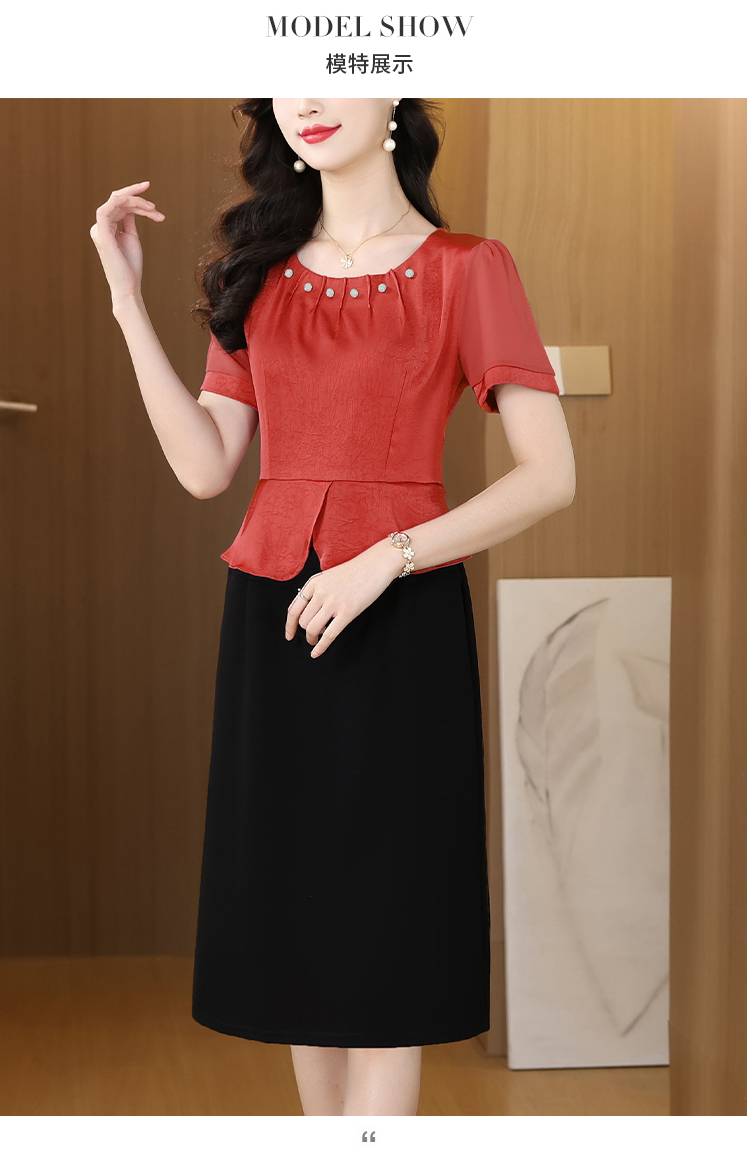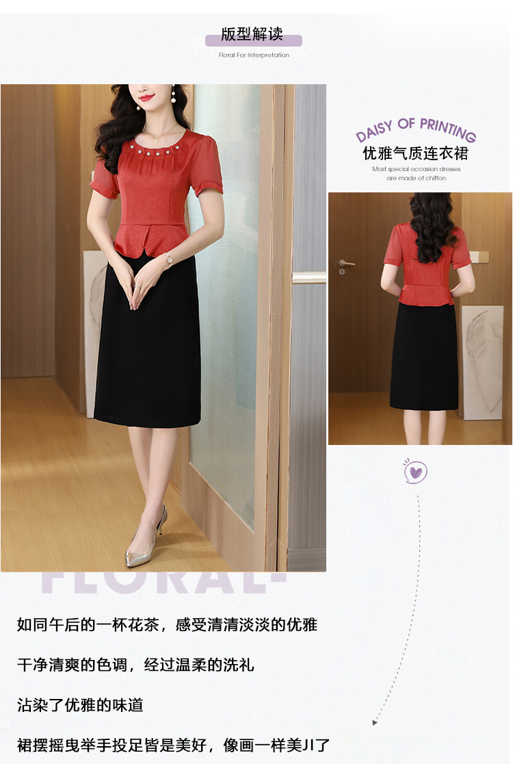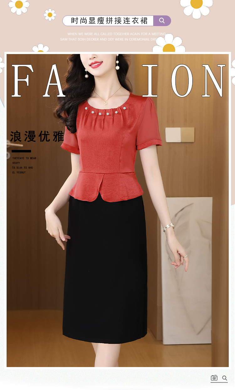RY2500# 妈妈夏款气质假两件连衣裙女2026新款遮肚子显瘦高贵时尚礼服裙子