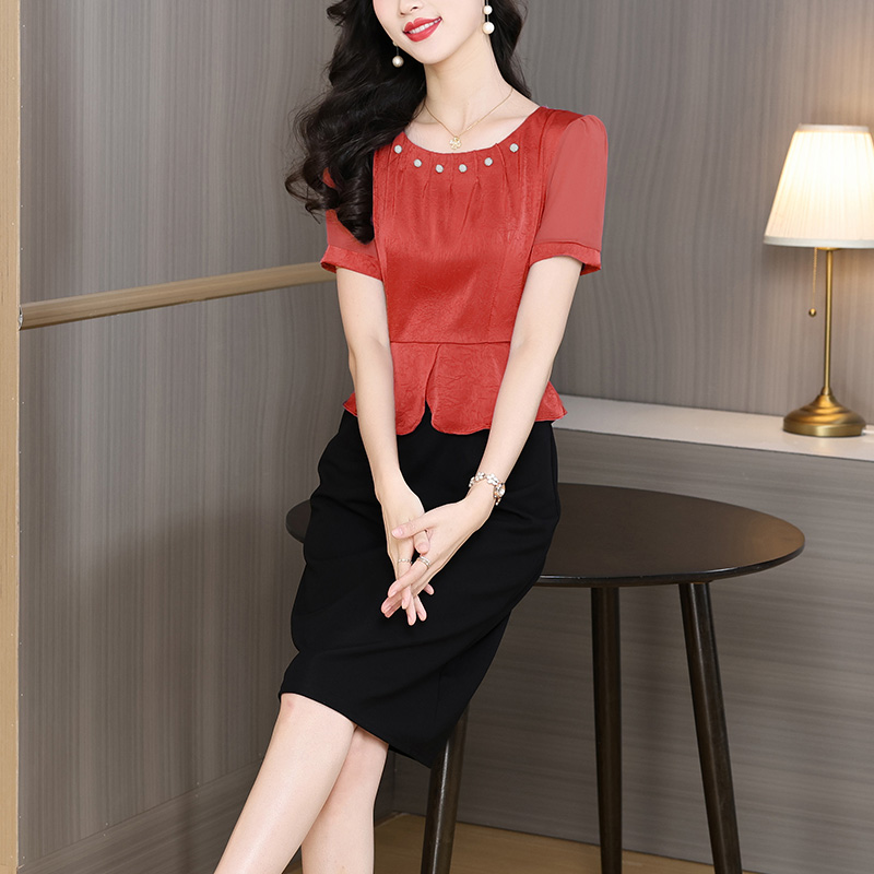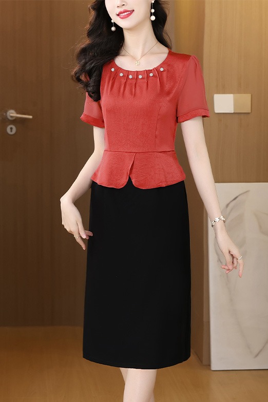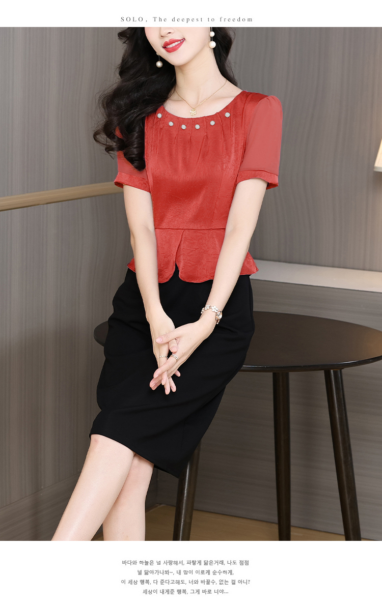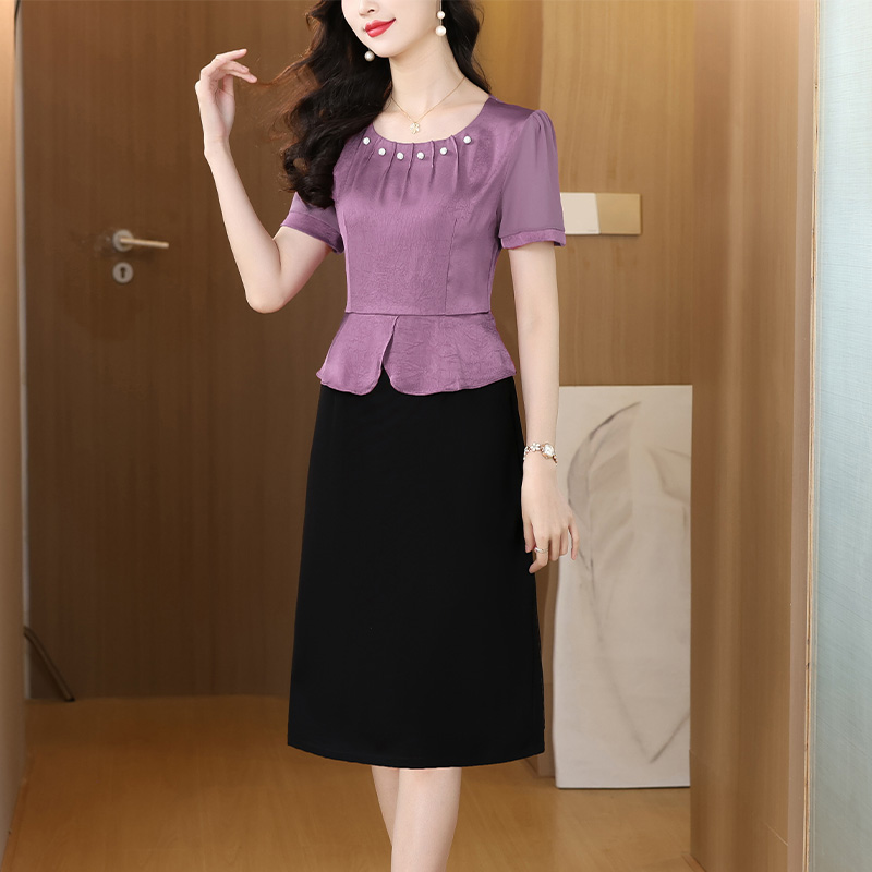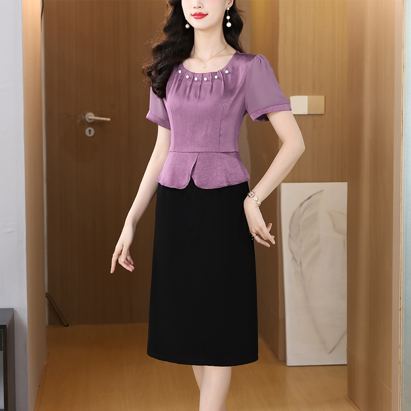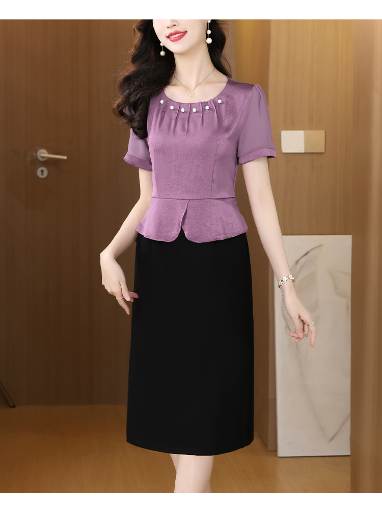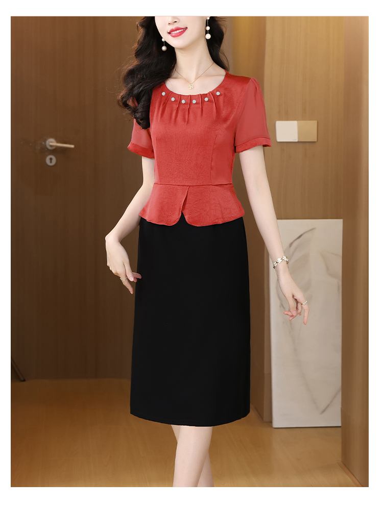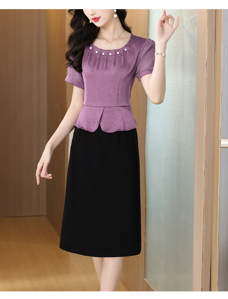 RY2500# 妈妈夏款气质假两件连衣裙女2026新款遮肚子显瘦高贵时尚礼服裙子