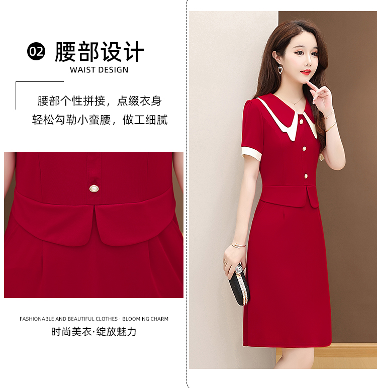 RY2501# 实拍 2026春夏季新款大码短袖连衣裙纯色收腰显瘦有口袋
