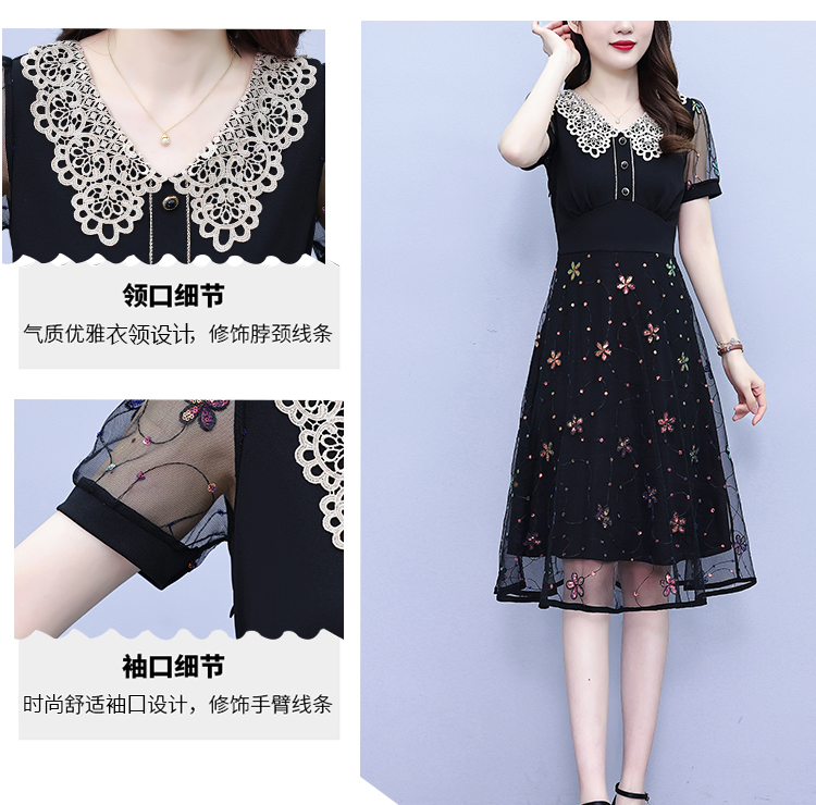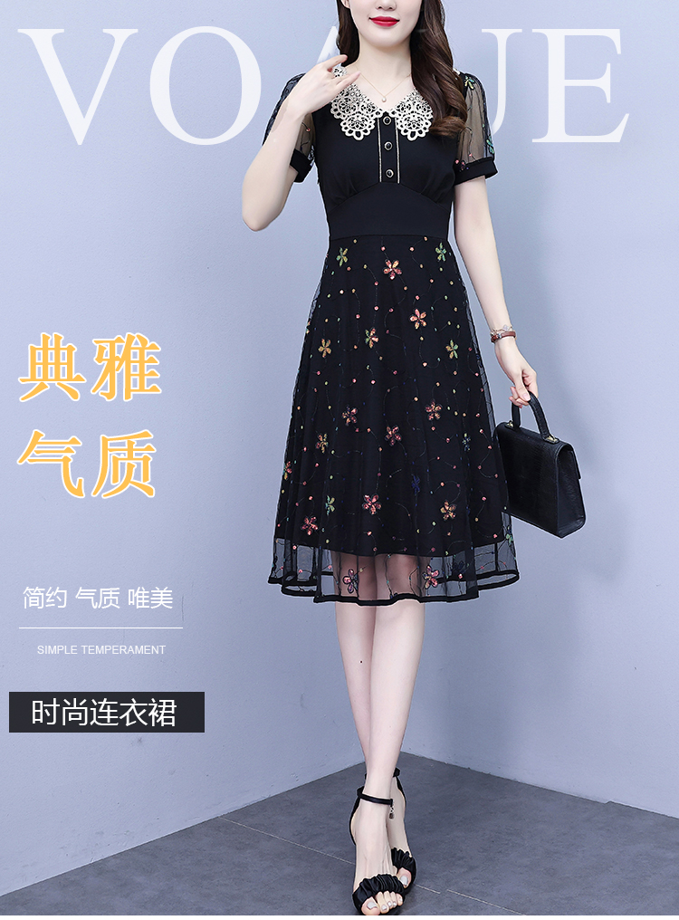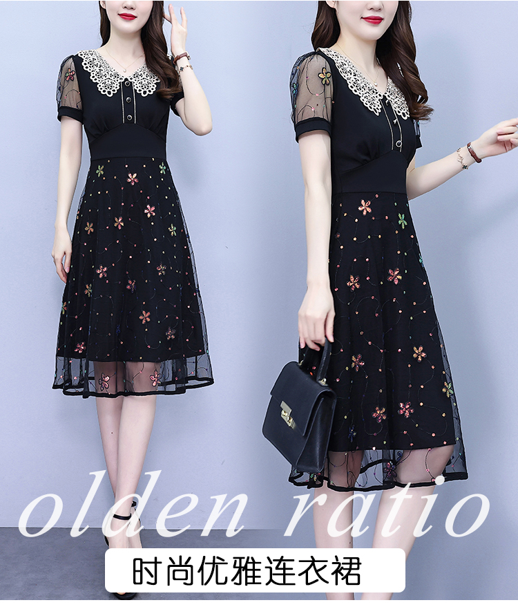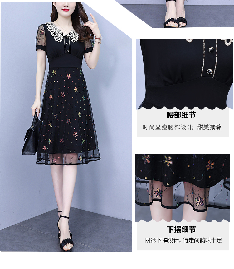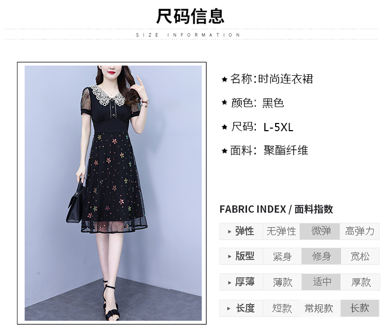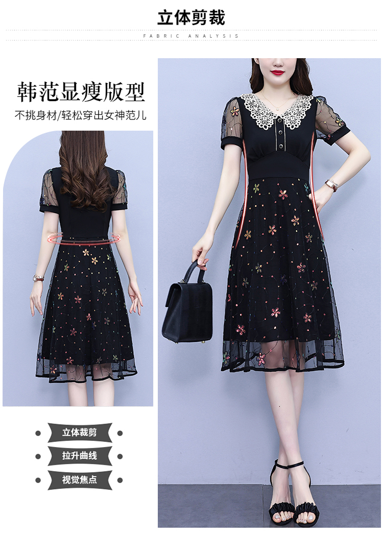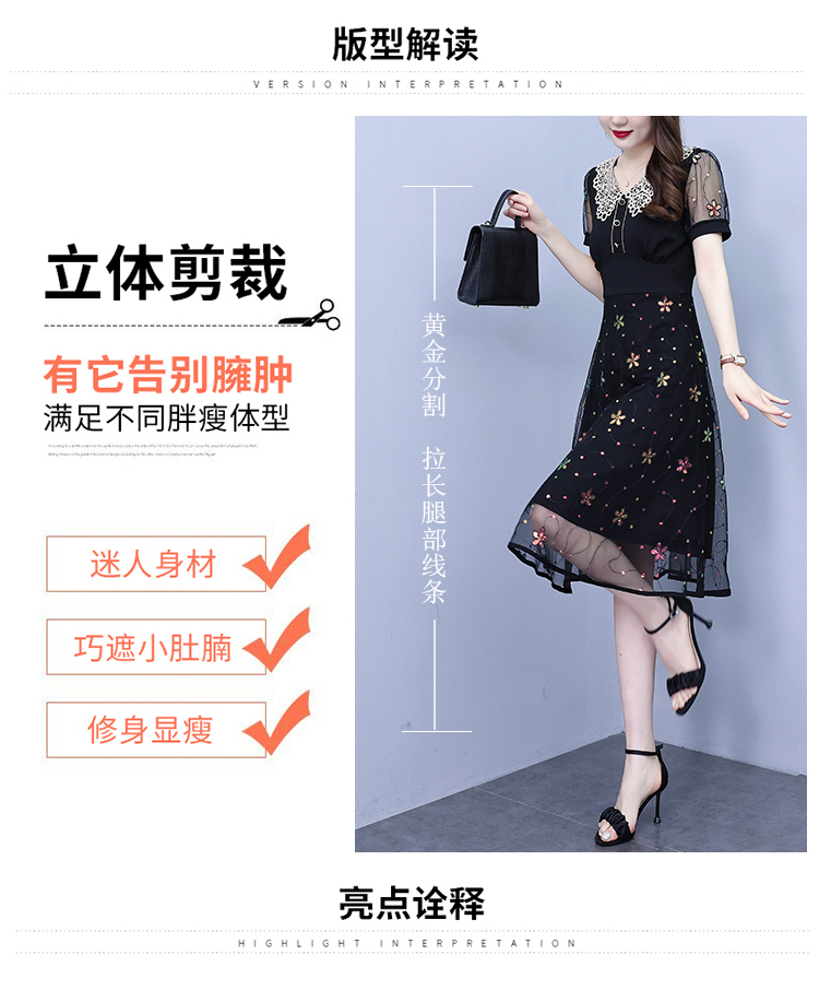 RY2516# 大码女装2026夏季新款胖mm镂空绣花网纱拼接修身时尚连衣裙阔太太
