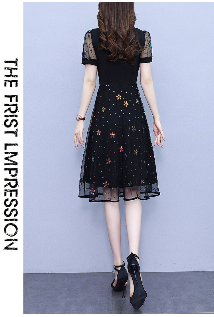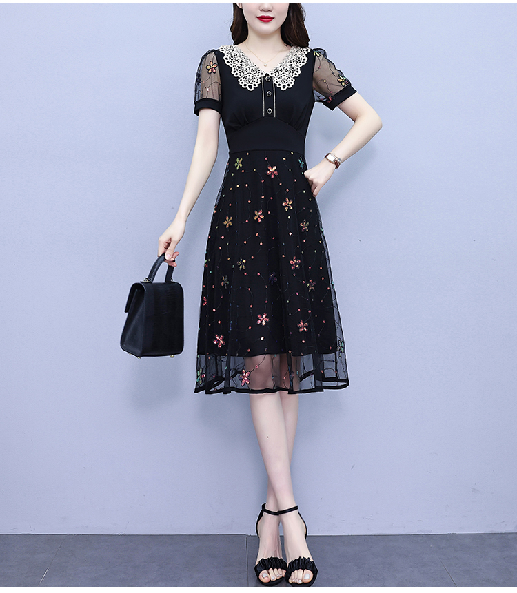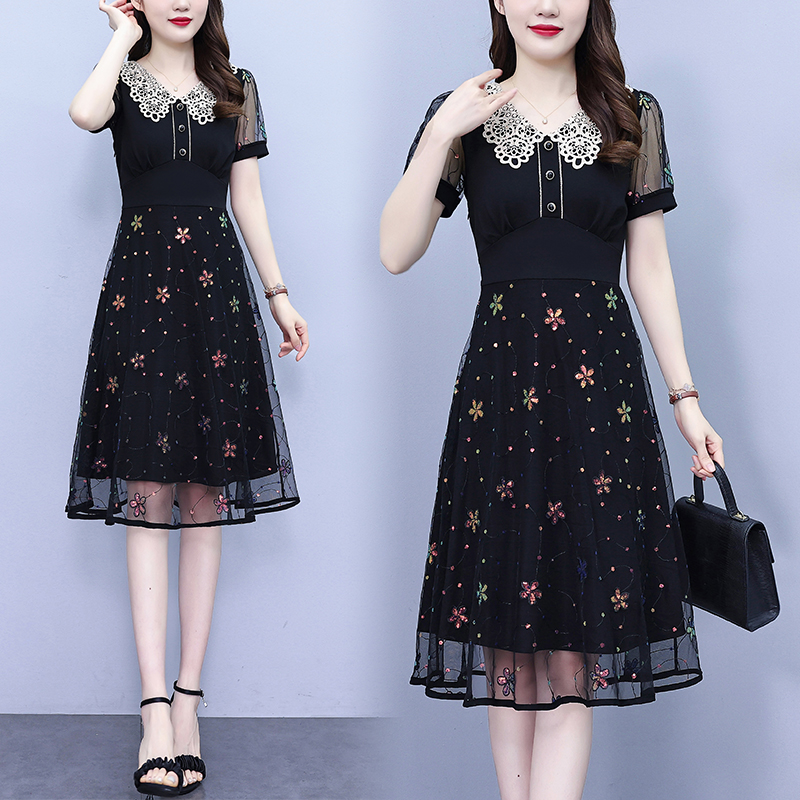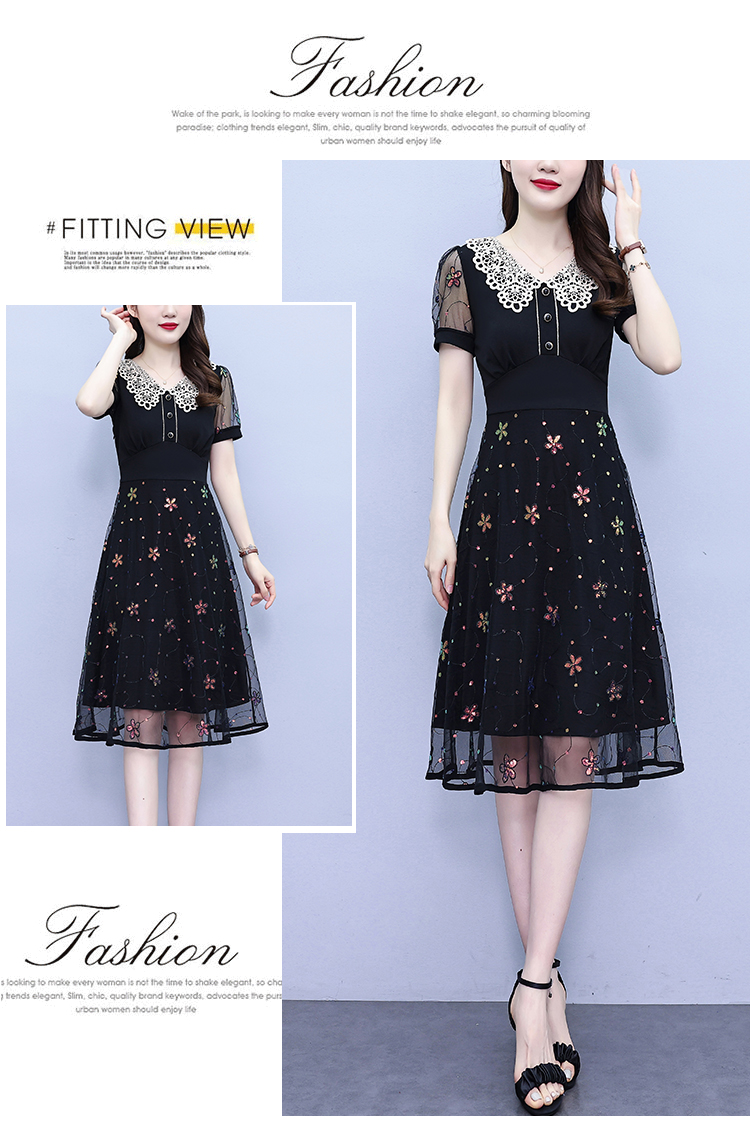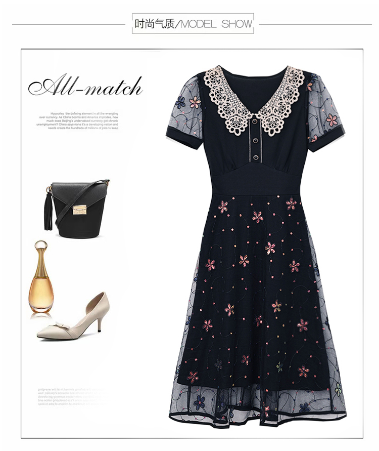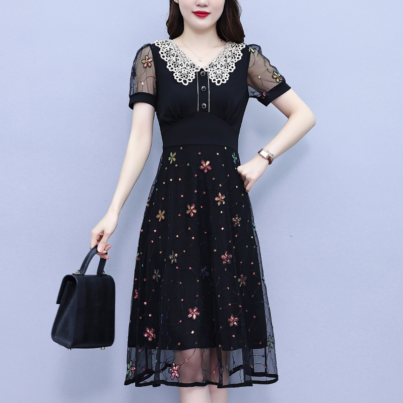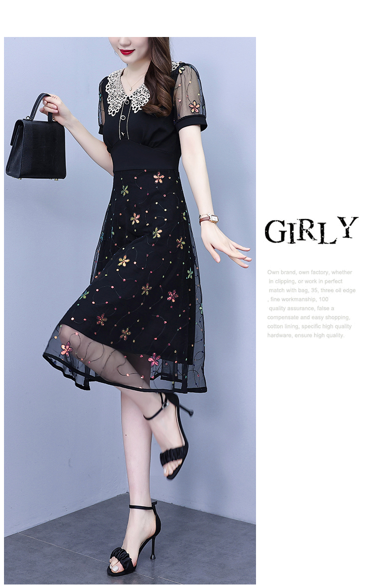 RY2516# 大码女装2026夏季新款胖mm镂空绣花网纱拼接修身时尚连衣裙阔太太