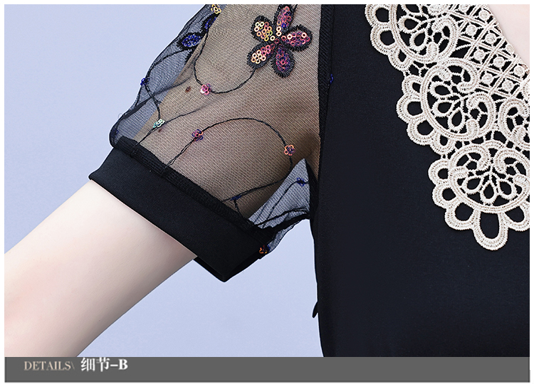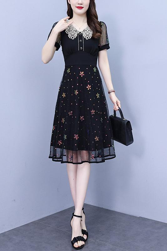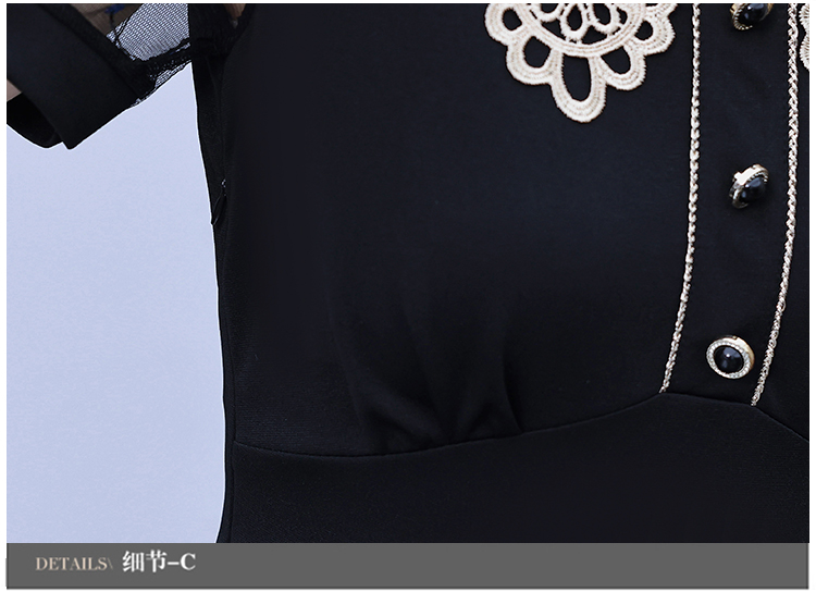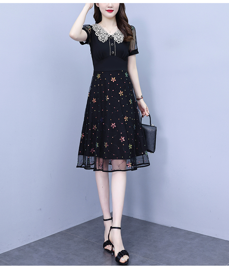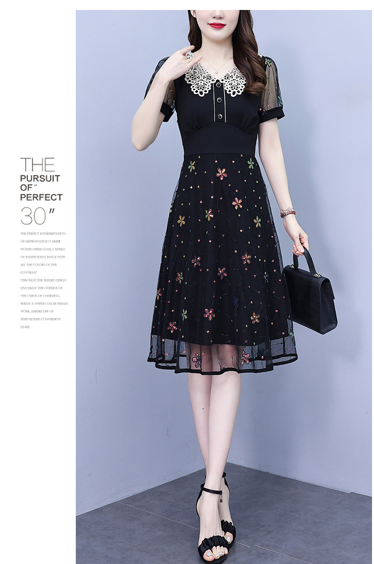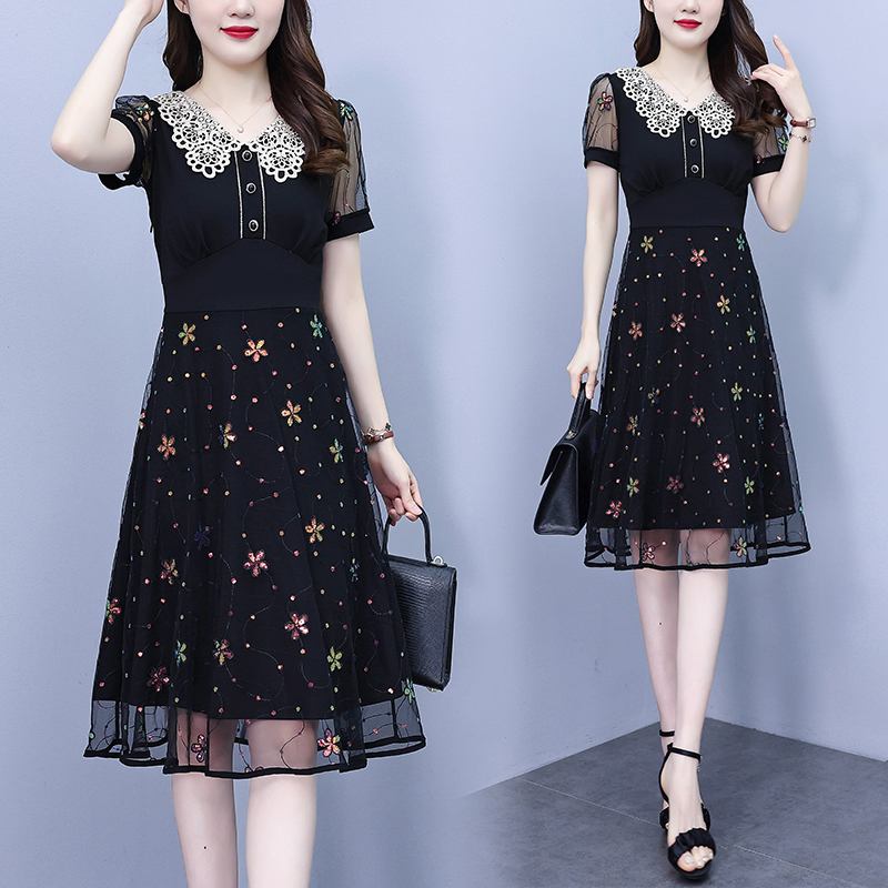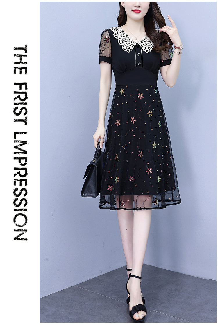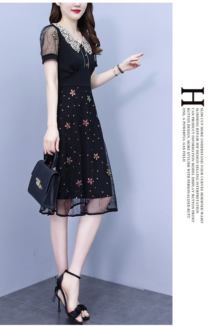 RY2516# 大码女装2026夏季新款胖mm镂空绣花网纱拼接修身时尚连衣裙阔太太