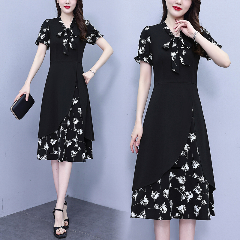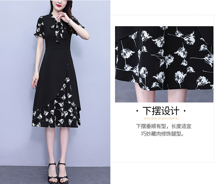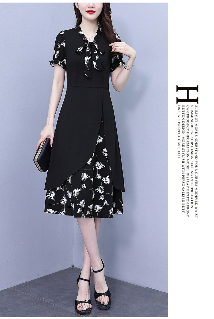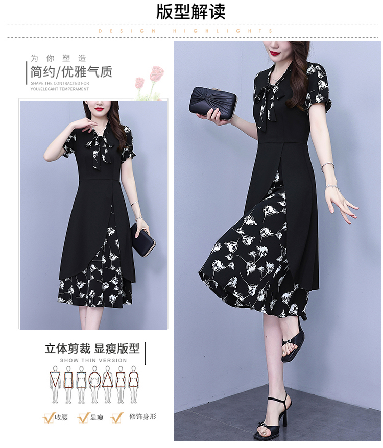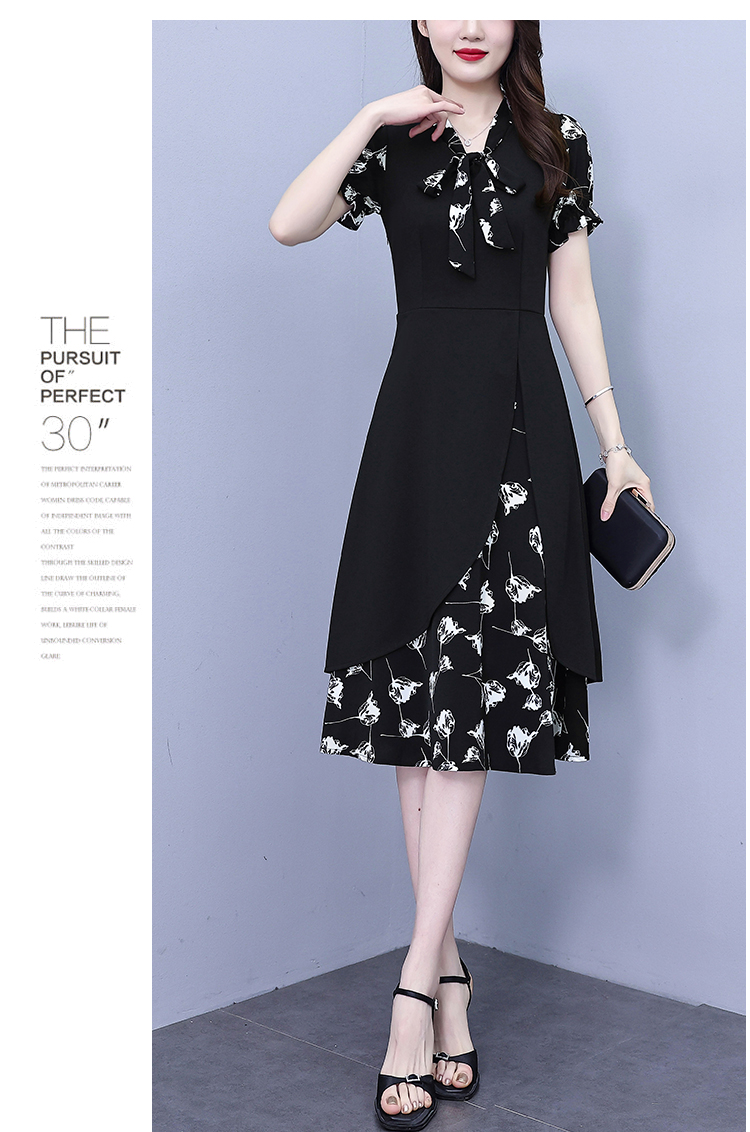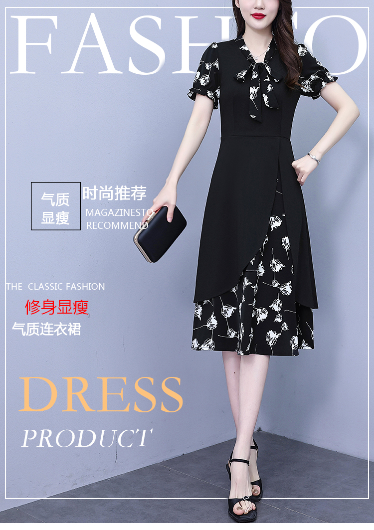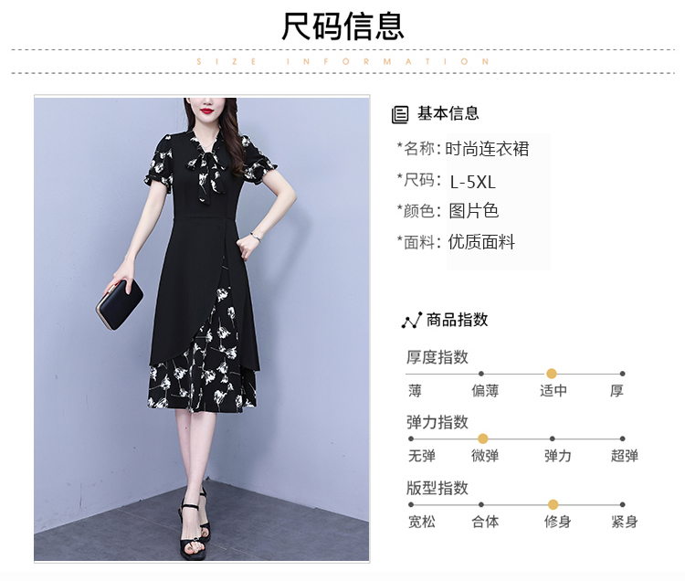 RY2519# 大码女装2026夏季胖mm不规则拼接洋气显瘦蝴蝶结碎花连衣裙阔太太