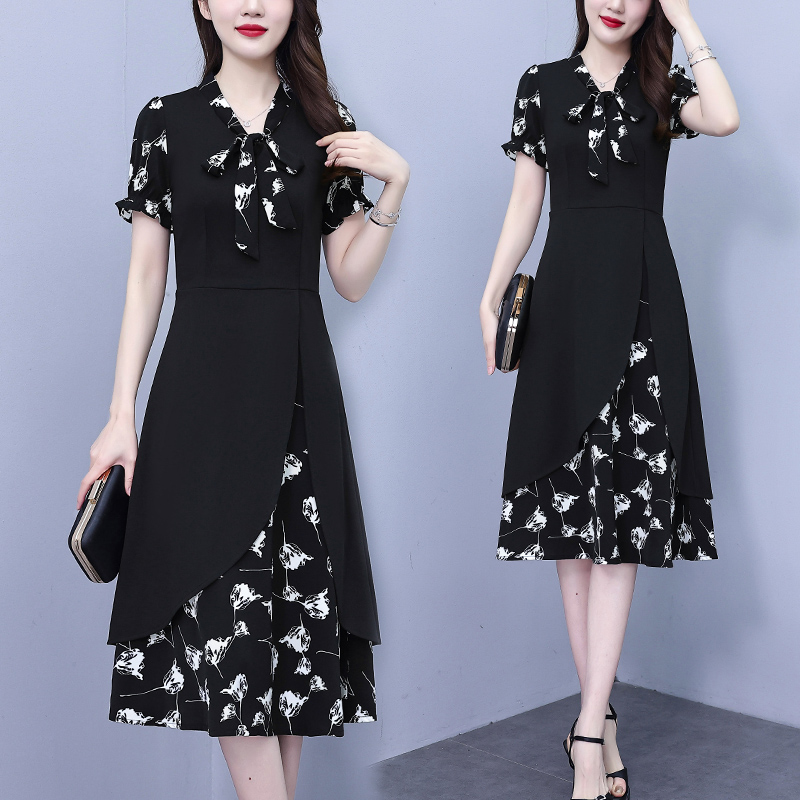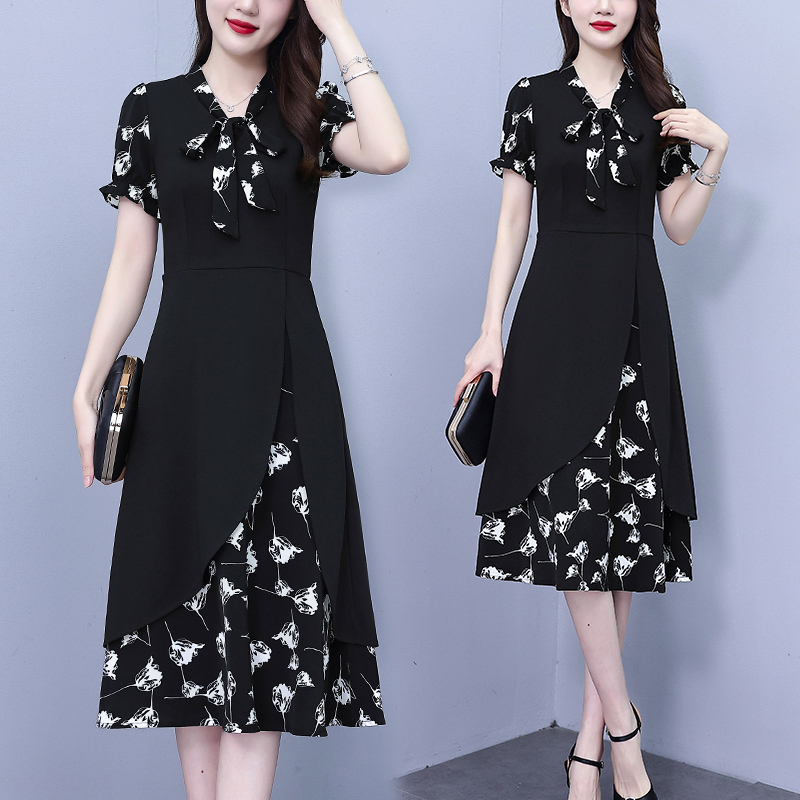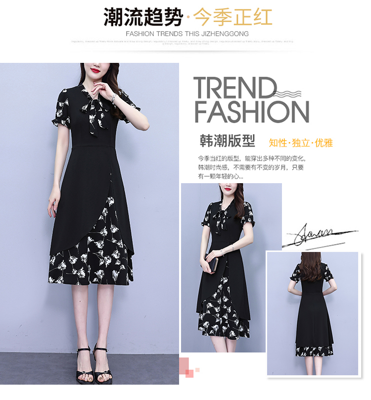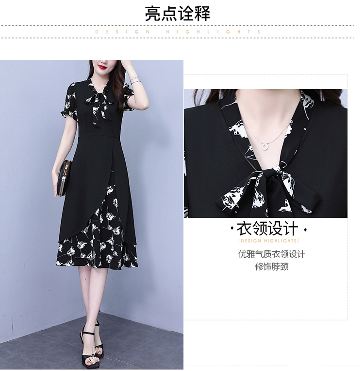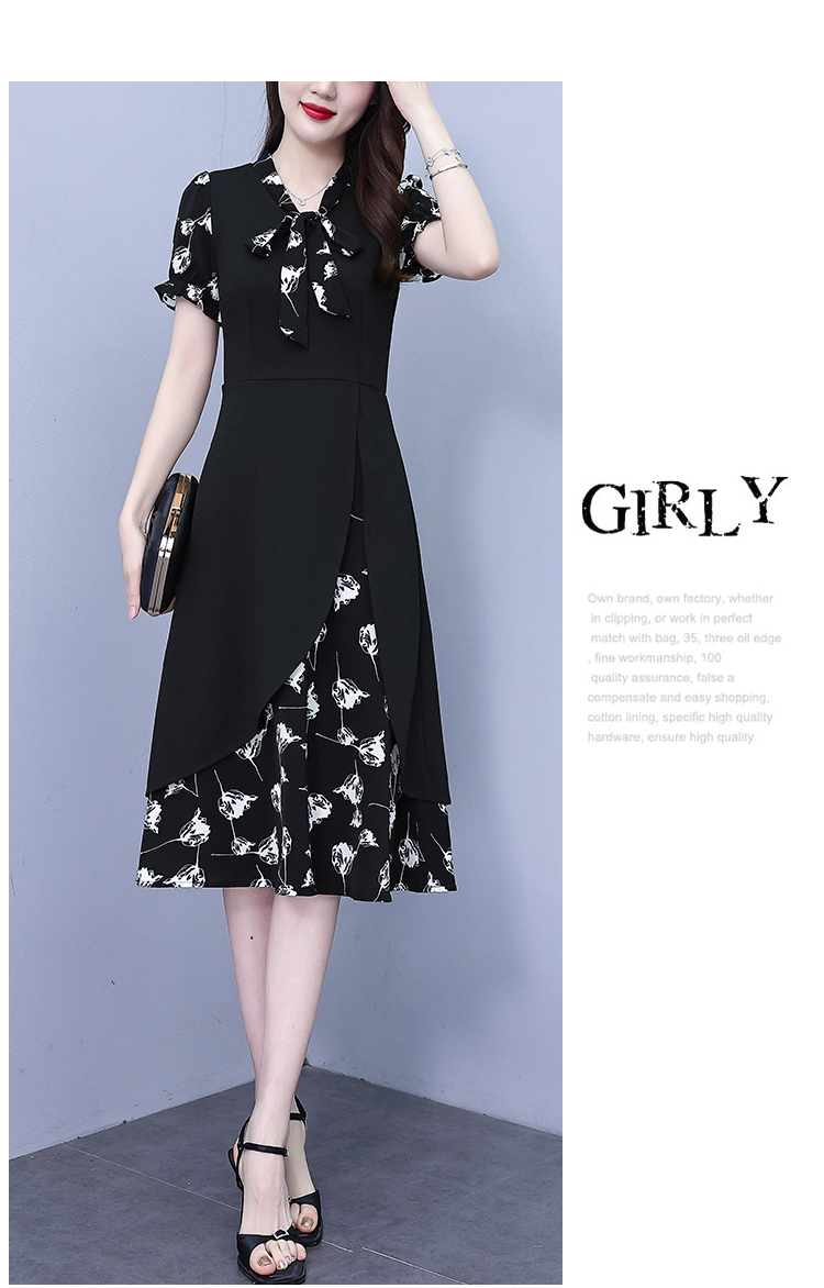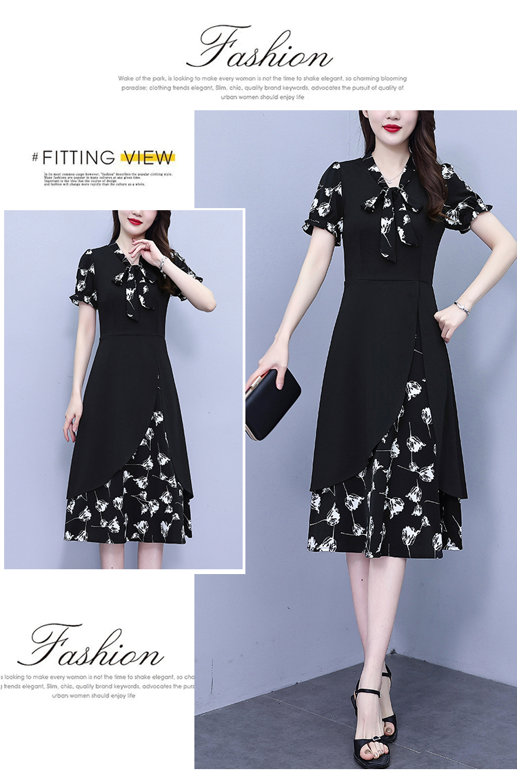 RY2519# 大码女装2026夏季胖mm不规则拼接洋气显瘦蝴蝶结碎花连衣裙阔太太