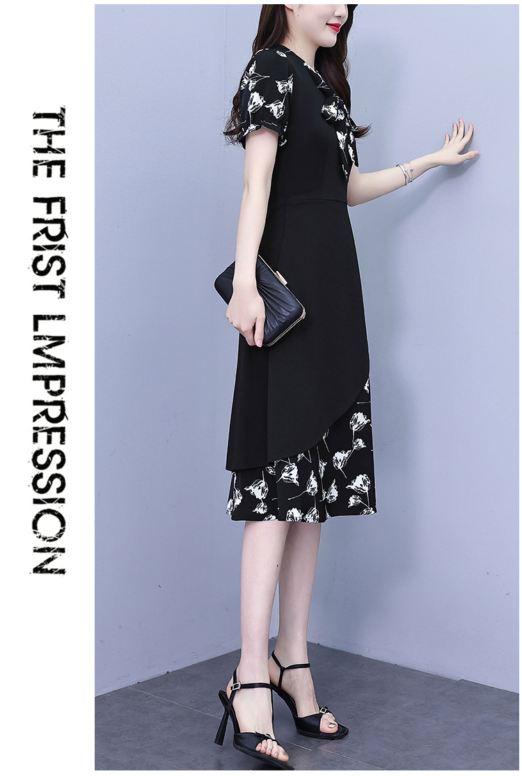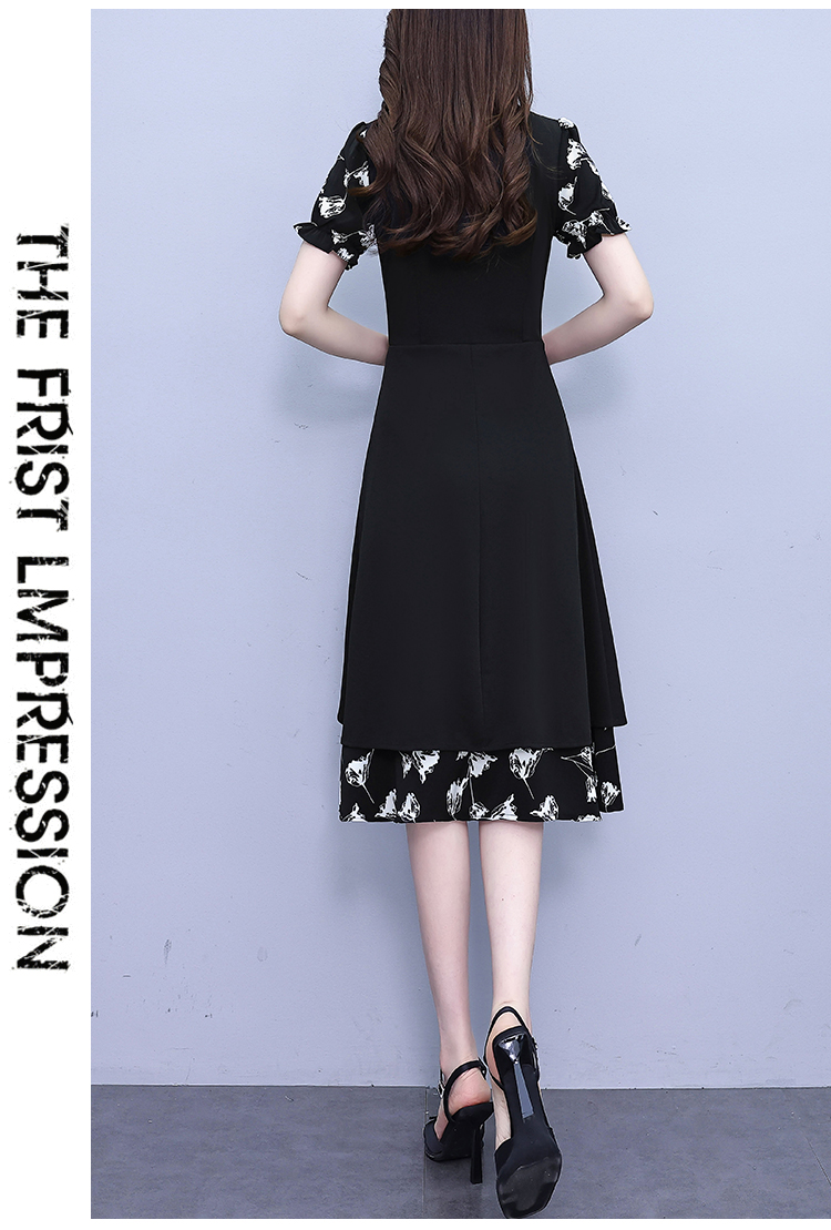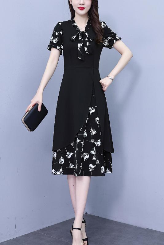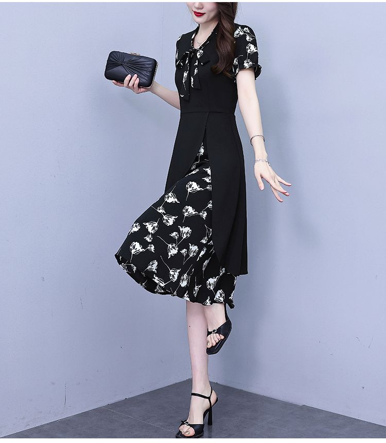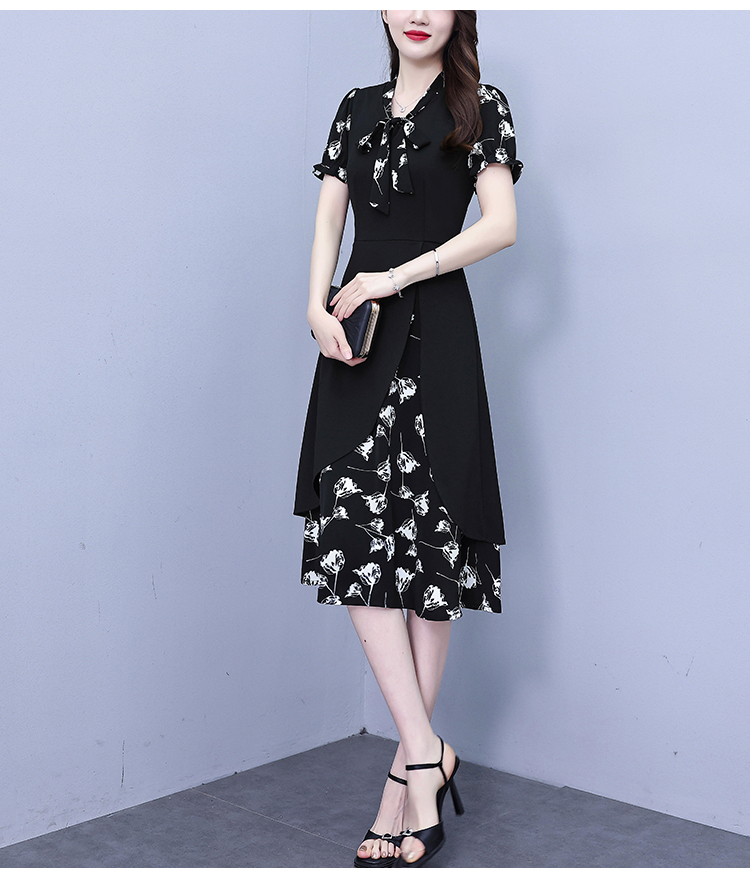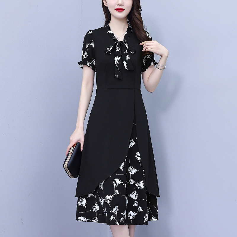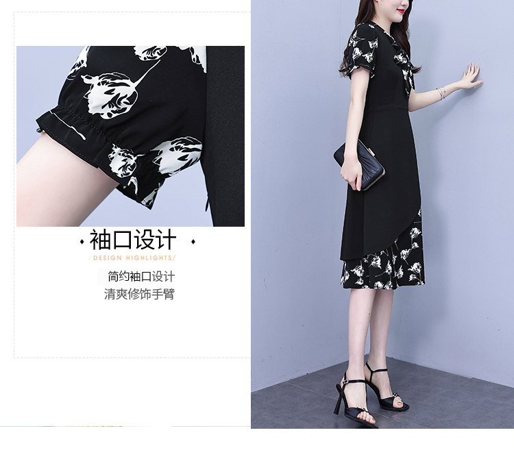 RY2519# 大码女装2026夏季胖mm不规则拼接洋气显瘦蝴蝶结碎花连衣裙阔太太