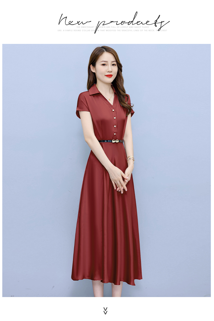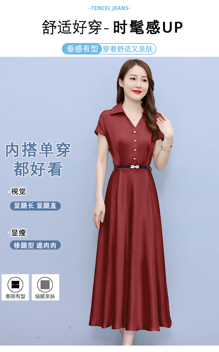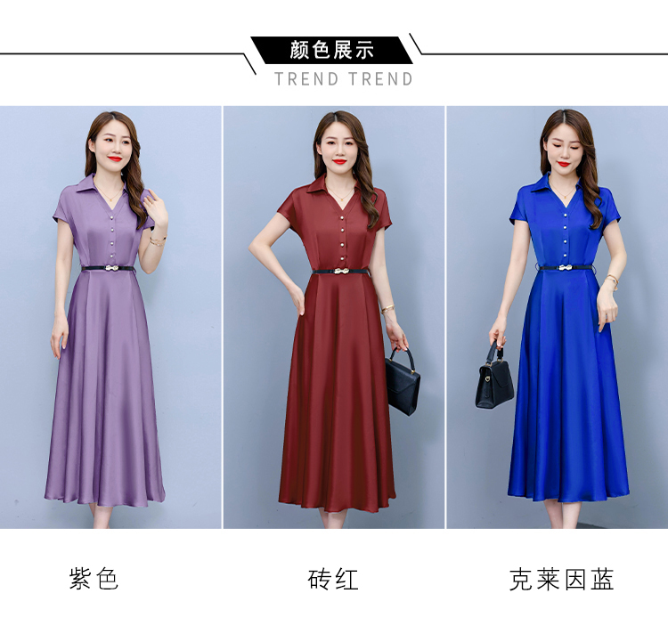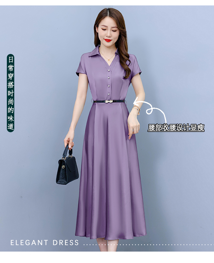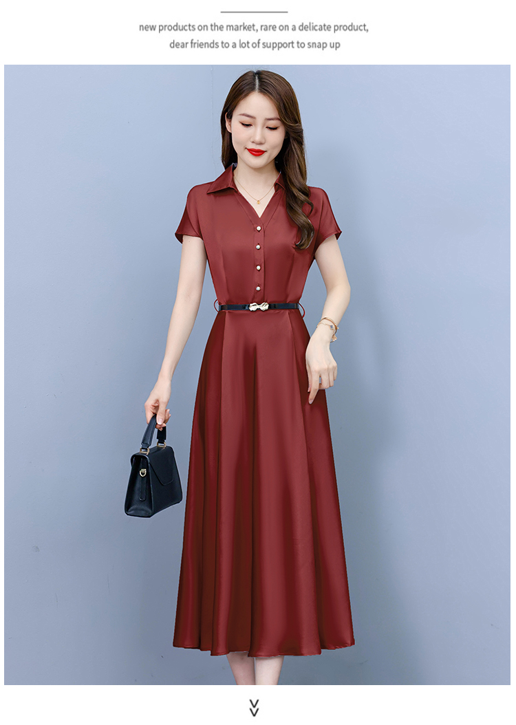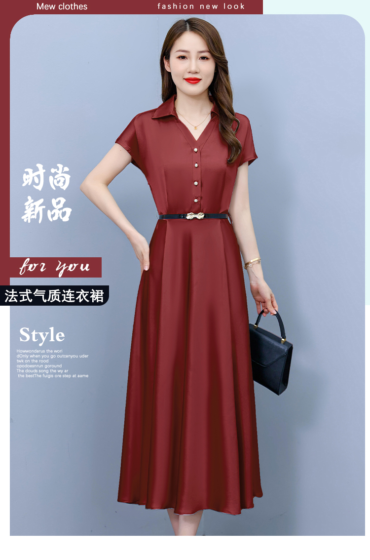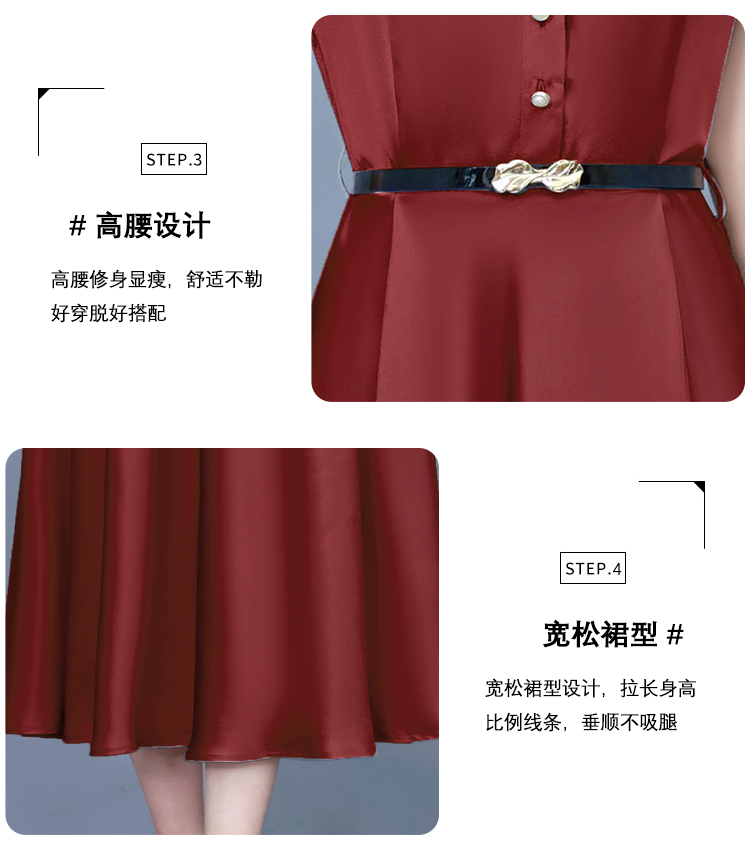 RY2524# 实拍醋酸缎面短袖连衣裙气质显瘦2026夏季洋气遮肚纯色女装