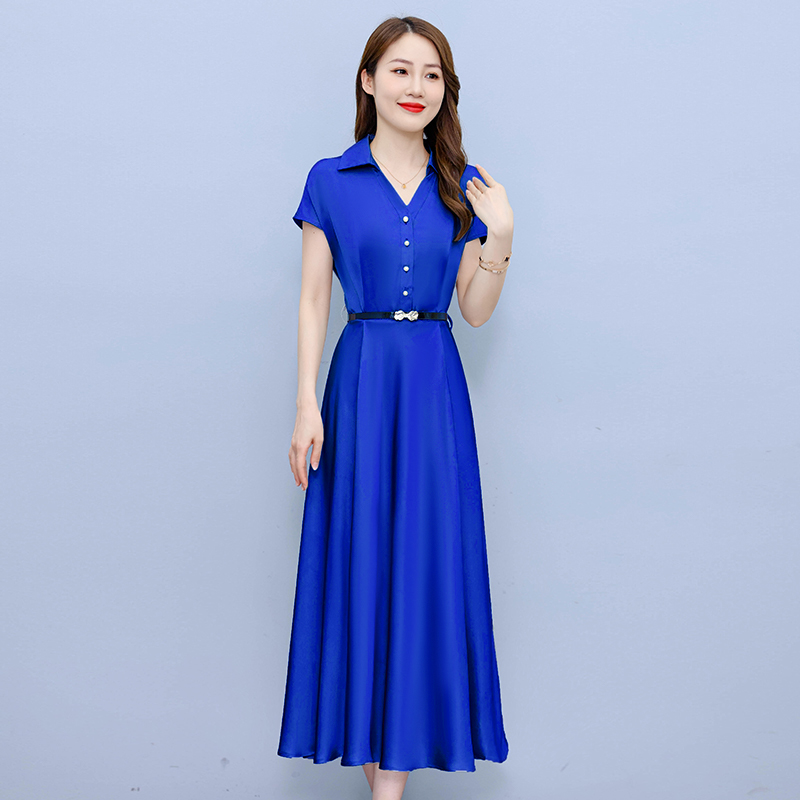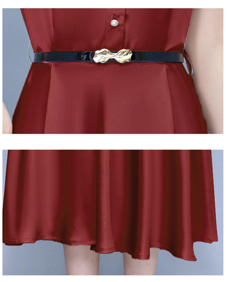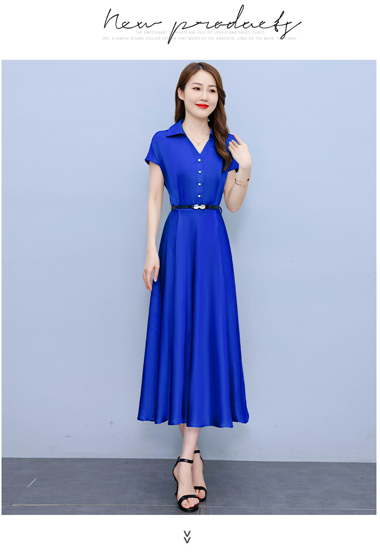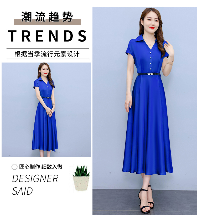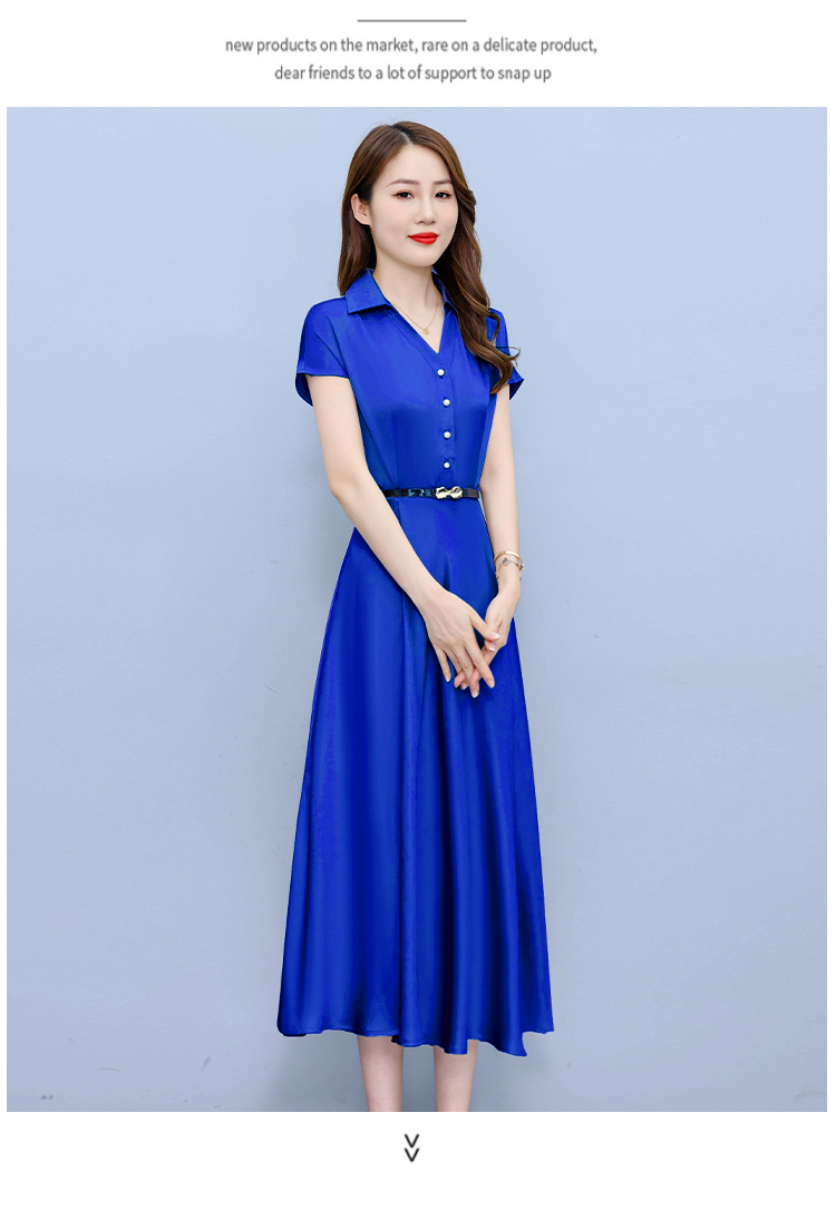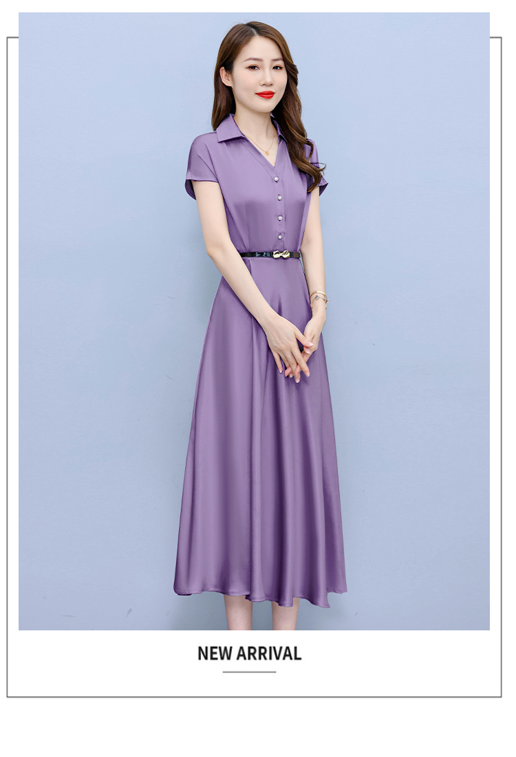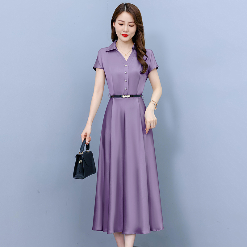 RY2524# 实拍醋酸缎面短袖连衣裙气质显瘦2026夏季洋气遮肚纯色女装