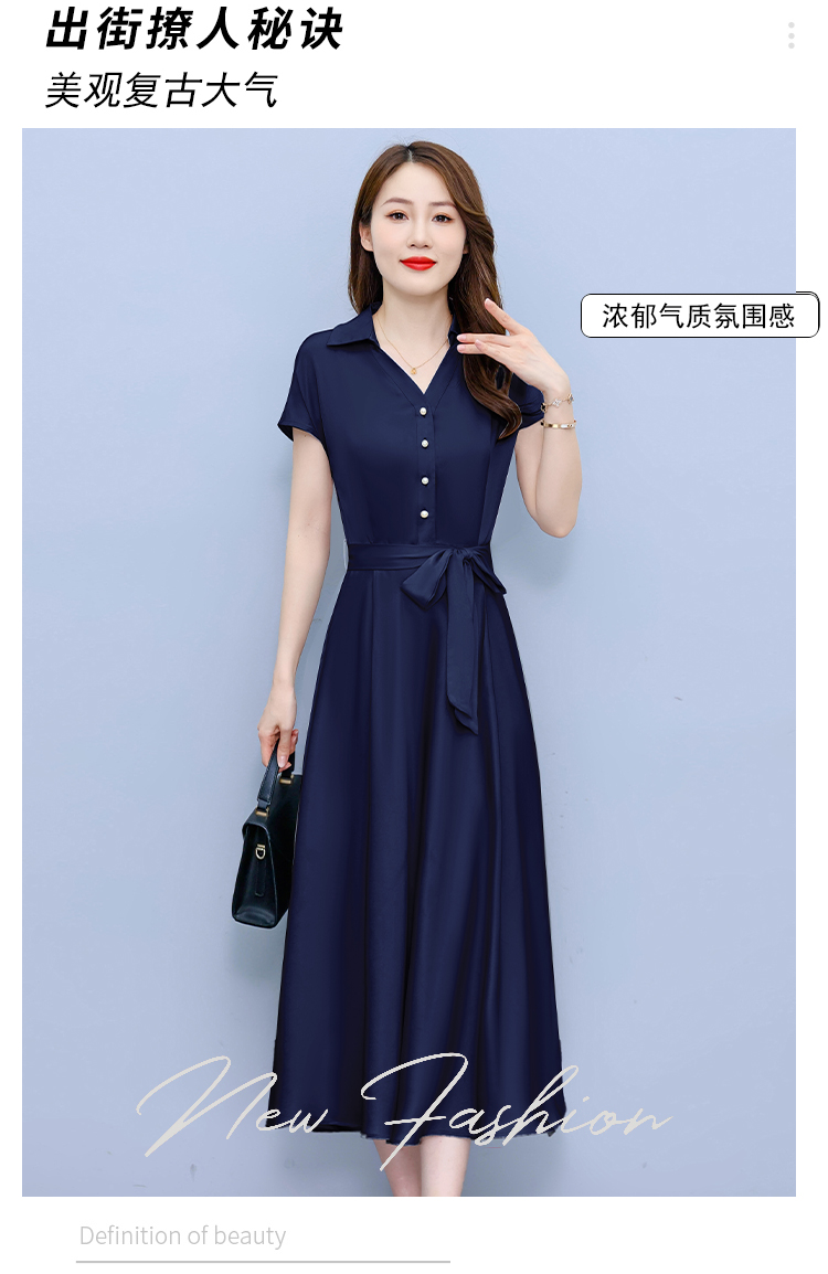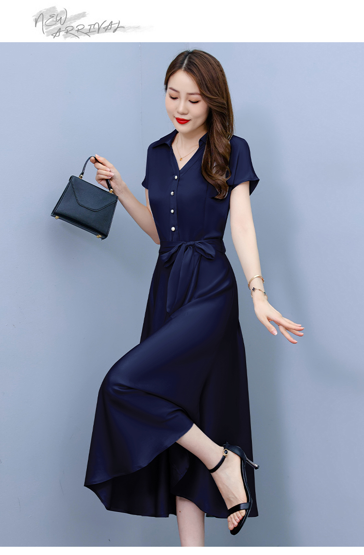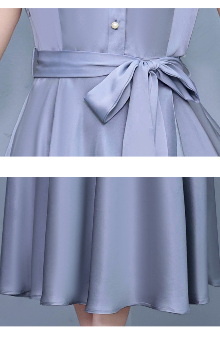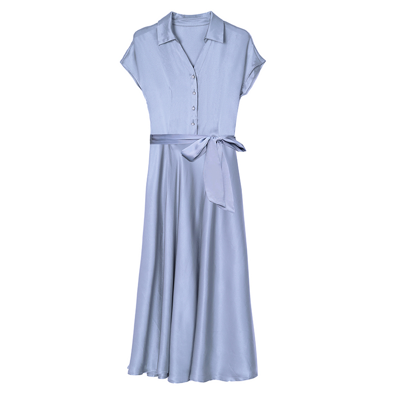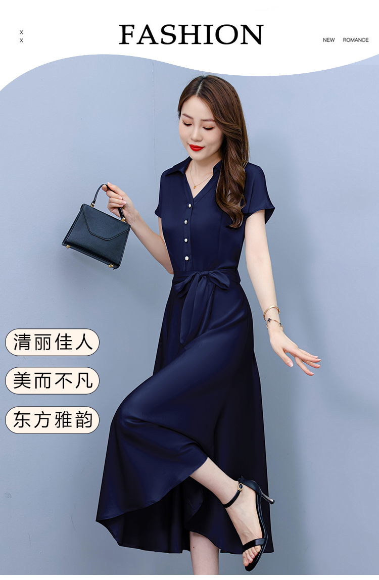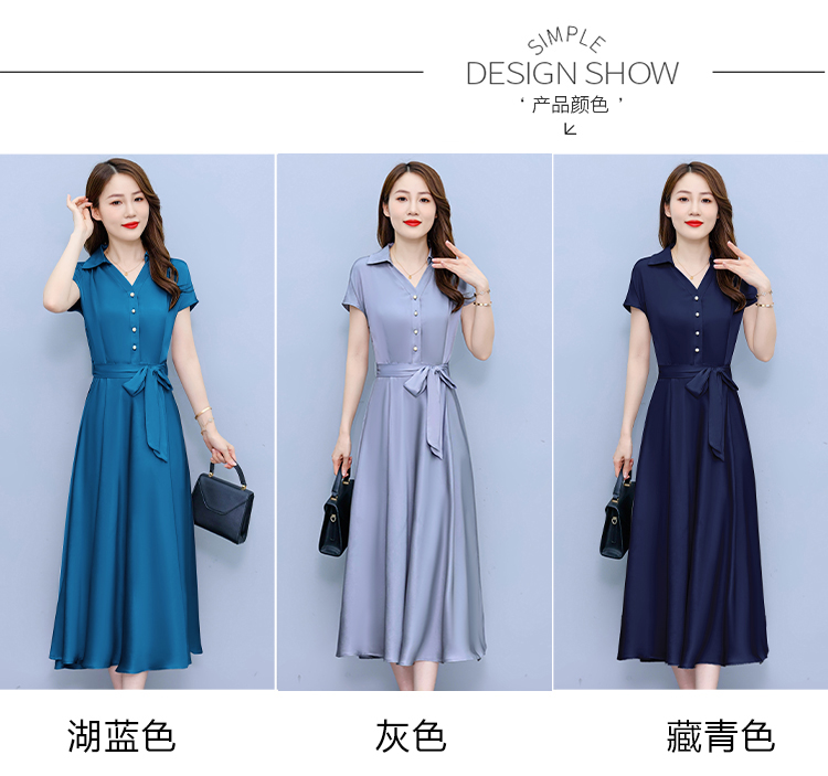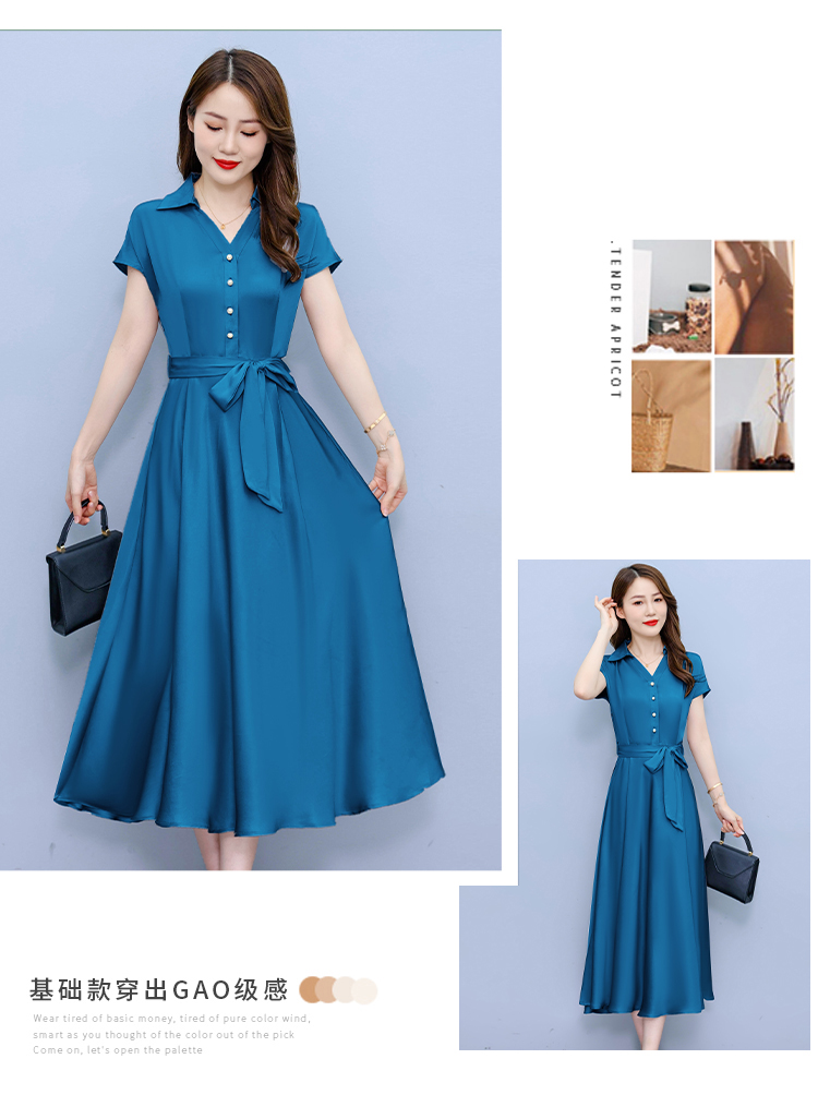 RY2527# 实拍醋酸缎面短袖连衣裙气质显瘦2026夏季洋气遮肚纯色女装