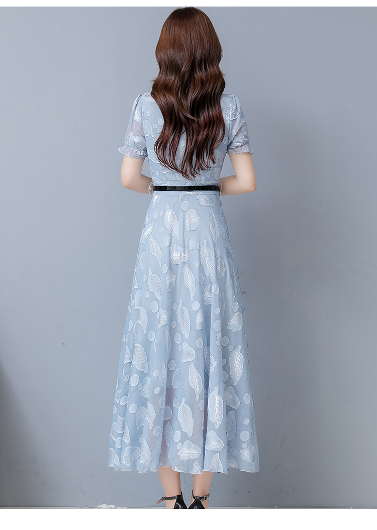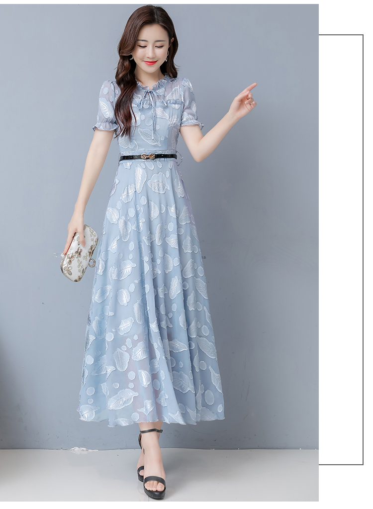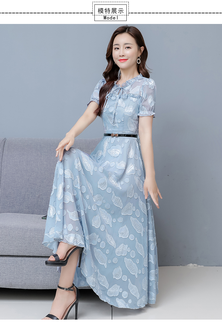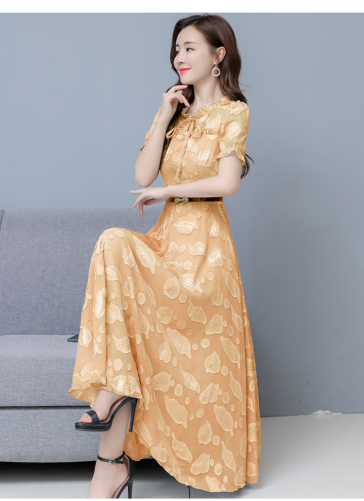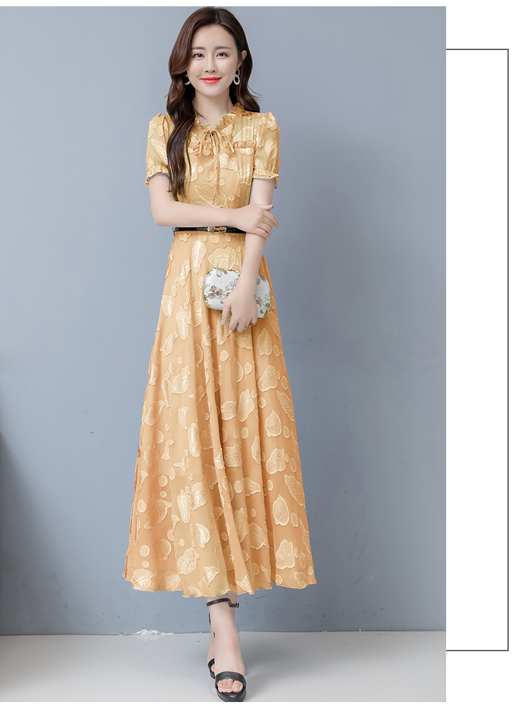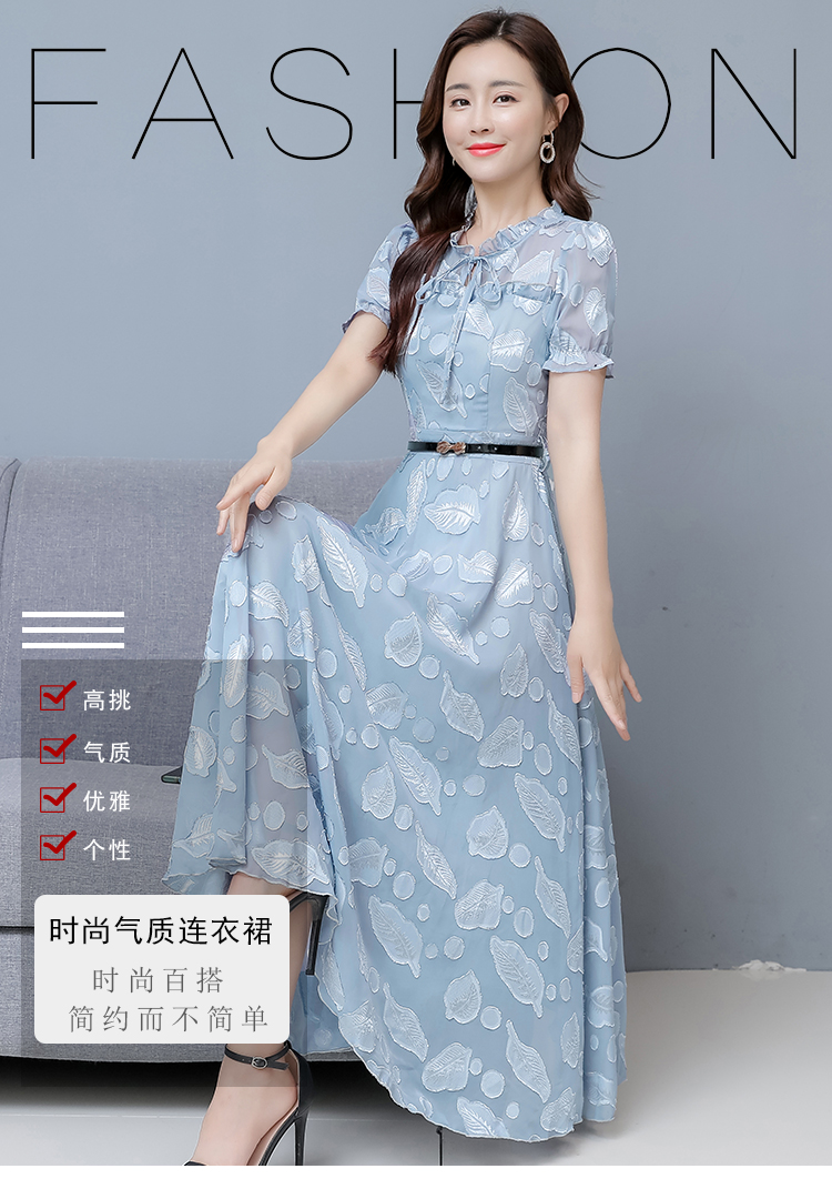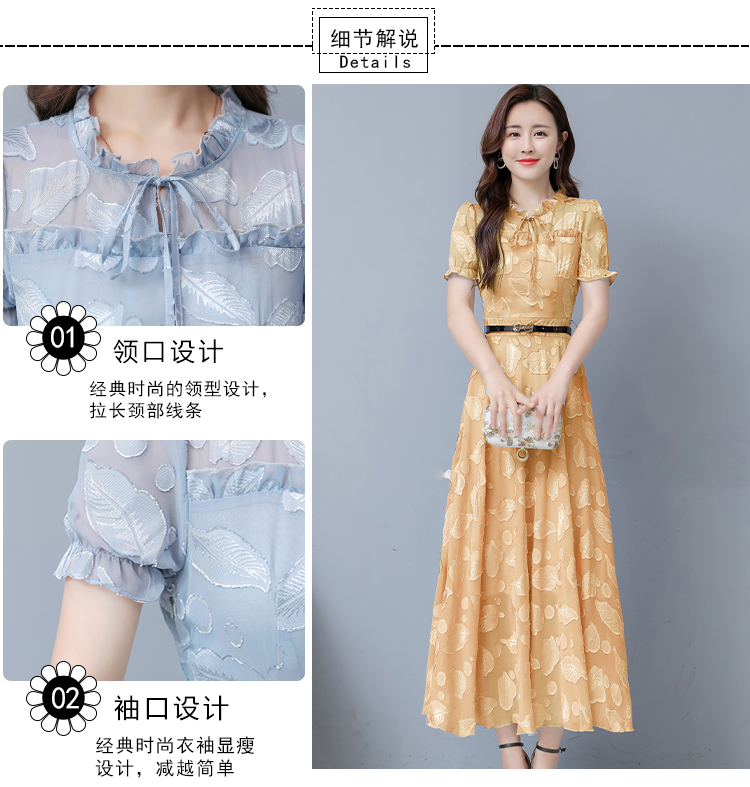 RY2530# 实拍2026夏新款短袖雪纺提花大码气质修身连衣裙女