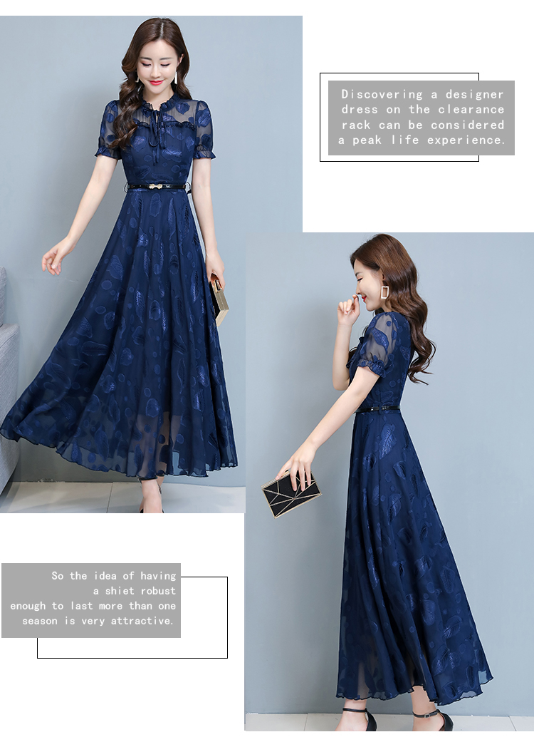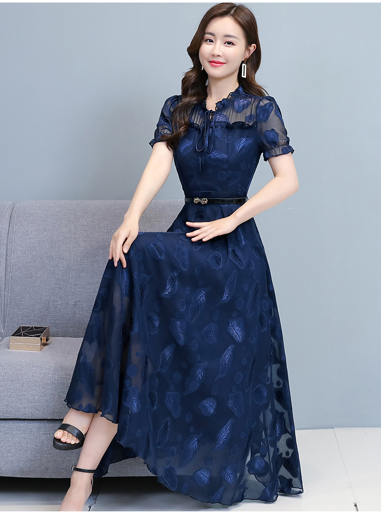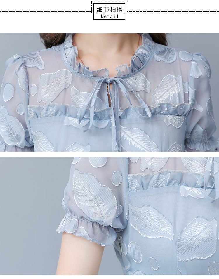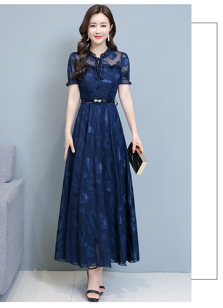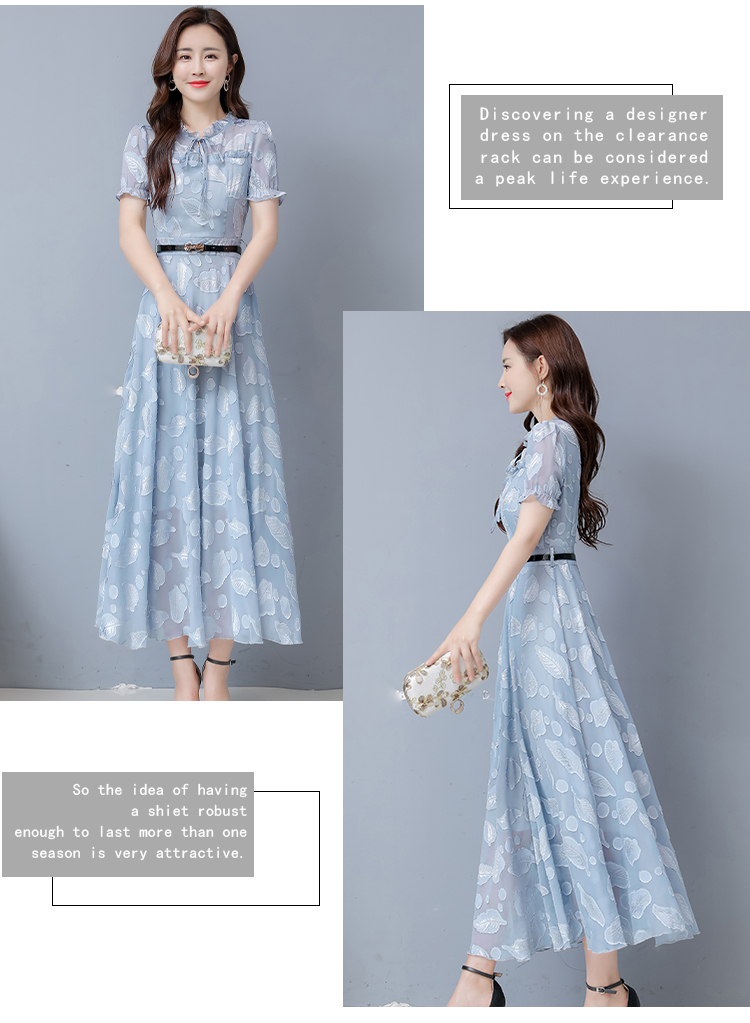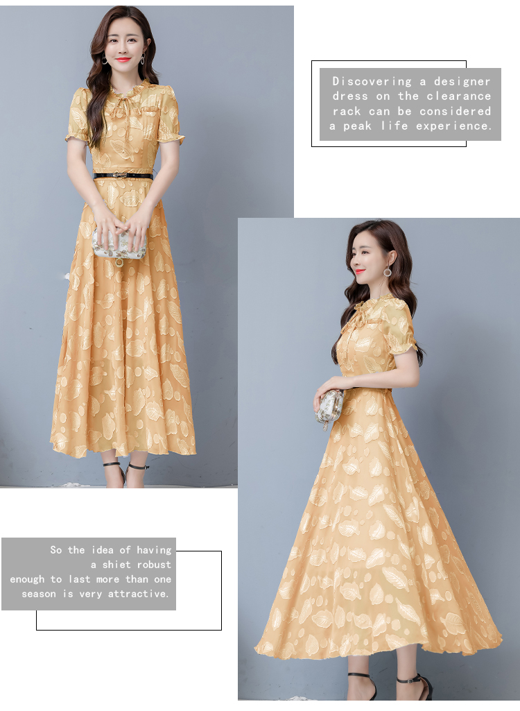 RY2530# 实拍2026夏新款短袖雪纺提花大码气质修身连衣裙女