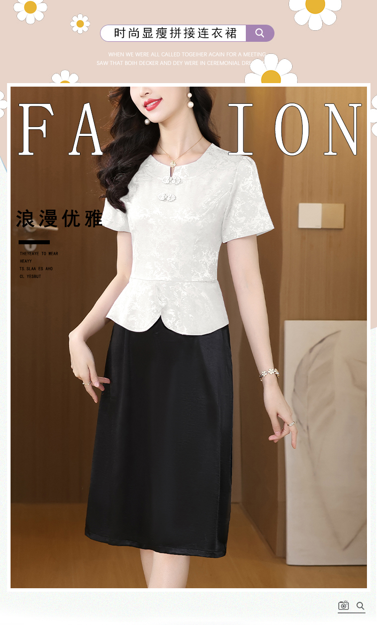 RY2540# 气质复古新拼接假两件连衣裙2026夏季新款洋气显瘦中款长裙子