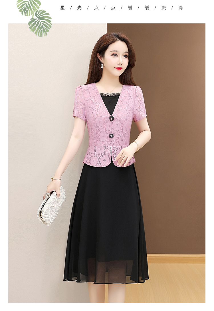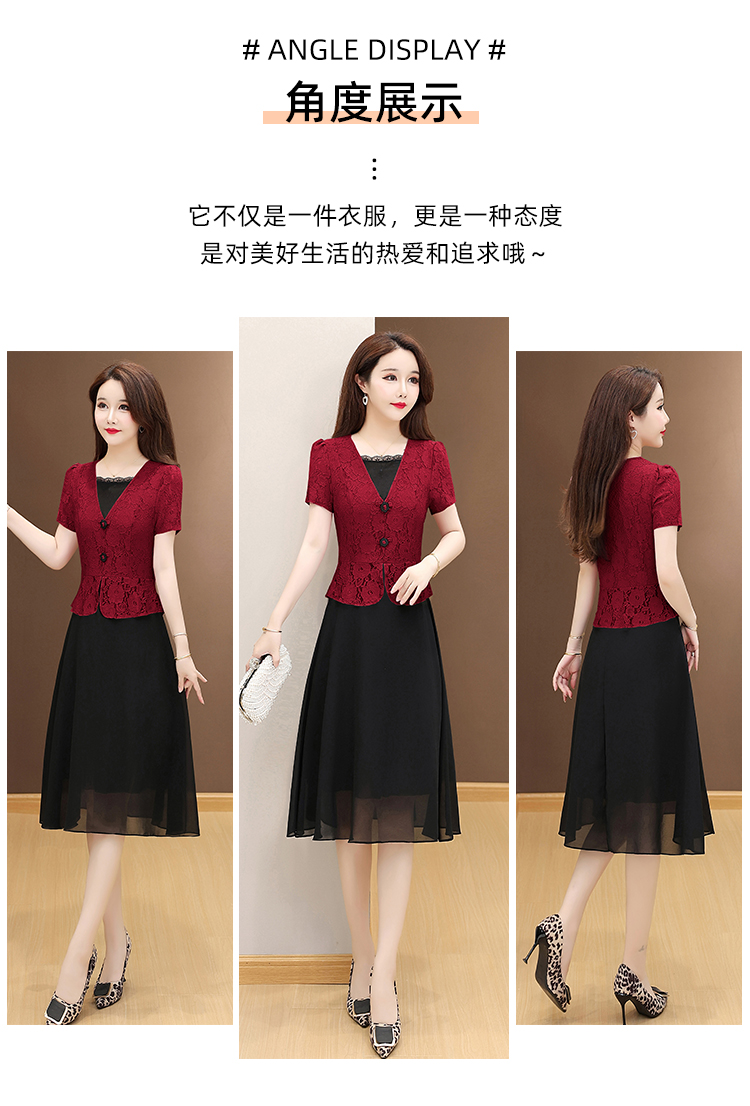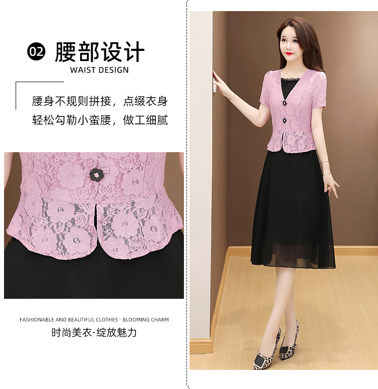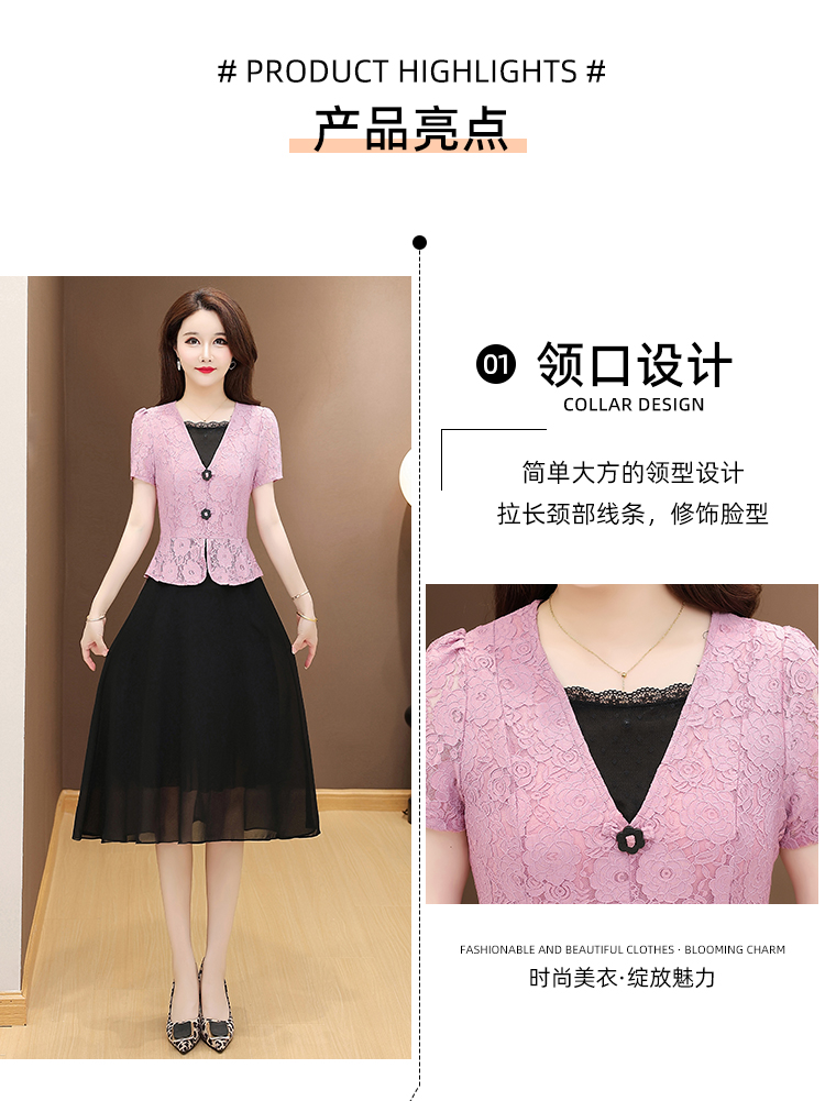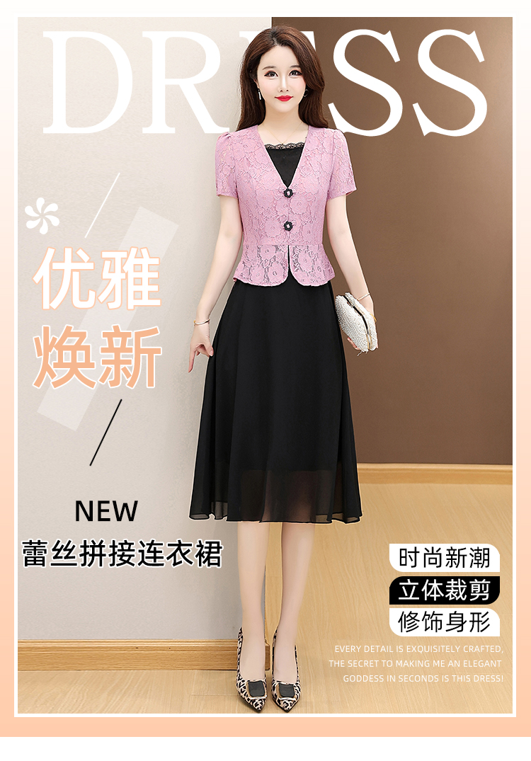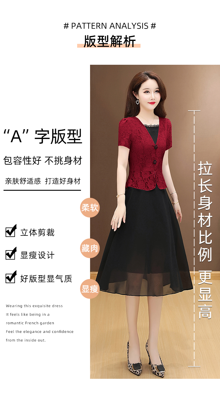 RY2546# 实拍 2026春夏季新款蕾丝短袖连衣裙假两件收腰透气显瘦洋气