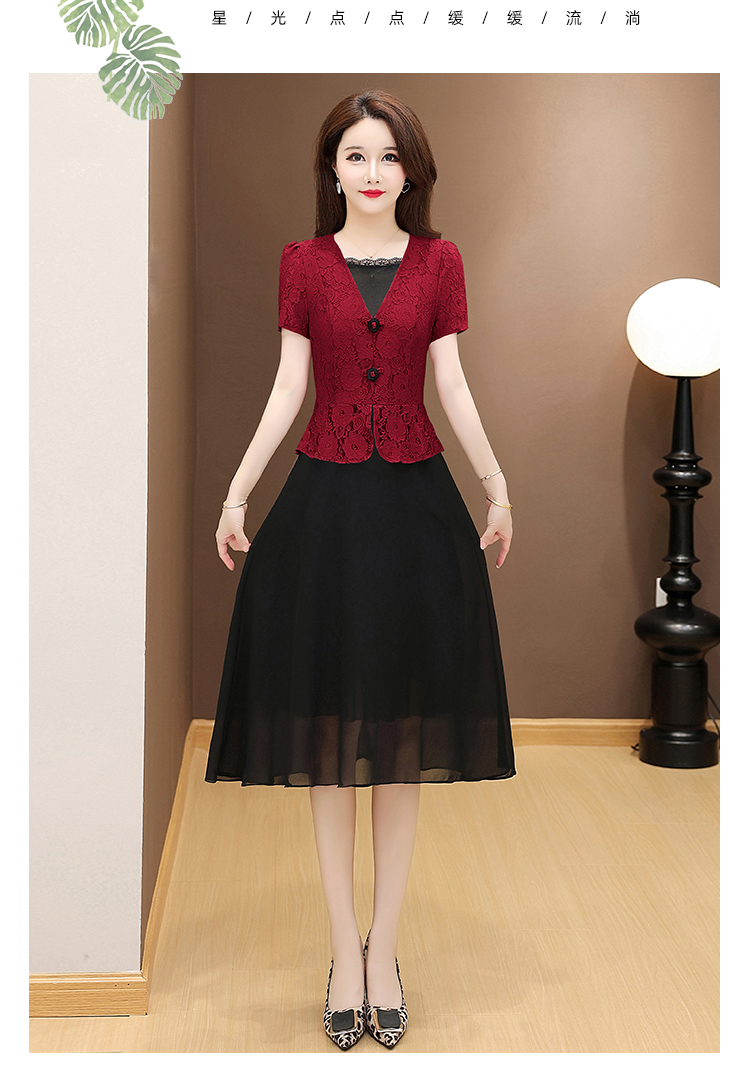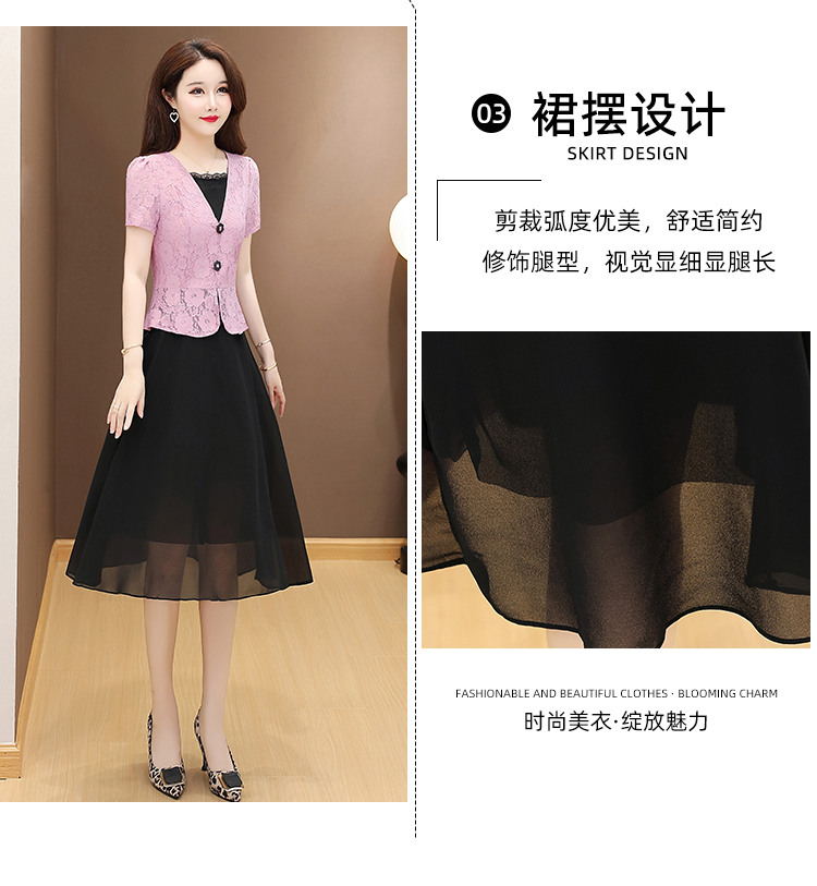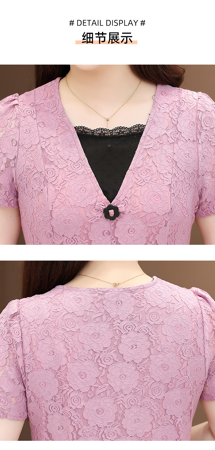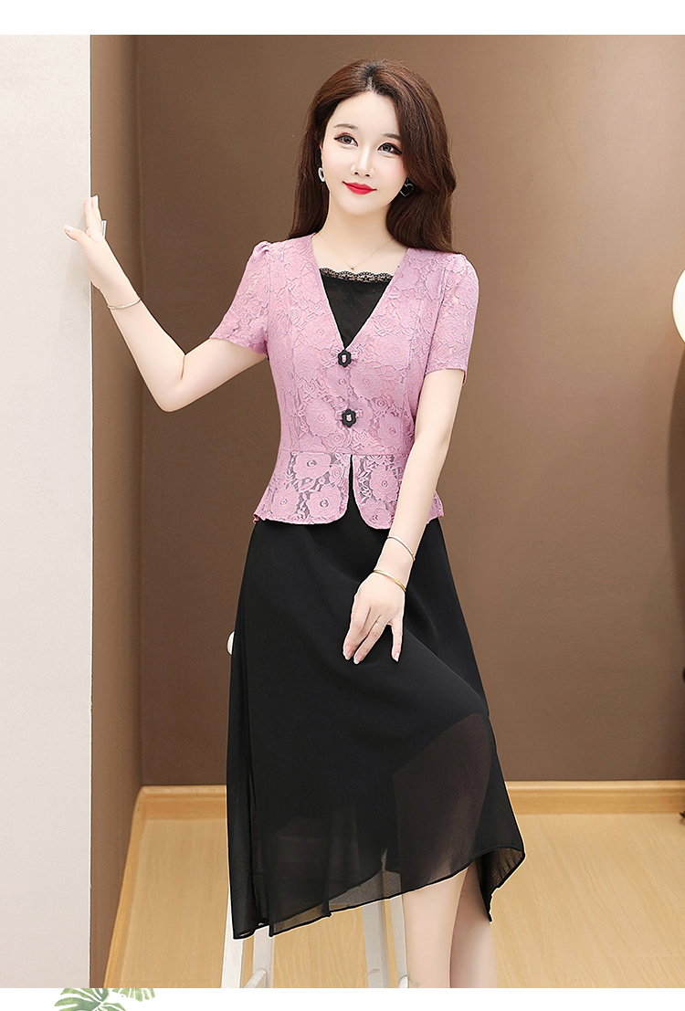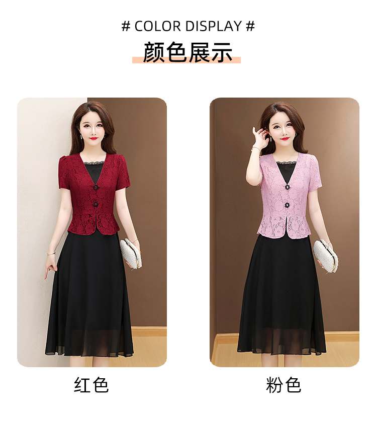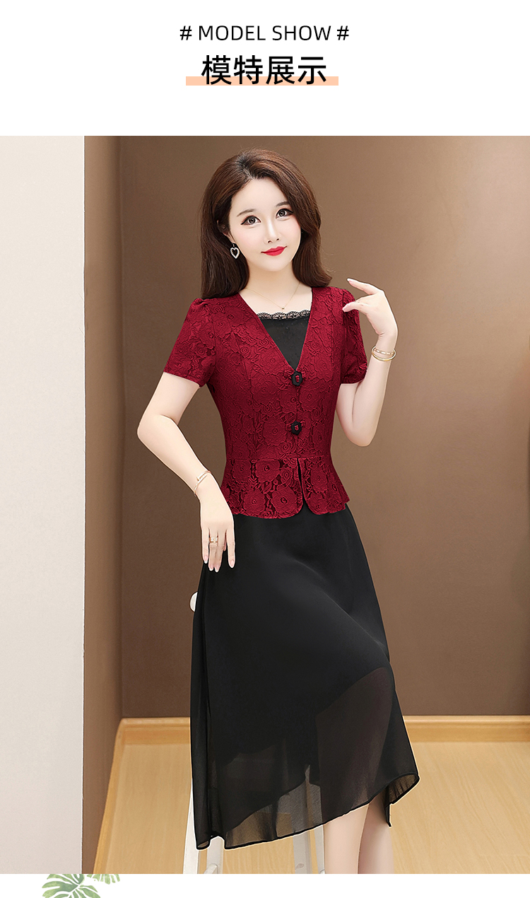 RY2546# 实拍 2026春夏季新款蕾丝短袖连衣裙假两件收腰透气显瘦洋气