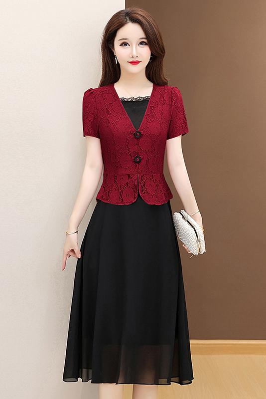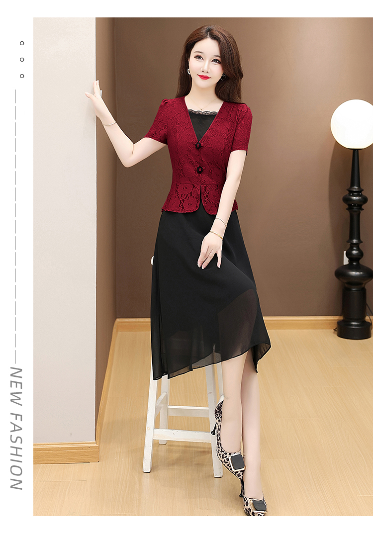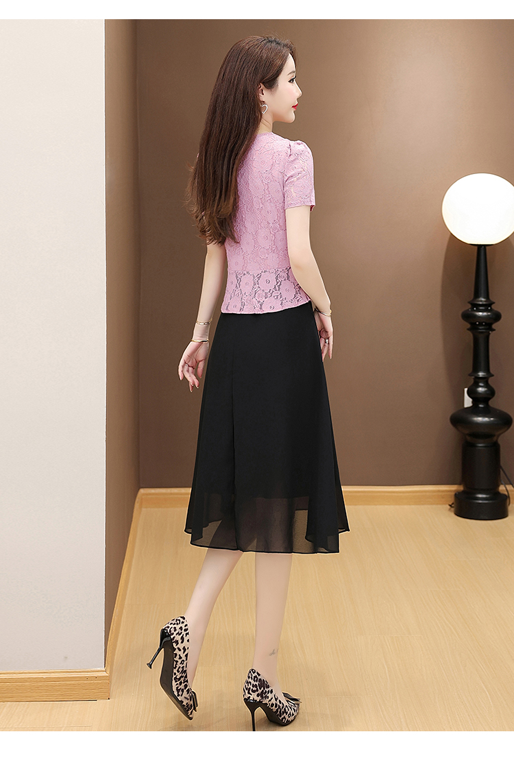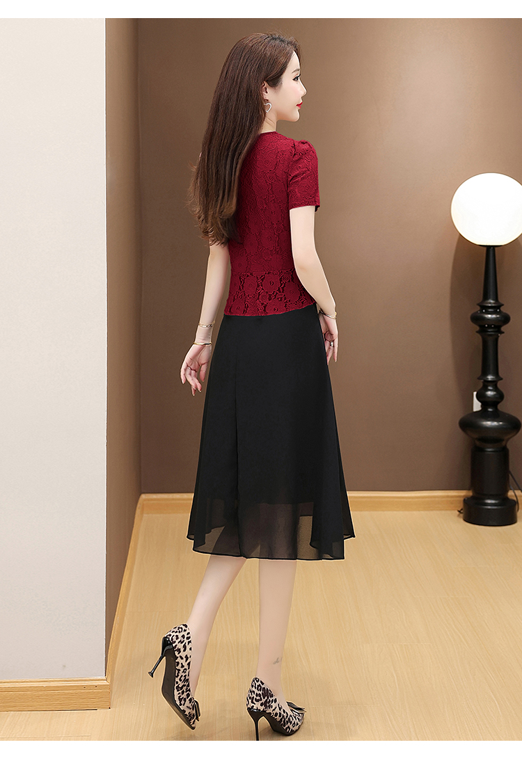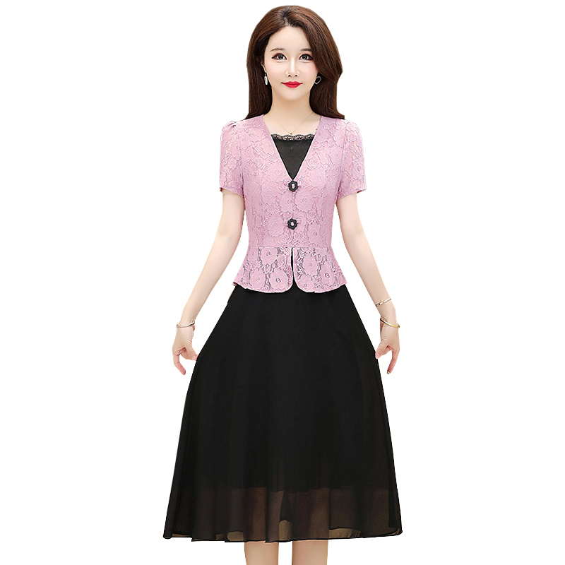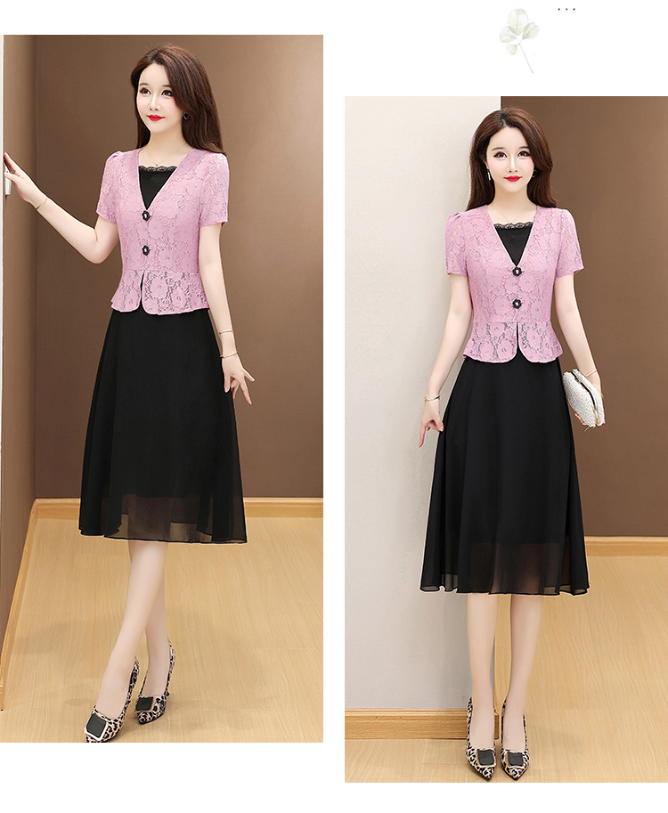 RY2546# 实拍 2026春夏季新款蕾丝短袖连衣裙假两件收腰透气显瘦洋气