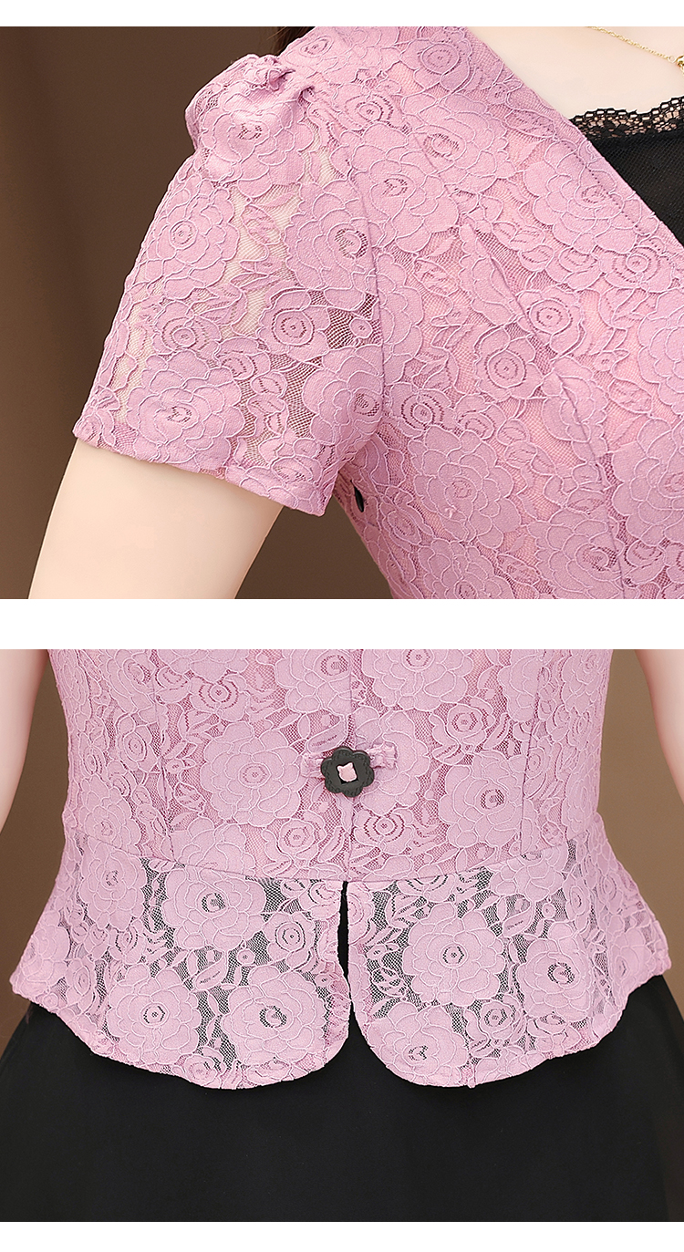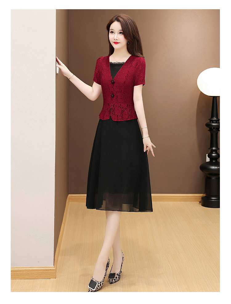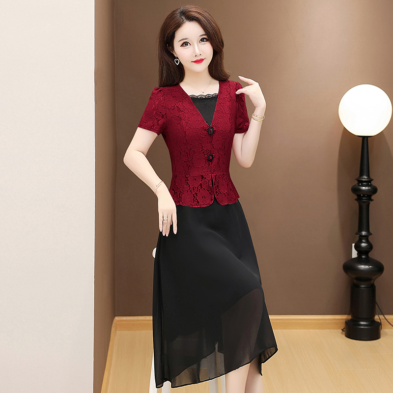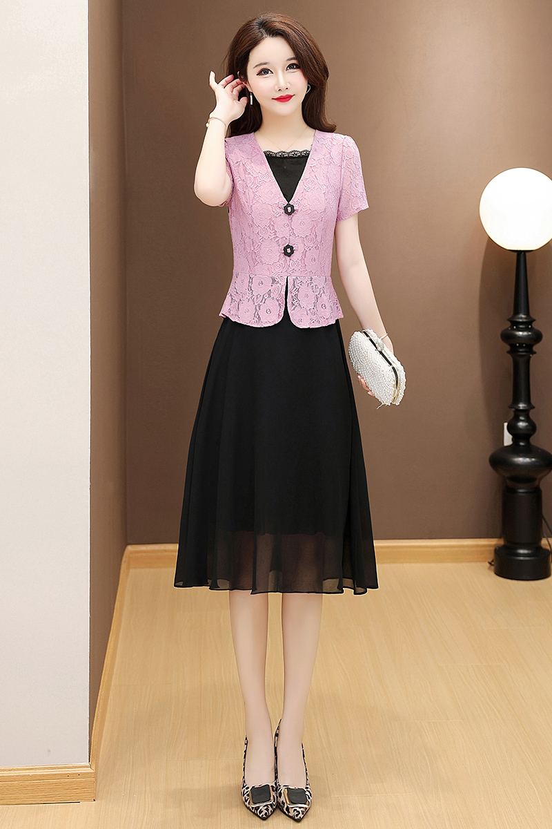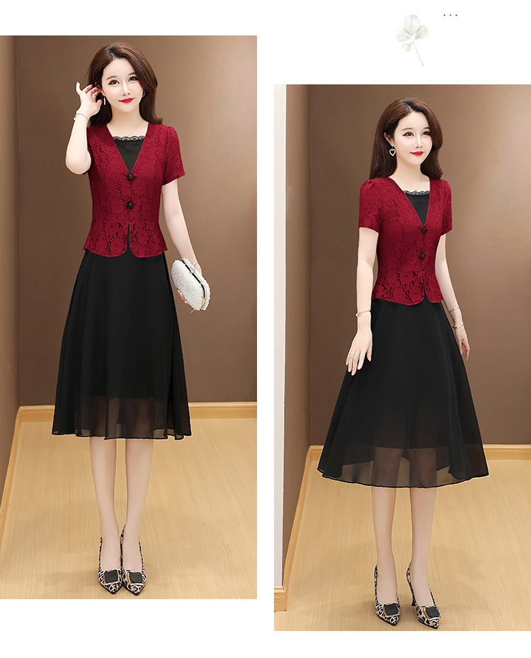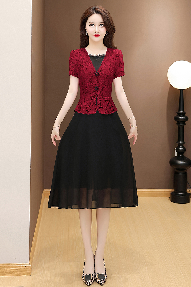 RY2546# 实拍 2026春夏季新款蕾丝短袖连衣裙假两件收腰透气显瘦洋气