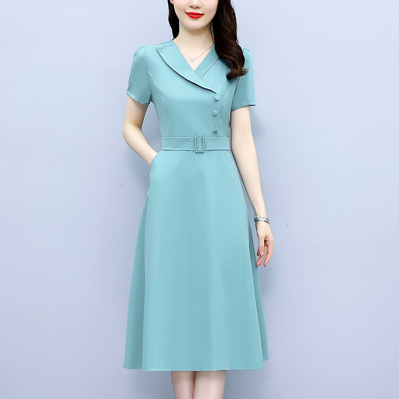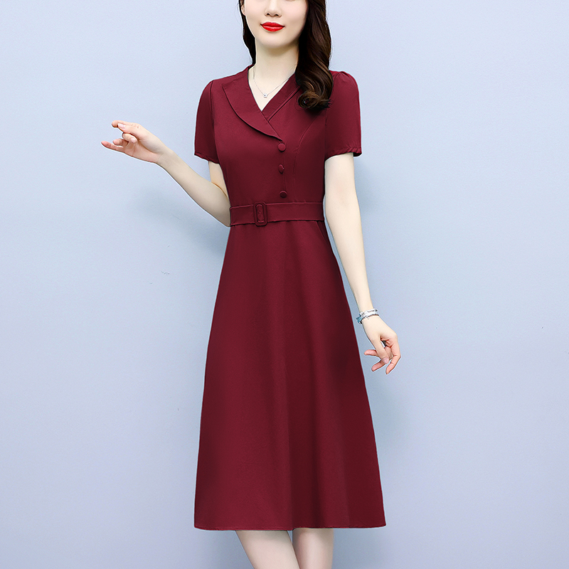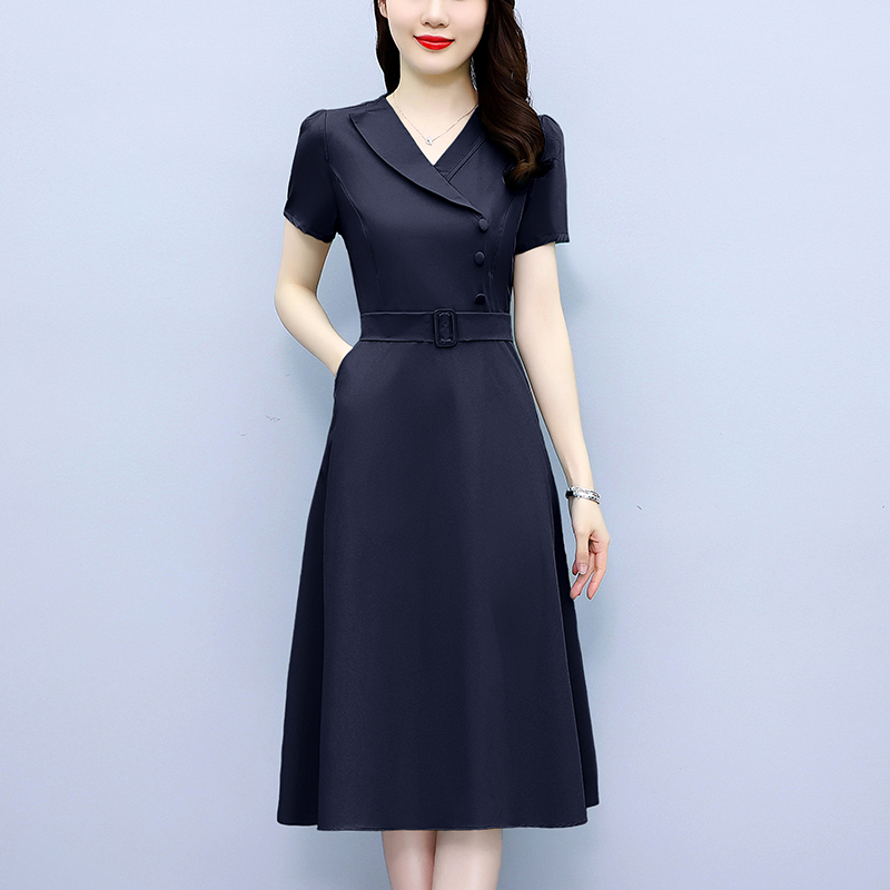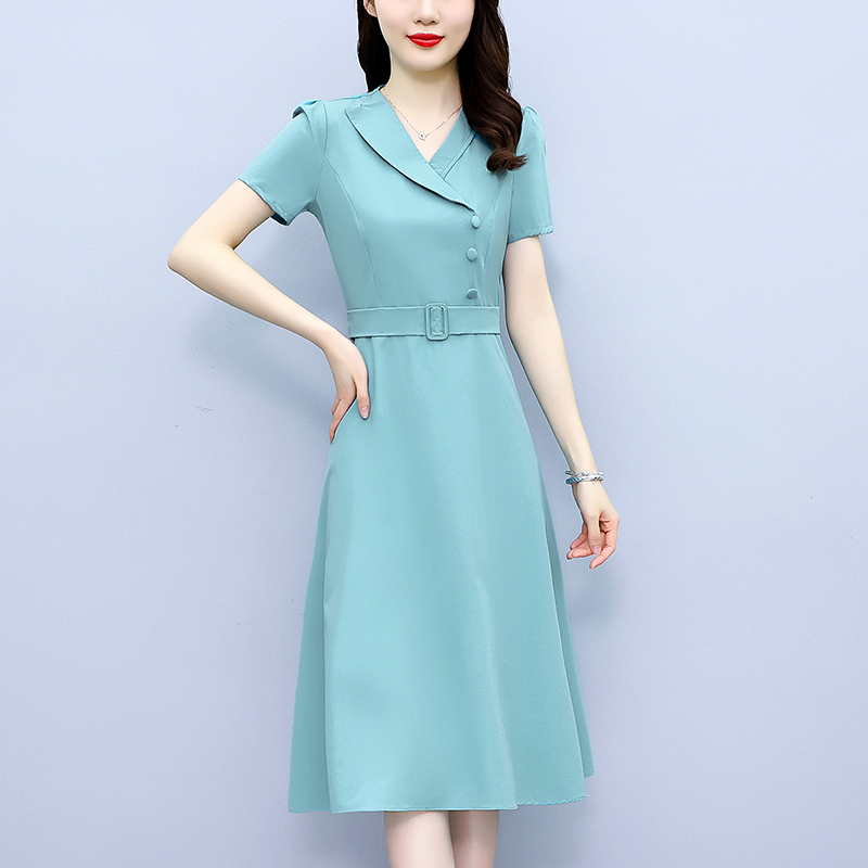 RY2548# 实拍2026年夏季新款中年妈妈短袖连衣裙高腰显瘦大摆中长款裙