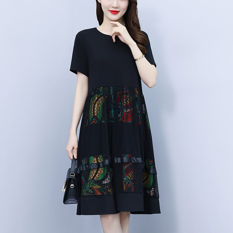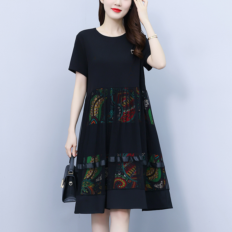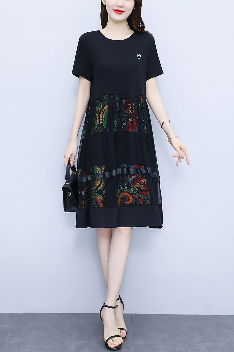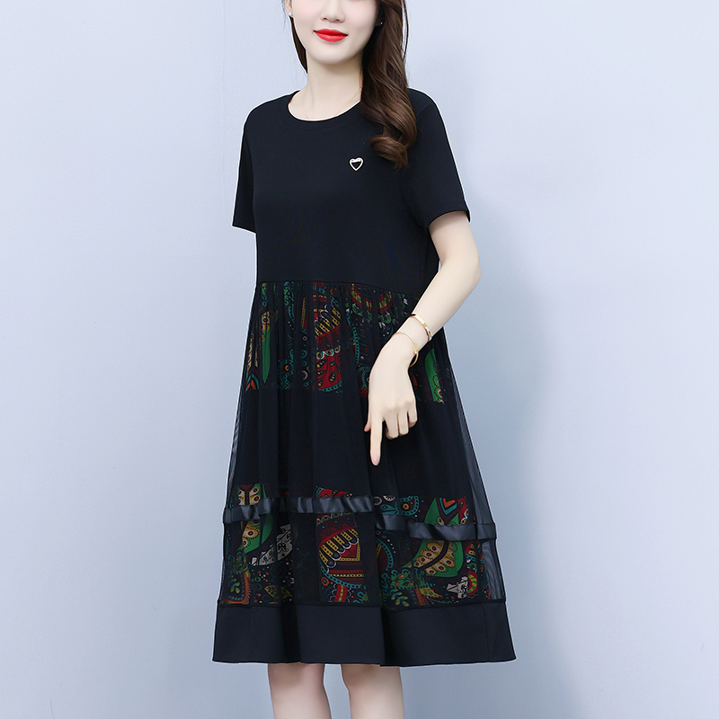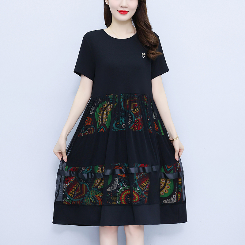 RY2549# 实拍2026年夏季新款大码女装妈妈高档印花纱网时尚洋气显瘦连衣裙