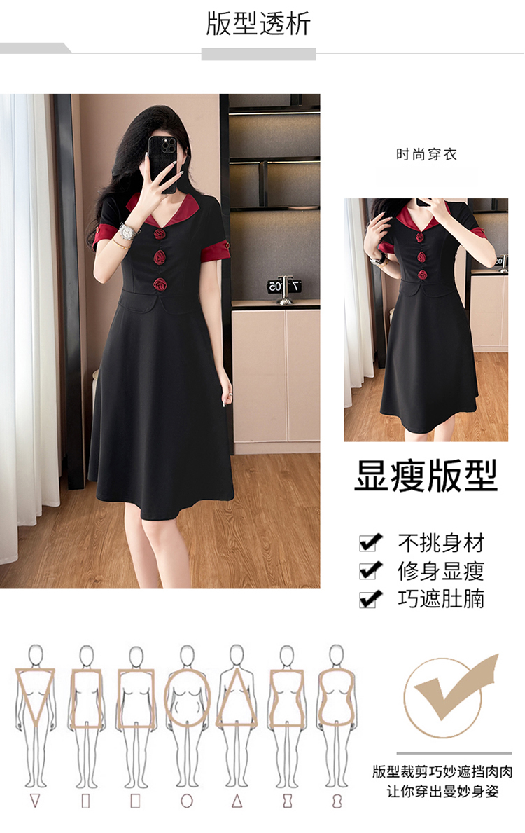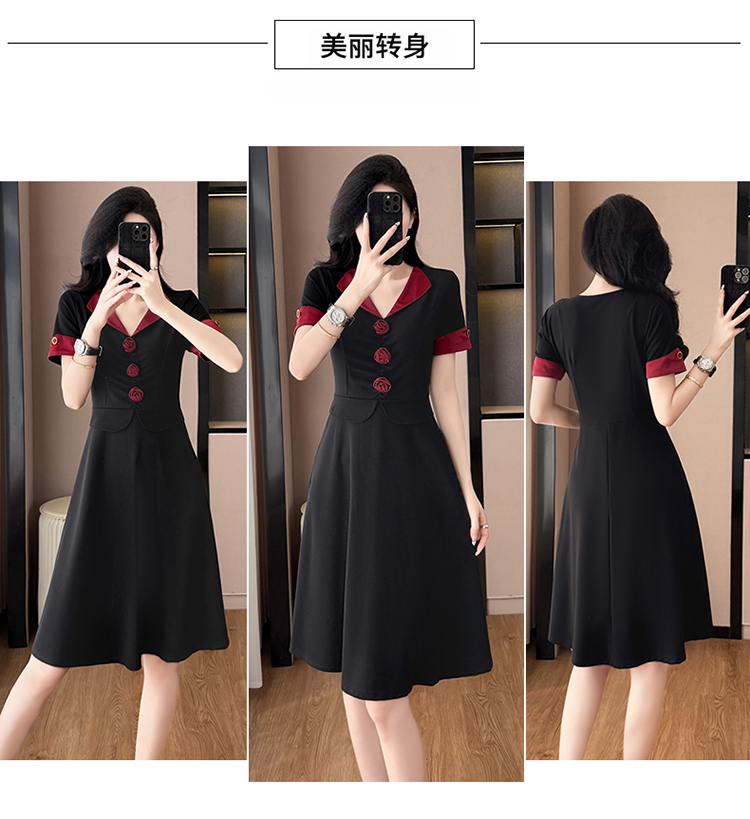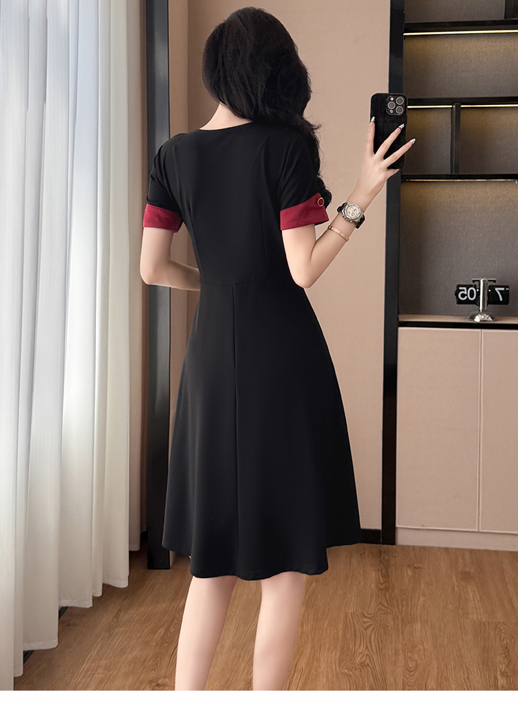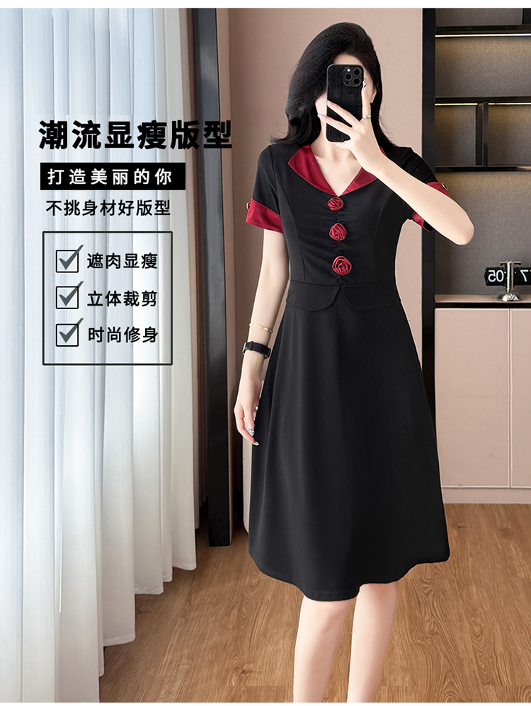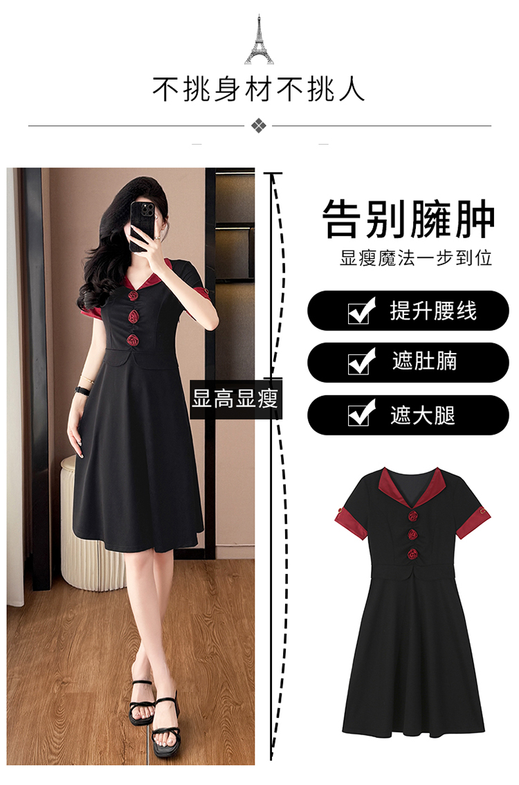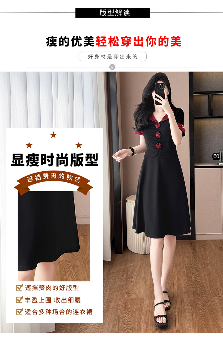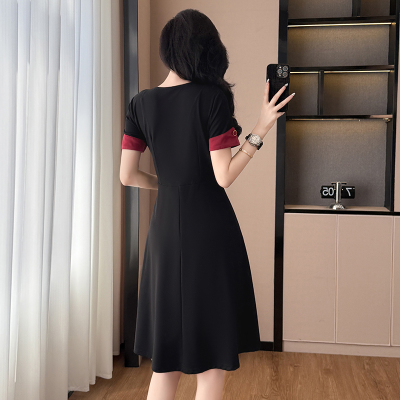 RY2553# 气质拼色假两件套大码女装胖mm妈妈装短袖连衣裙修身显瘦夏季新款