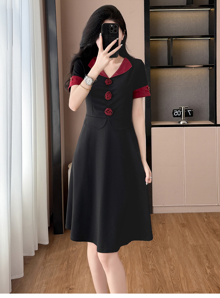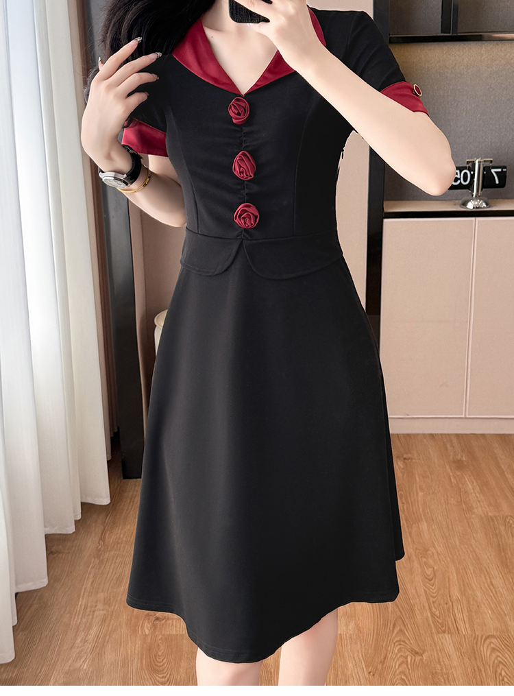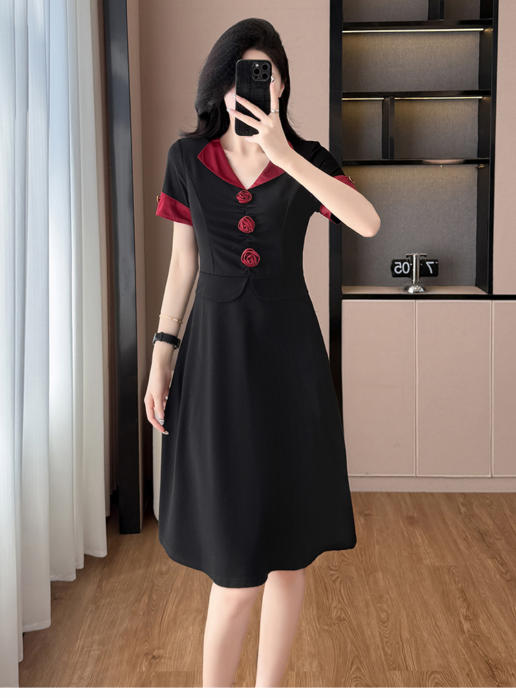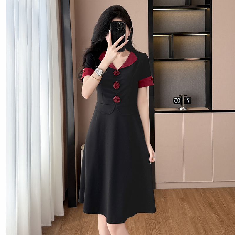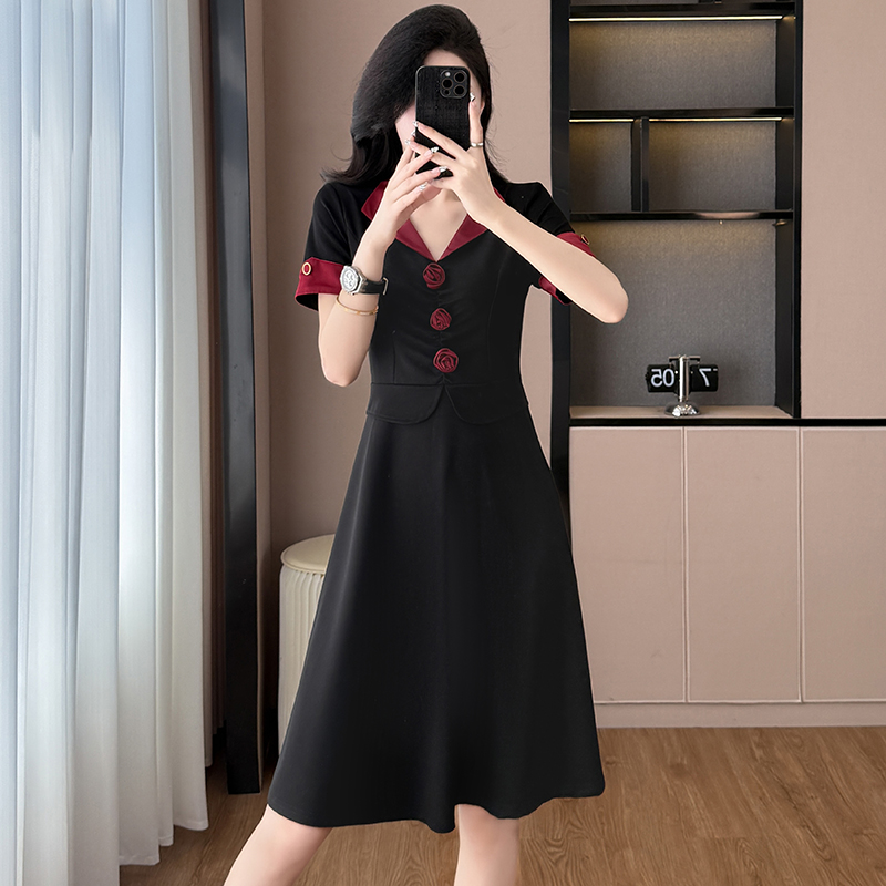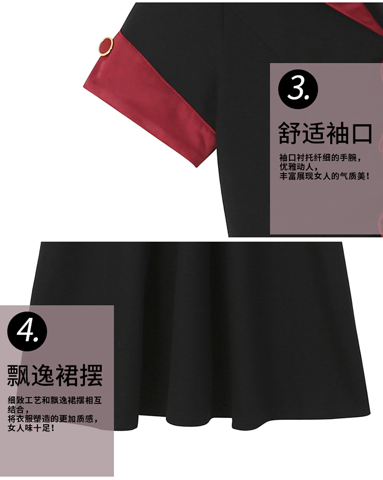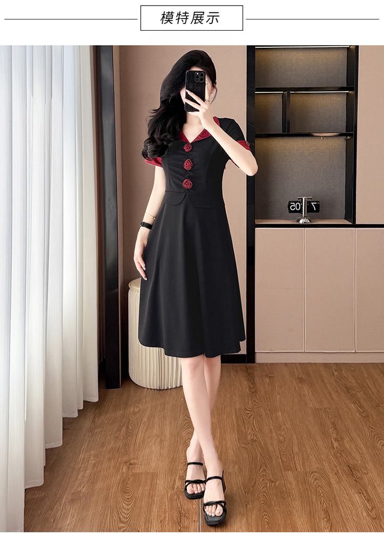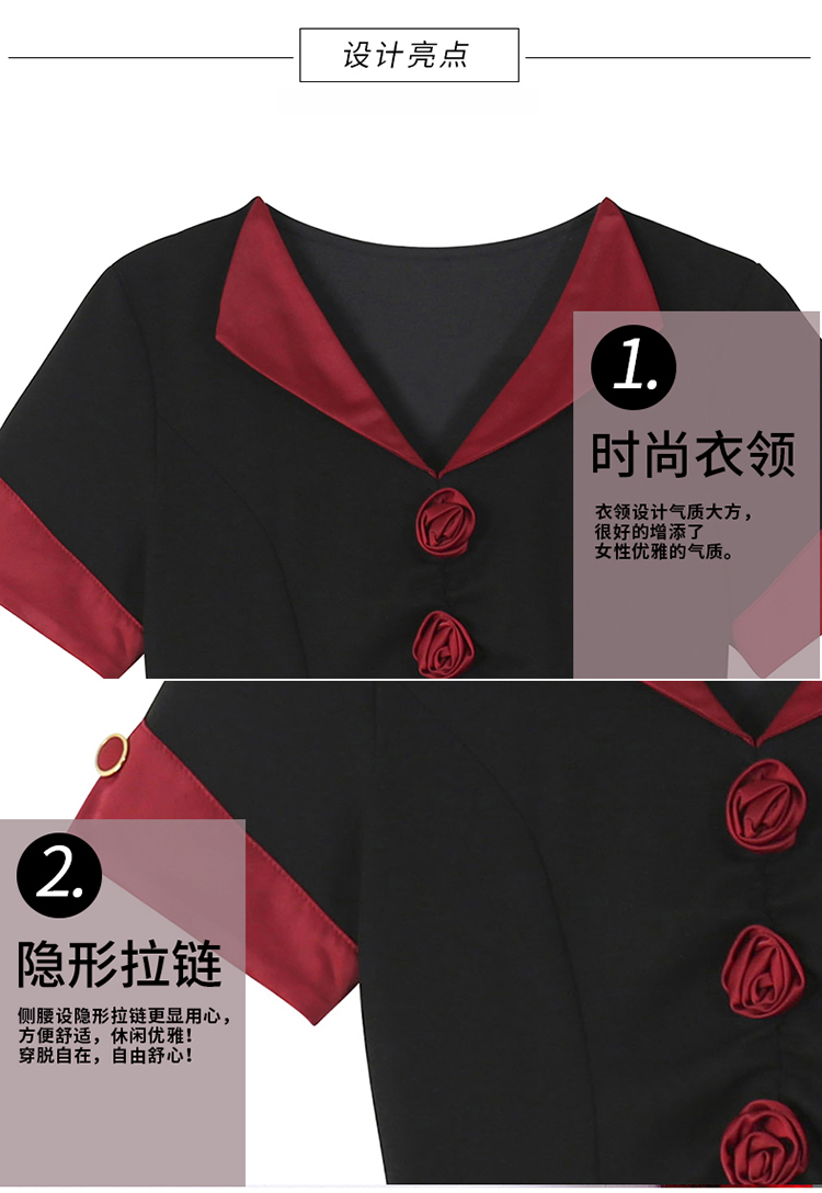RY2553# 气质拼色假两件套大码女装胖mm妈妈装短袖连衣裙修身显瘦夏季新款