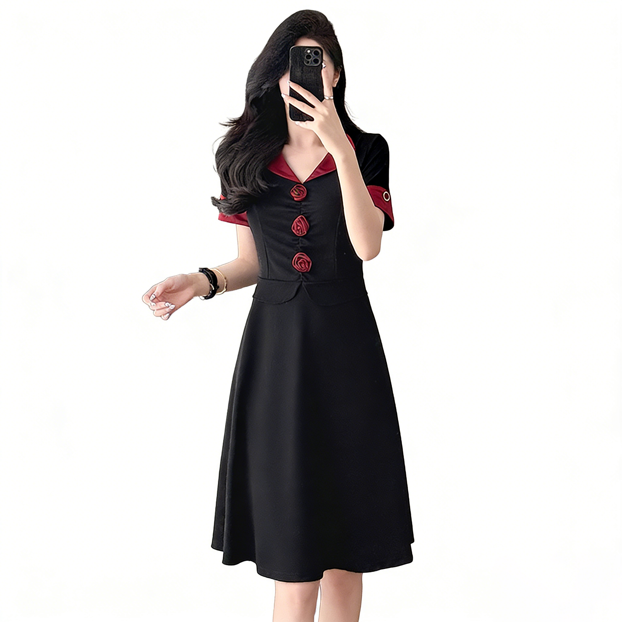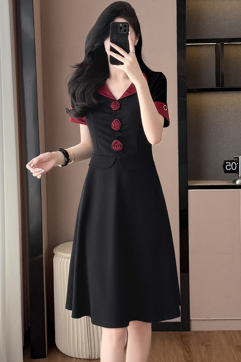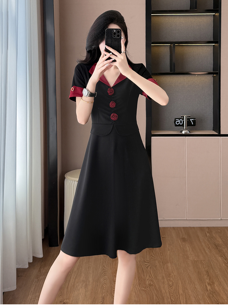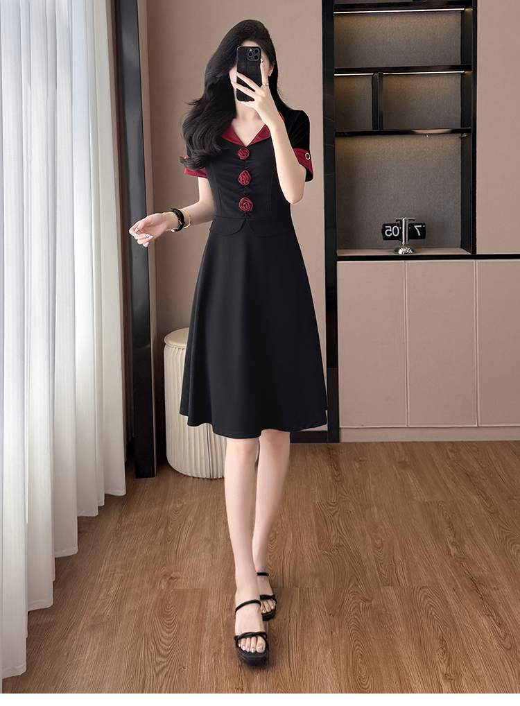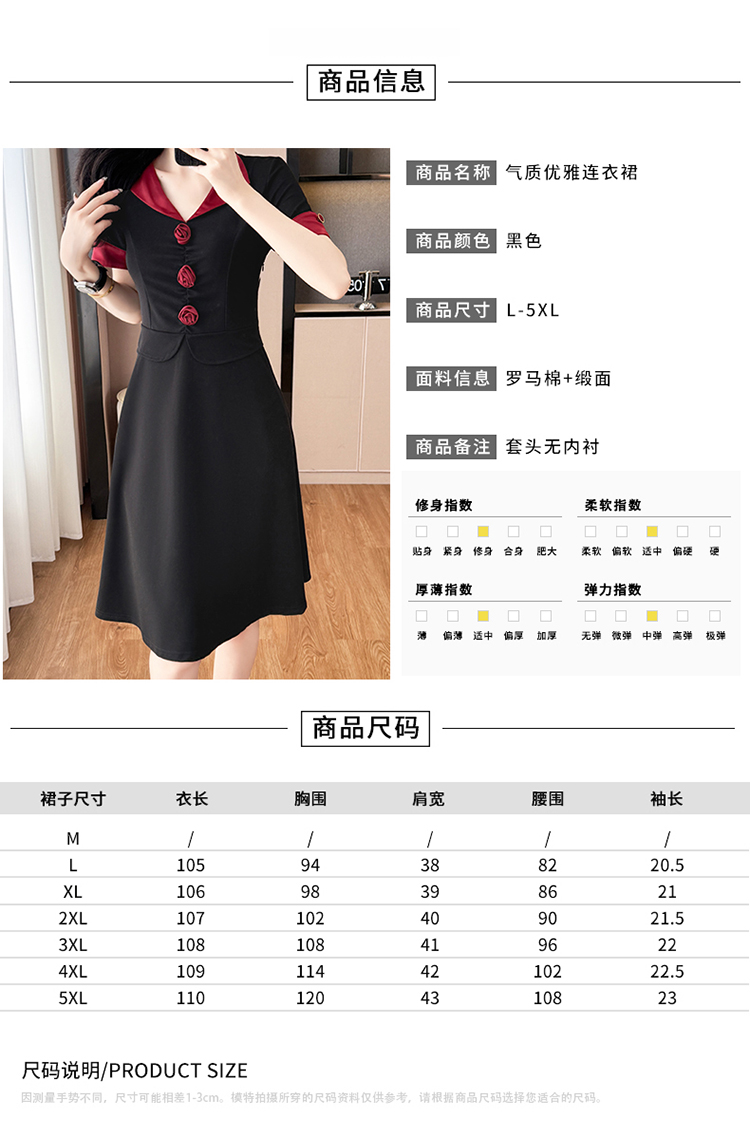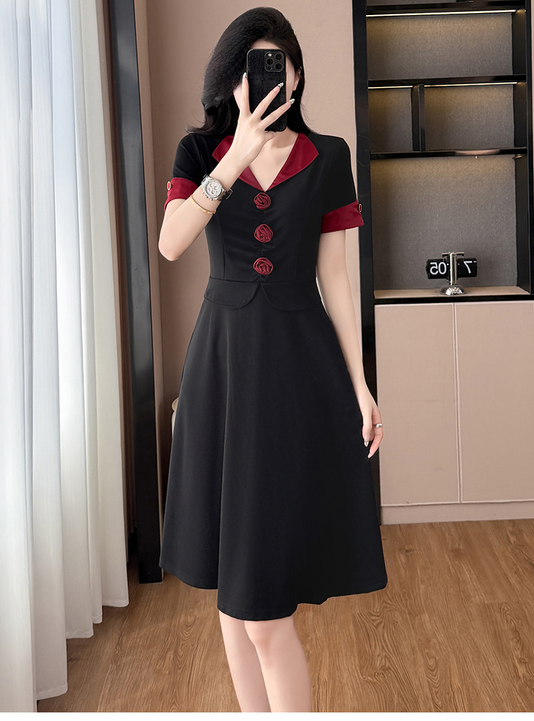 RY2553# 气质拼色假两件套大码女装胖mm妈妈装短袖连衣裙修身显瘦夏季新款