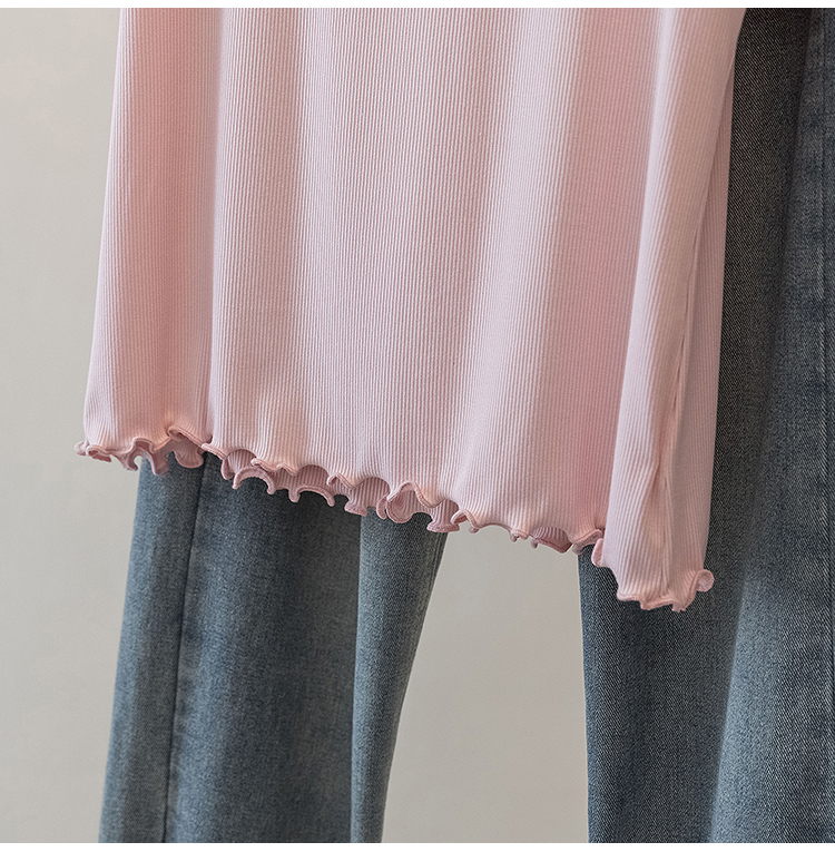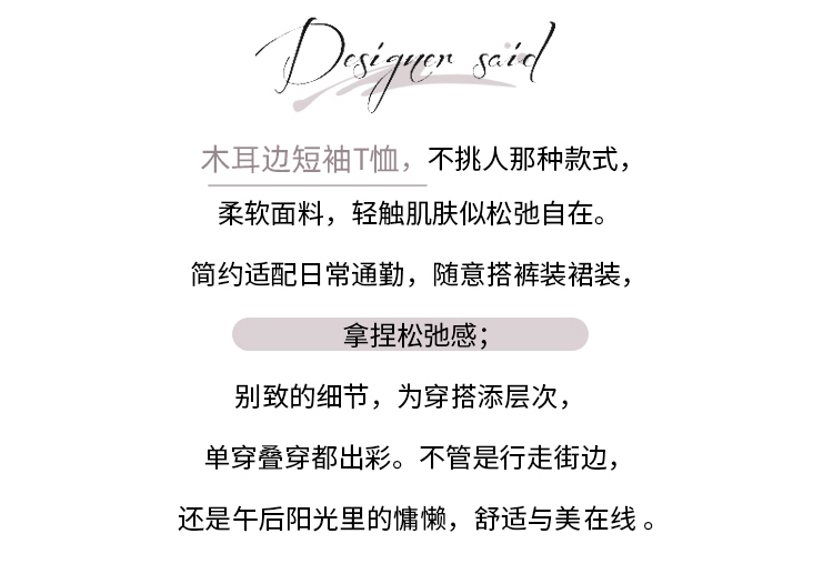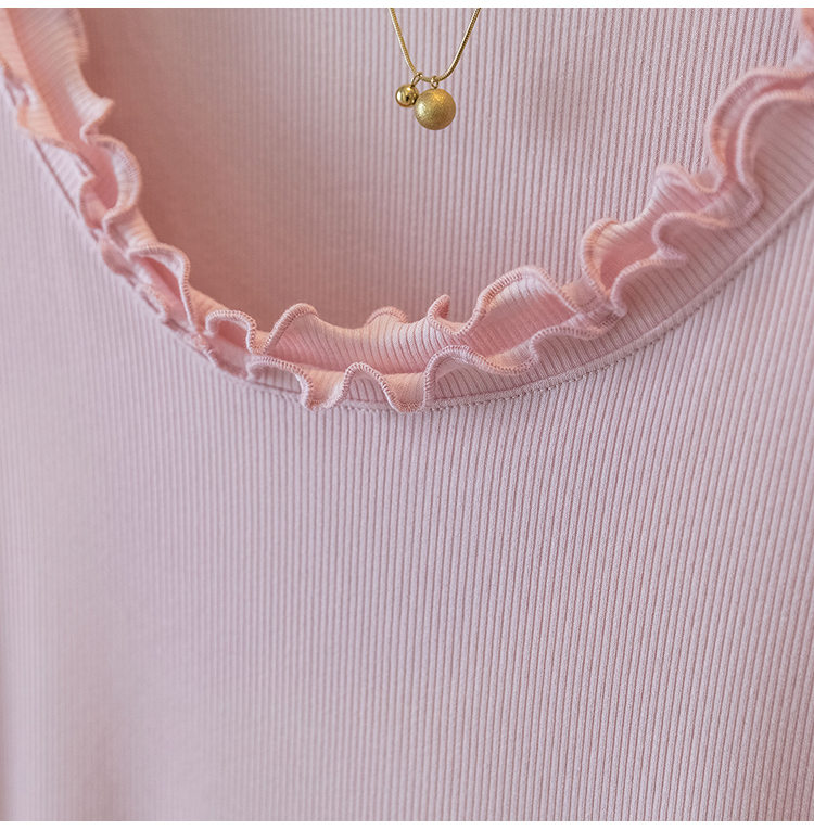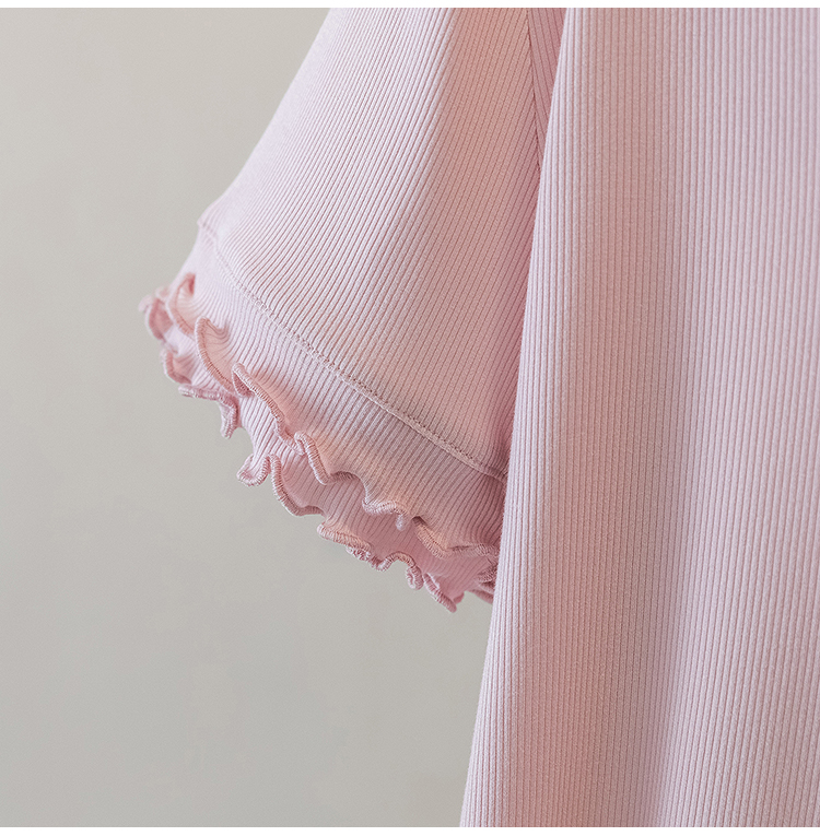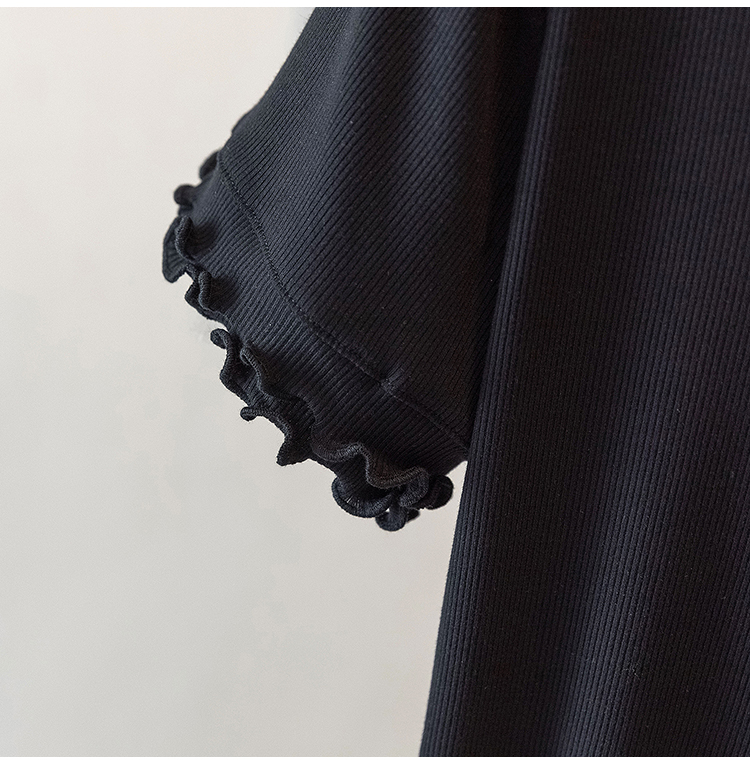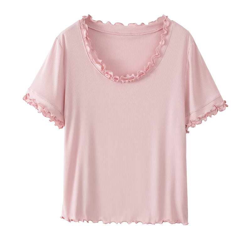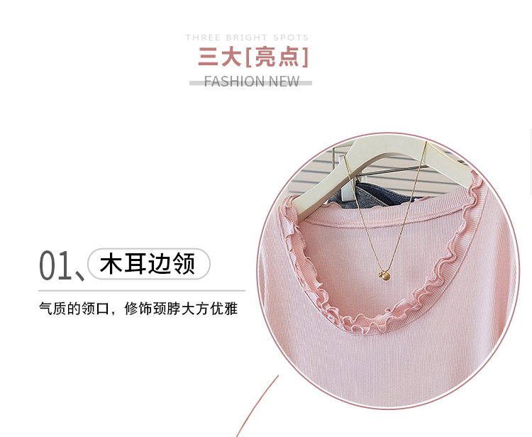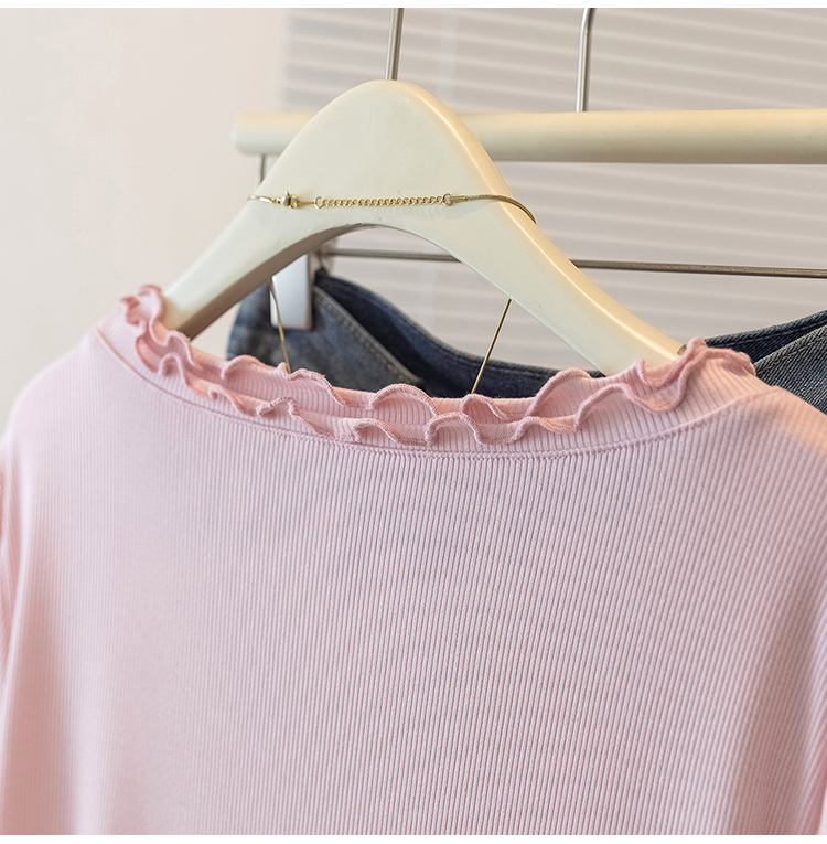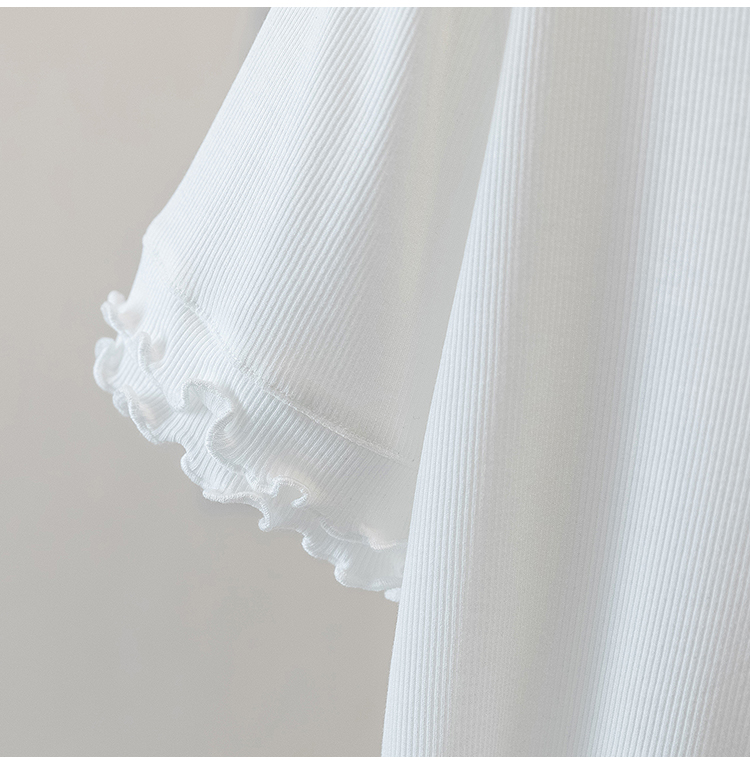 RY2554# 实拍大码正肩短袖T恤女木耳边U领修身显瘦夏季新款韩系简约上衣潮