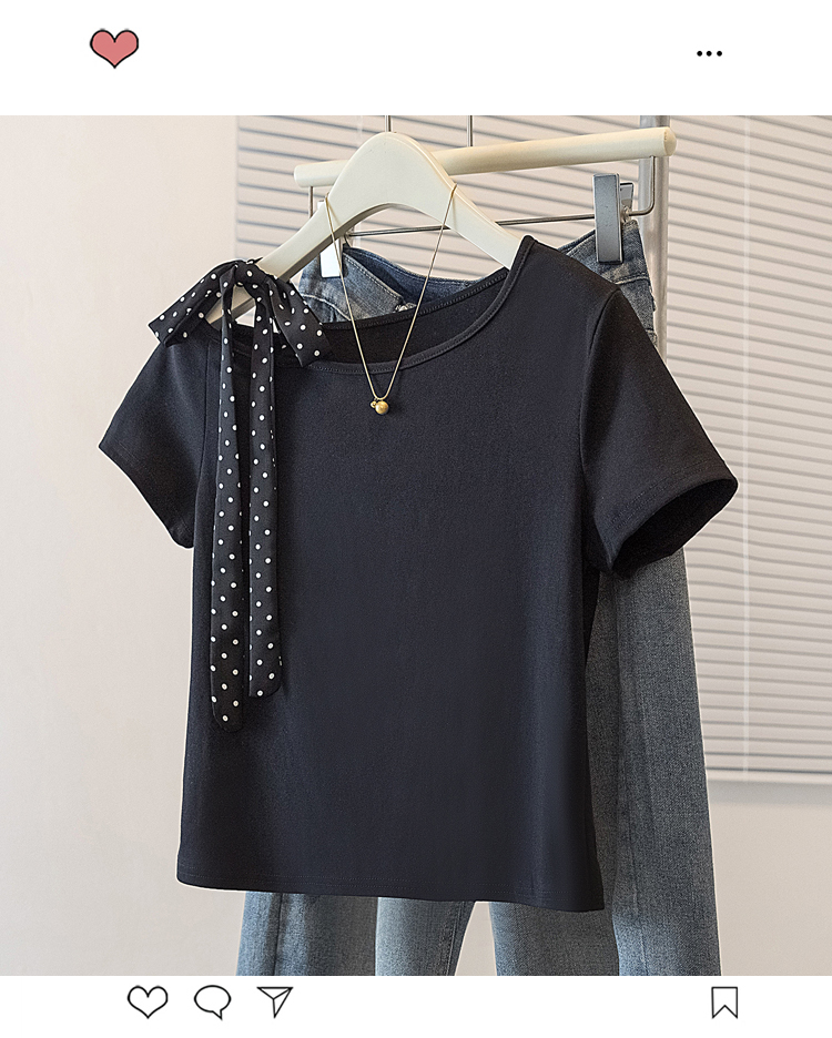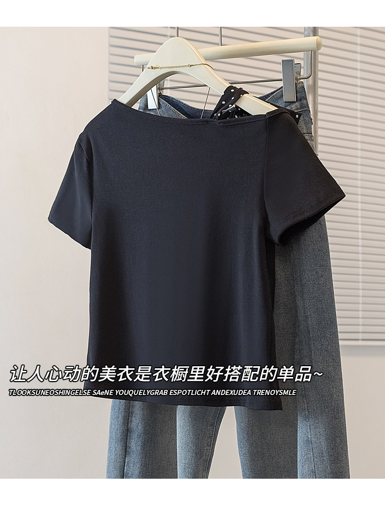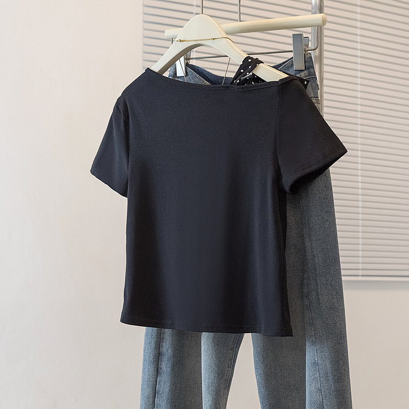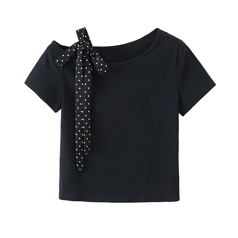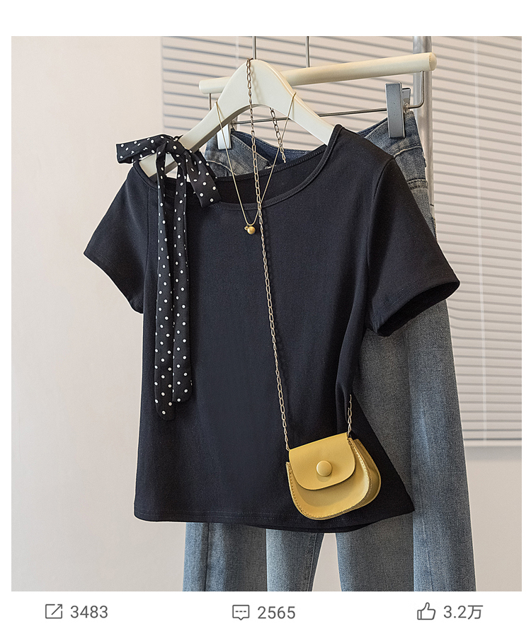RY2556# 实拍独特漂亮黑色短袖T恤女夏季新款法式设计感小众时尚气质上衣