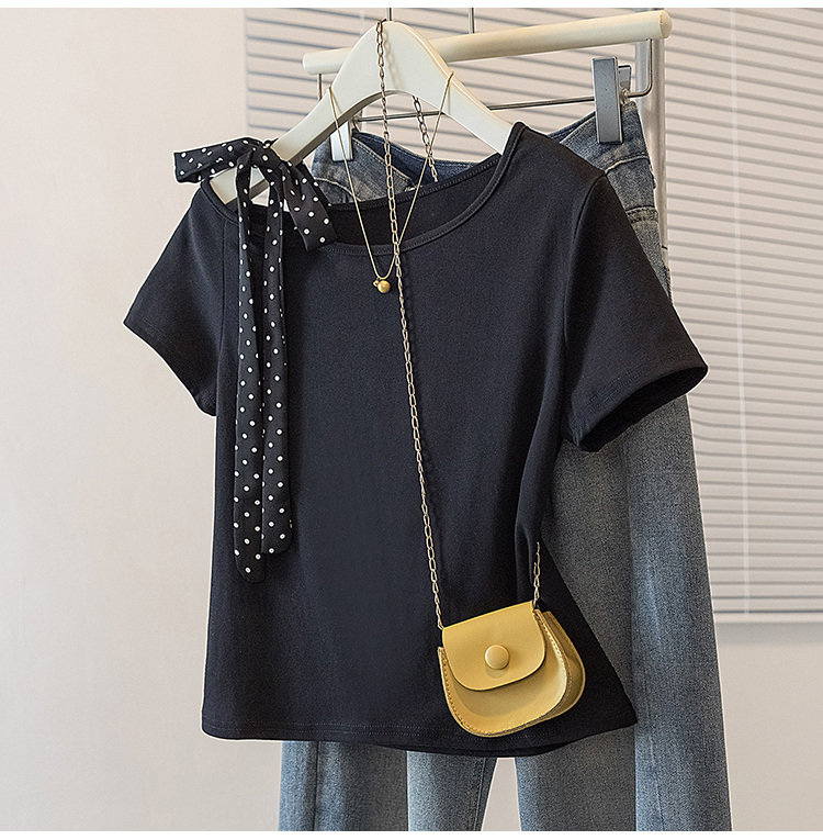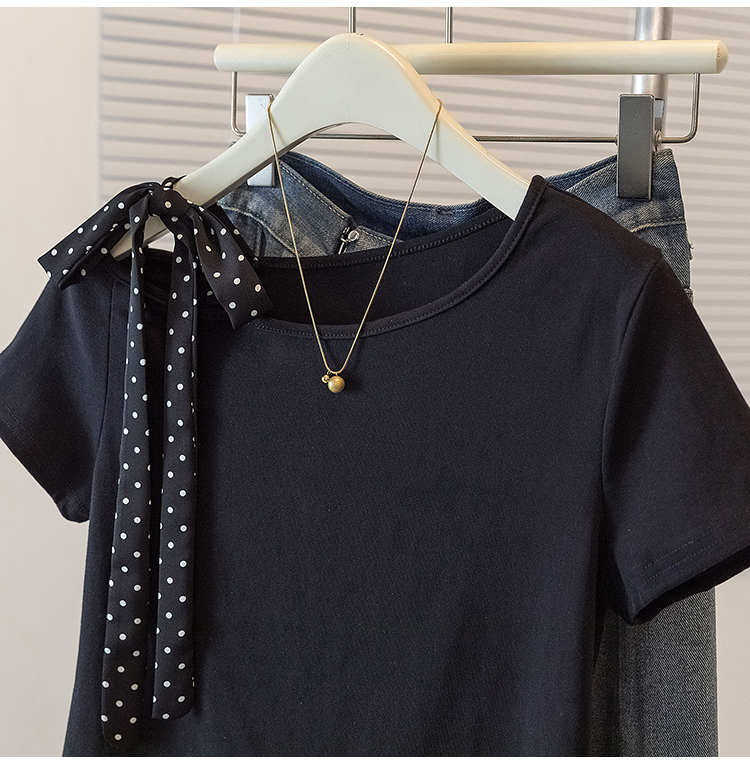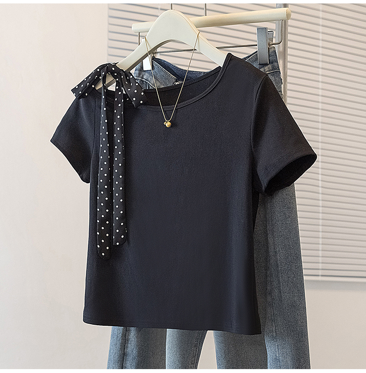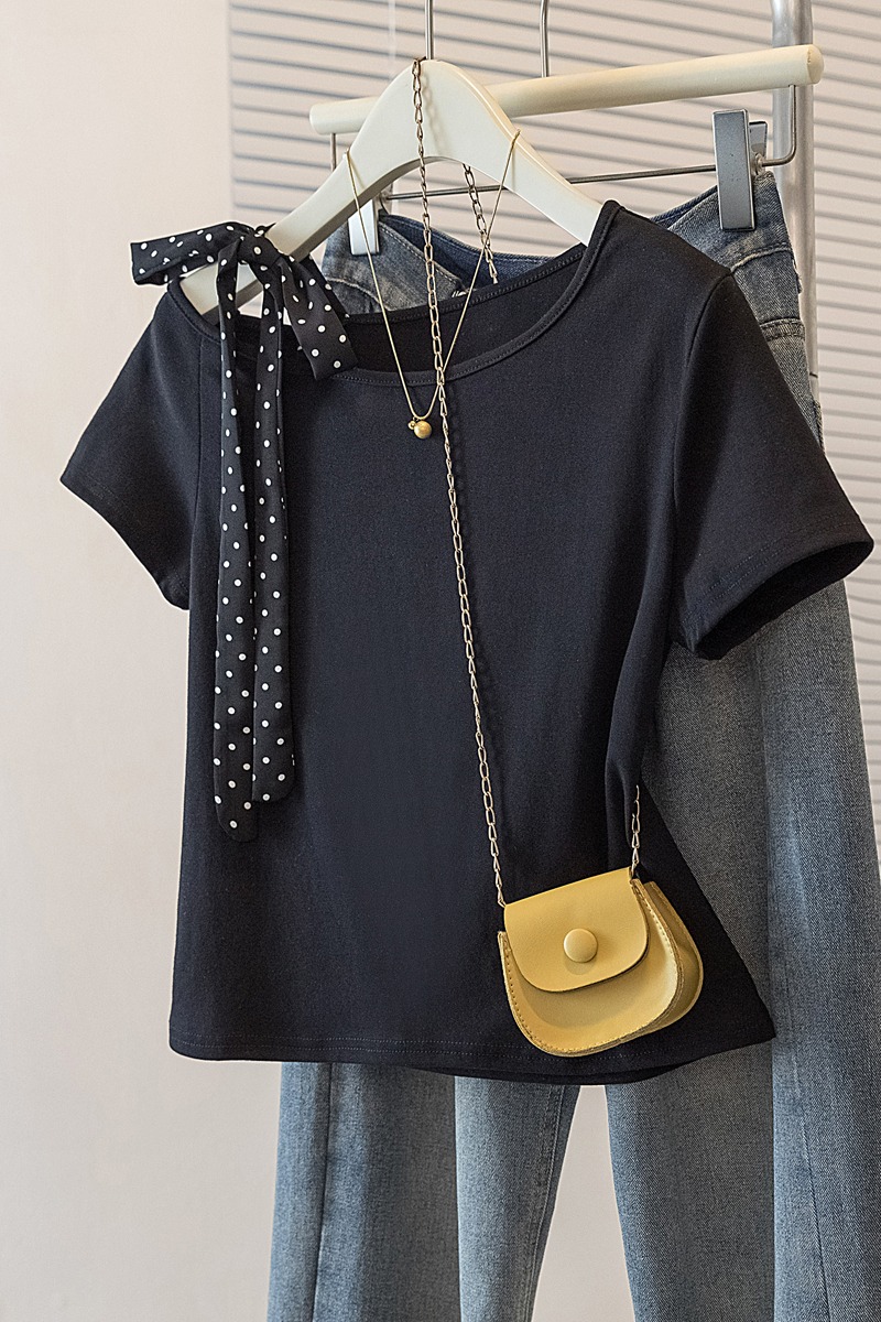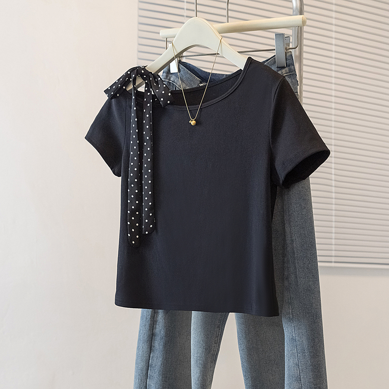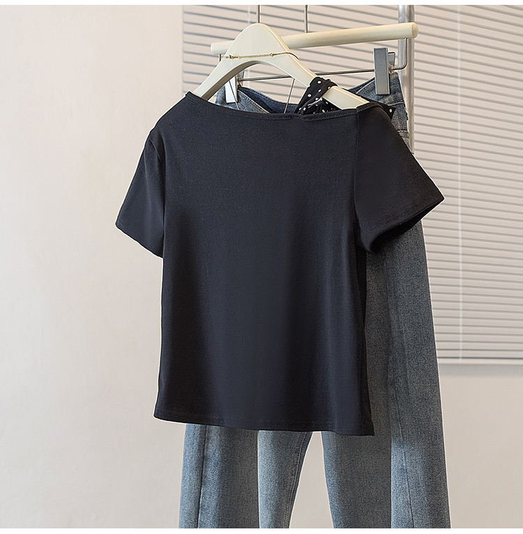 RY2556# 实拍独特漂亮黑色短袖T恤女夏季新款法式设计感小众时尚气质上衣