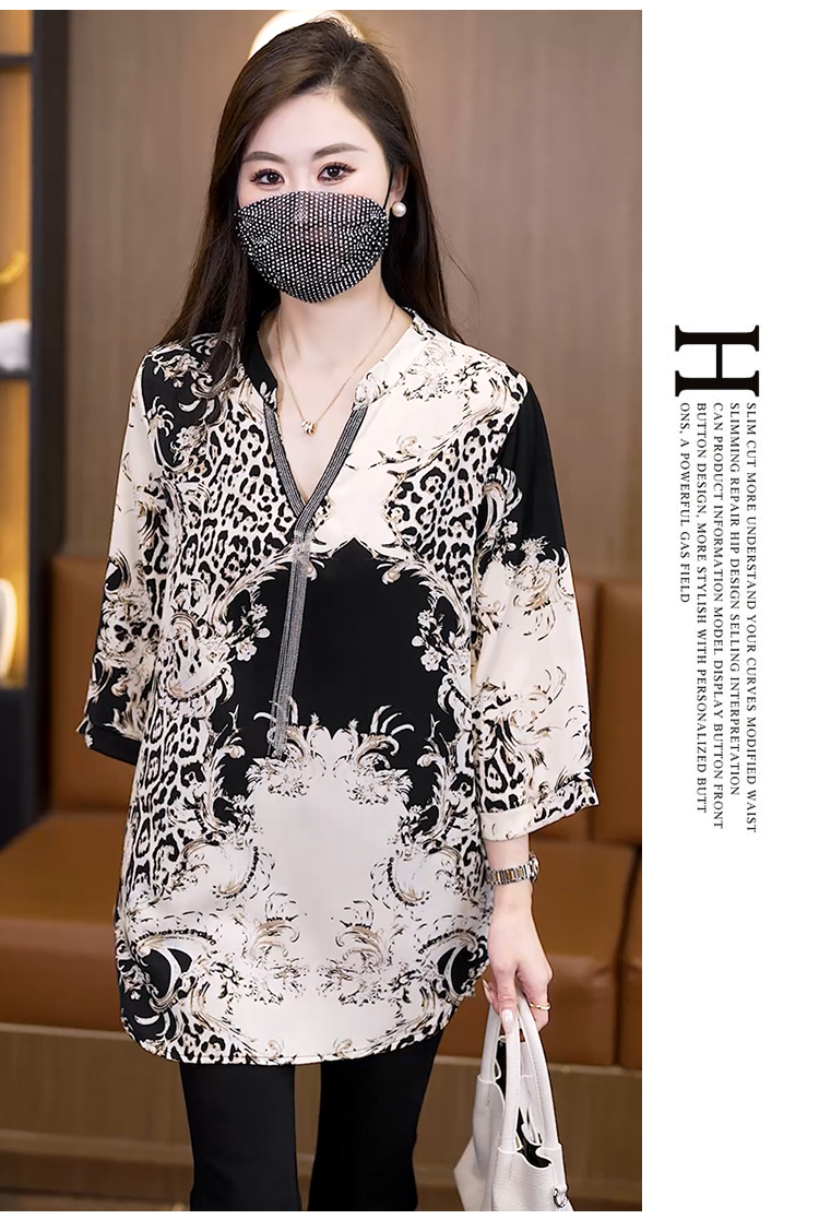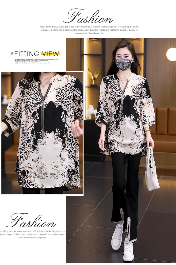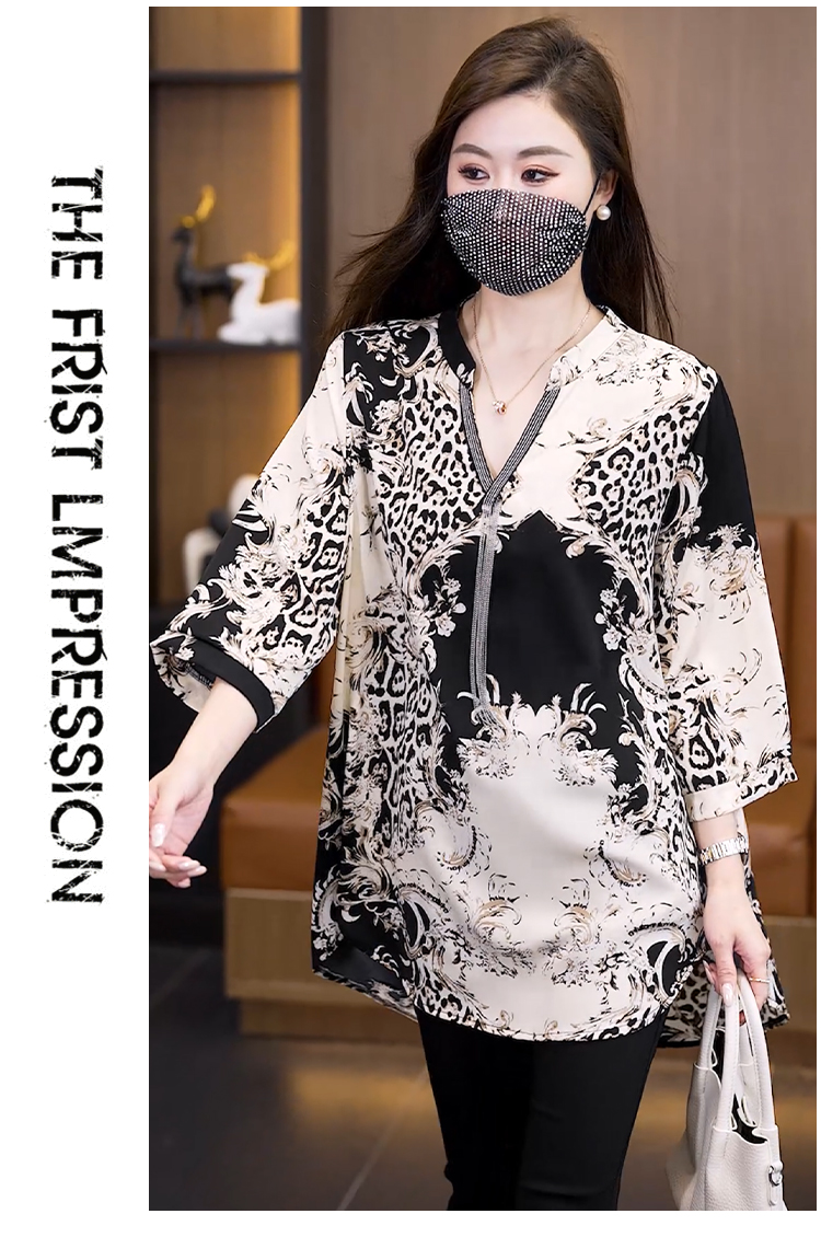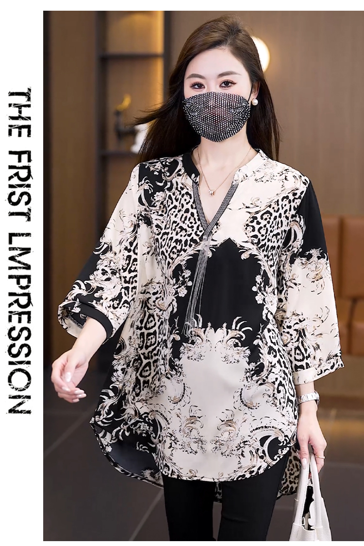 RY2568# 实拍大码女装2026新款宽松遮肚雪纺打底衫中长款喇叭袖印花...