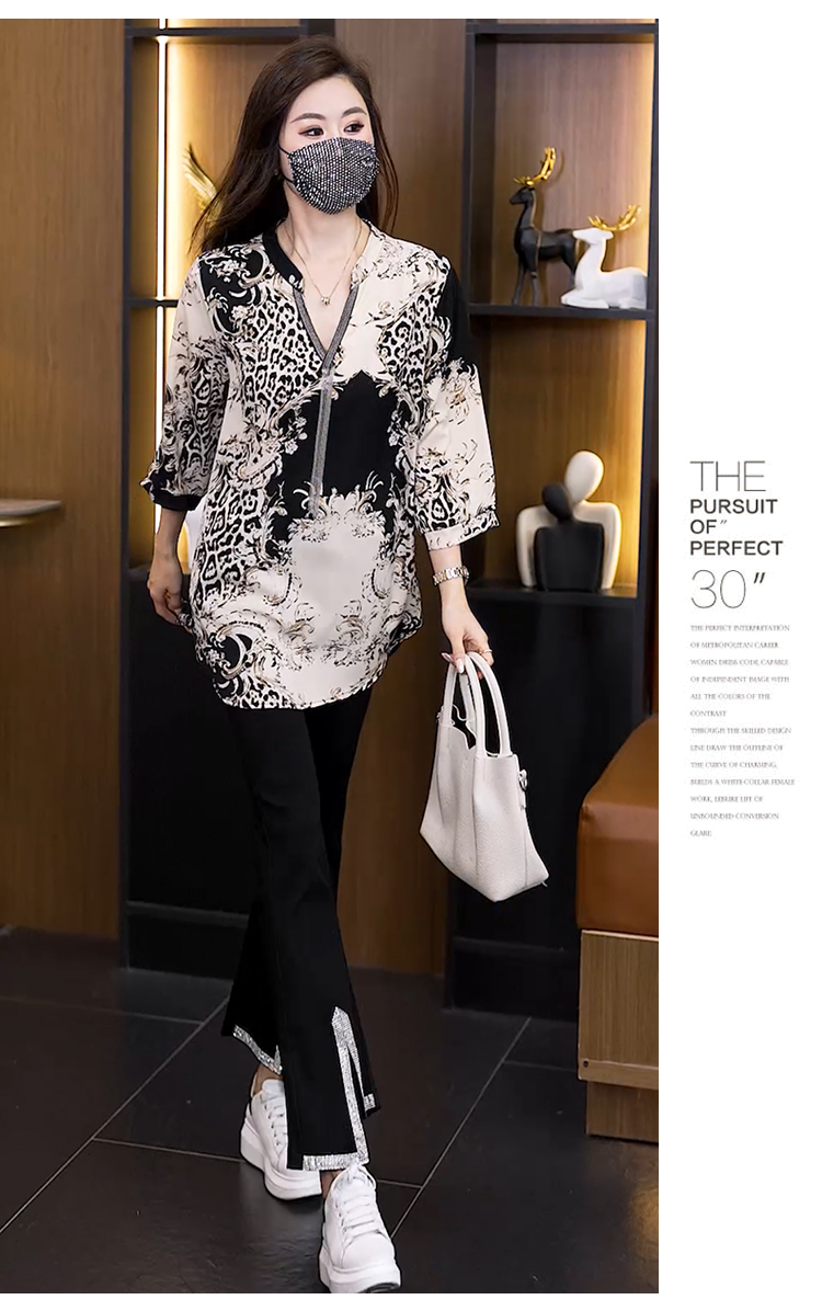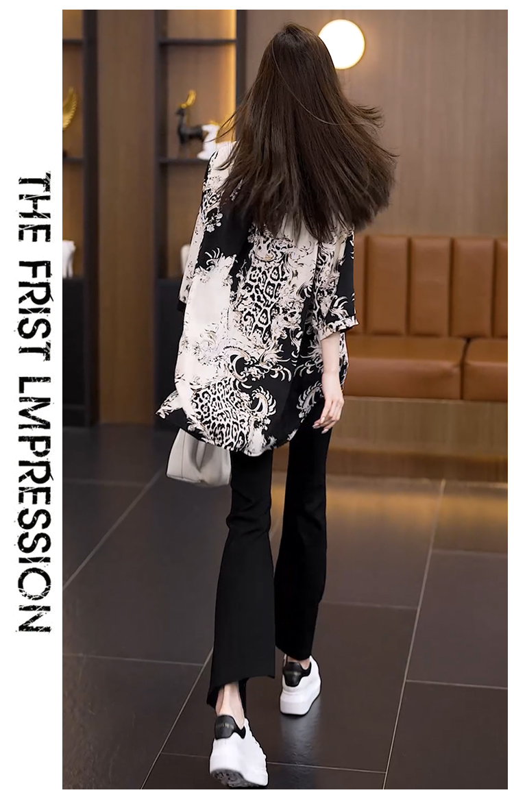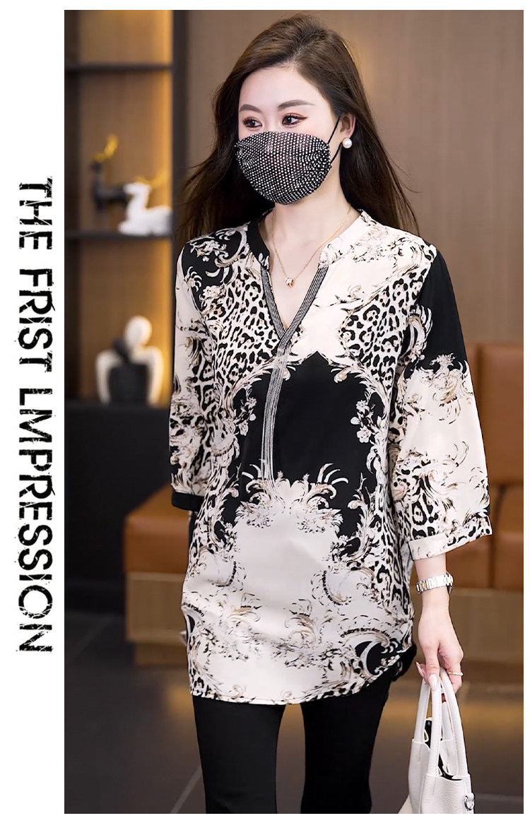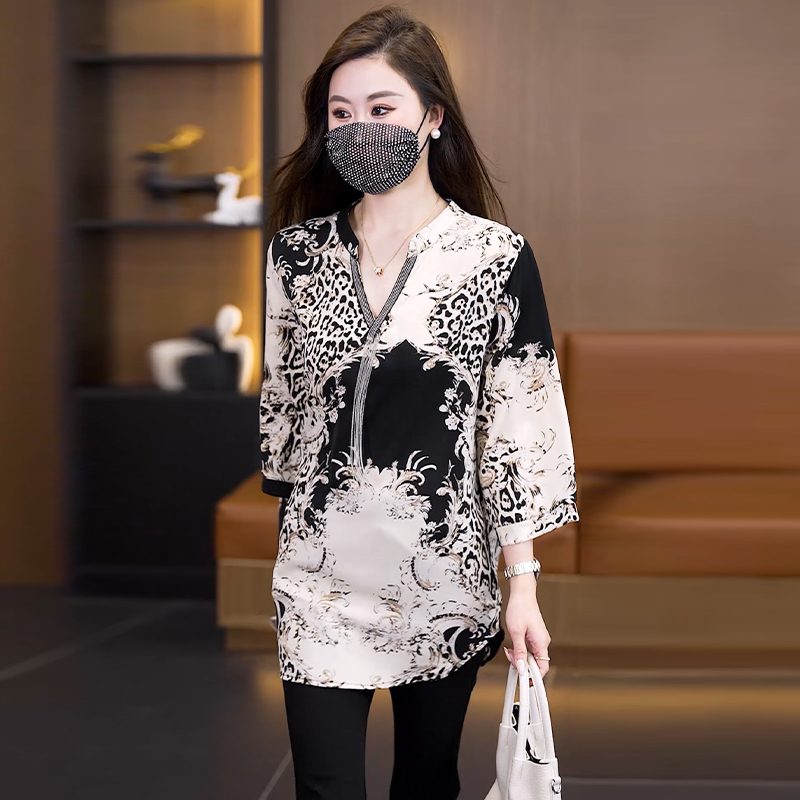 RY2568# 实拍大码女装2026新款宽松遮肚雪纺打底衫中长款喇叭袖印花...