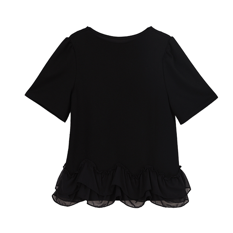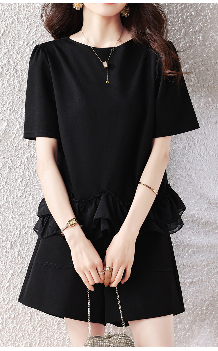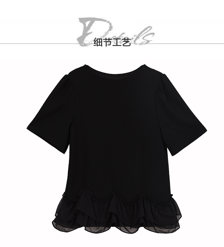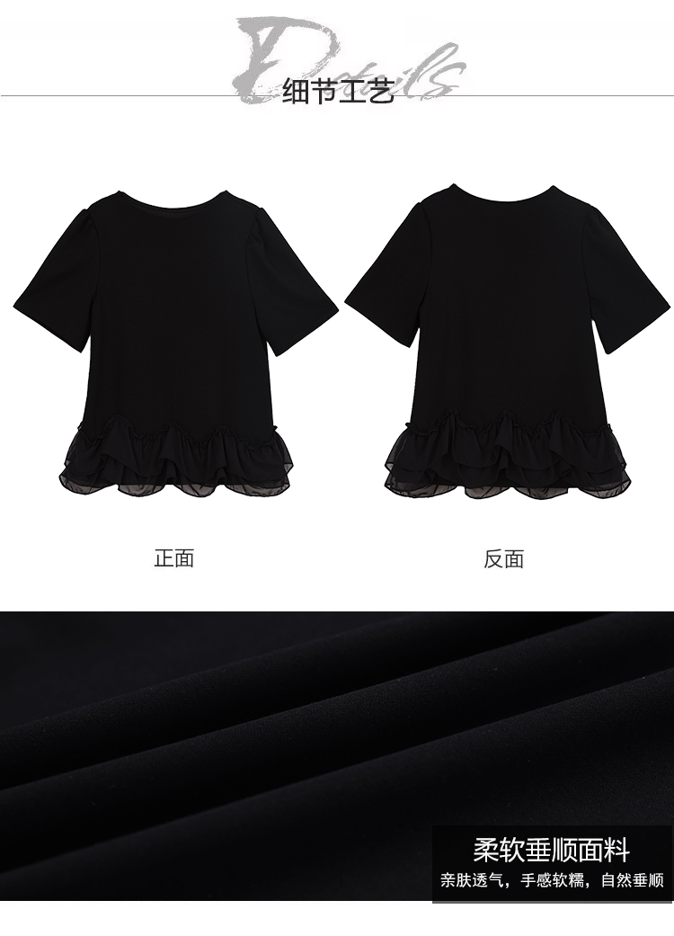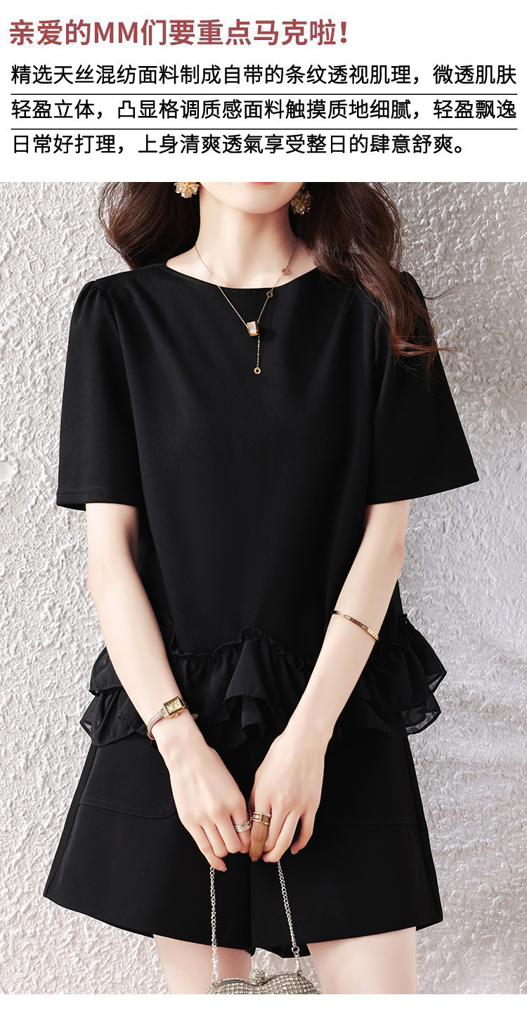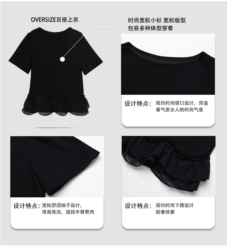 RY2567# 实拍大码女装2026夏新款宽松遮肚荷叶边T恤圆领短袖显瘦打底上衣