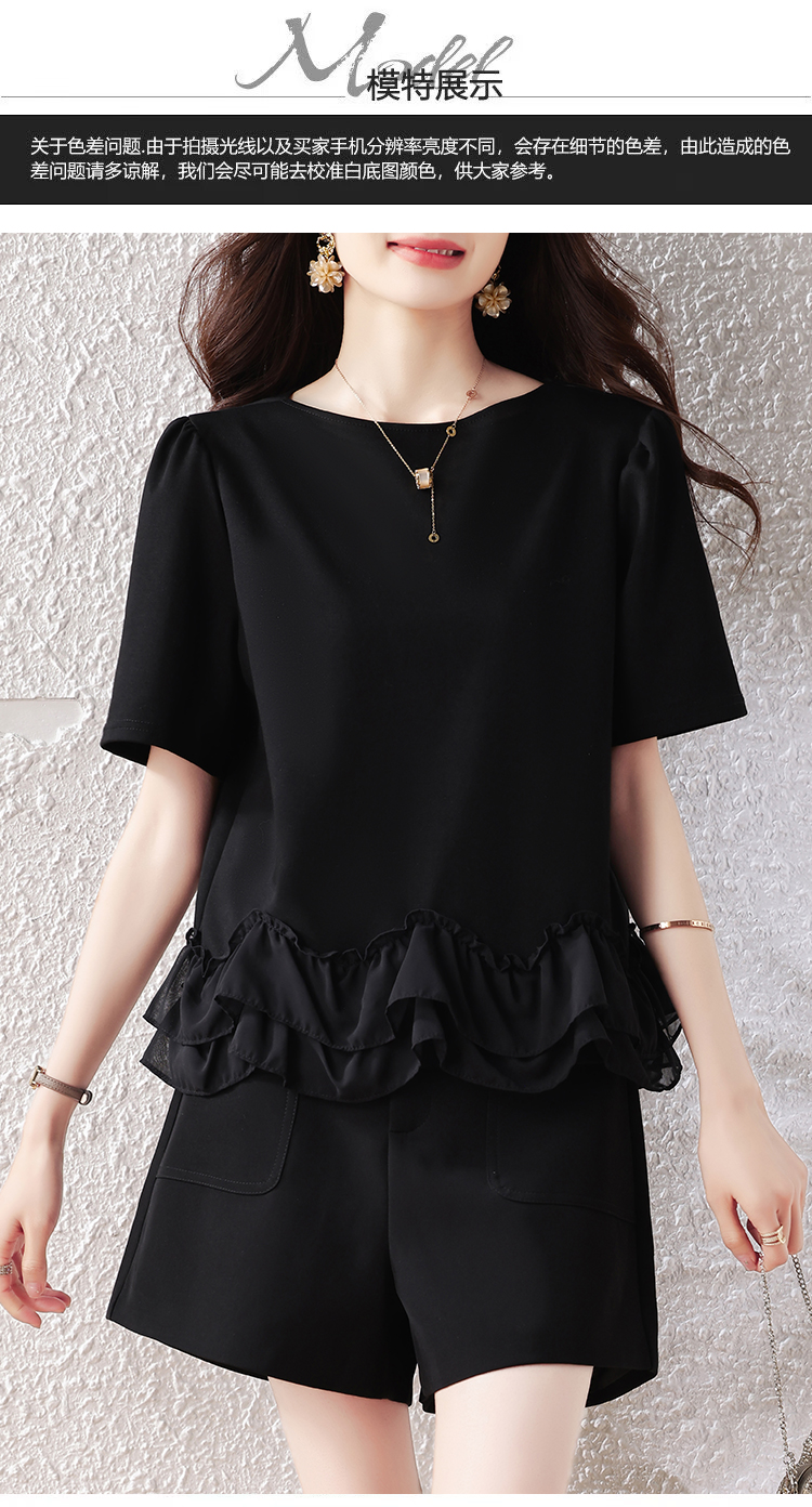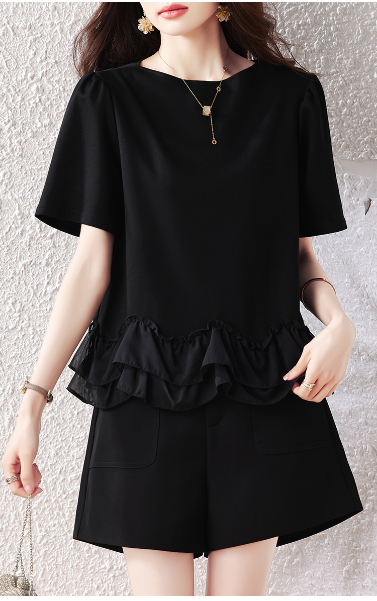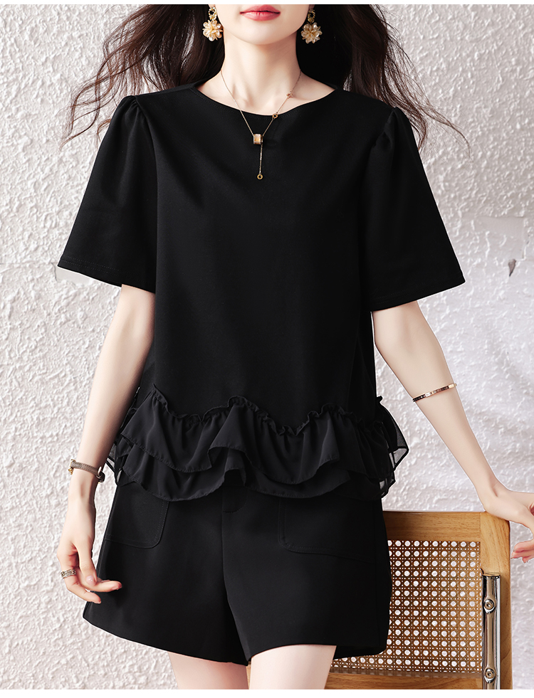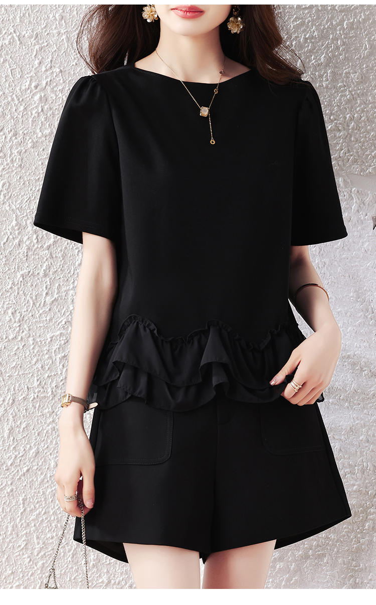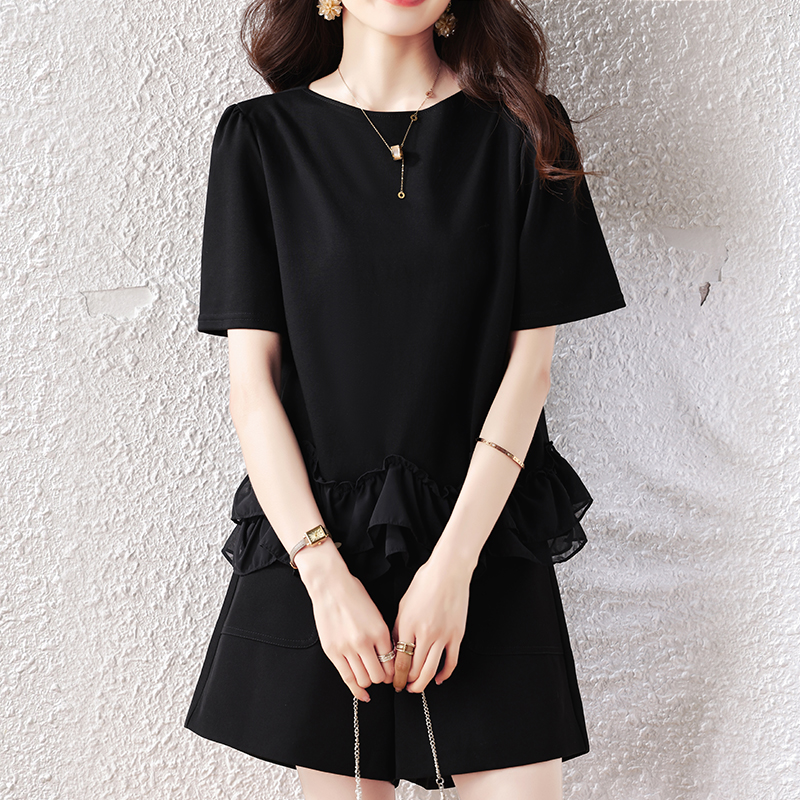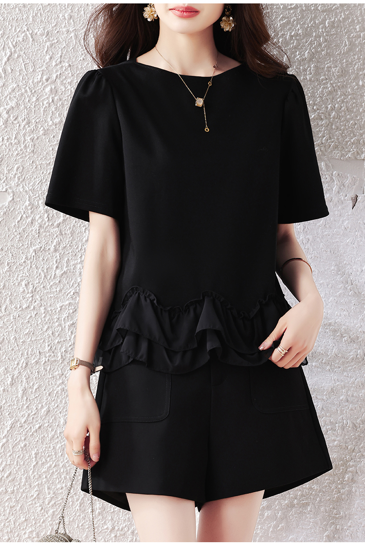 RY2567# 实拍大码女装2026夏新款宽松遮肚荷叶边T恤圆领短袖显瘦打底上衣