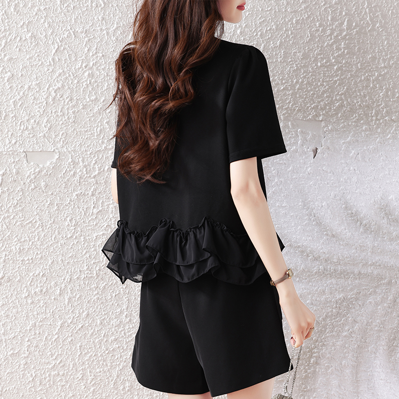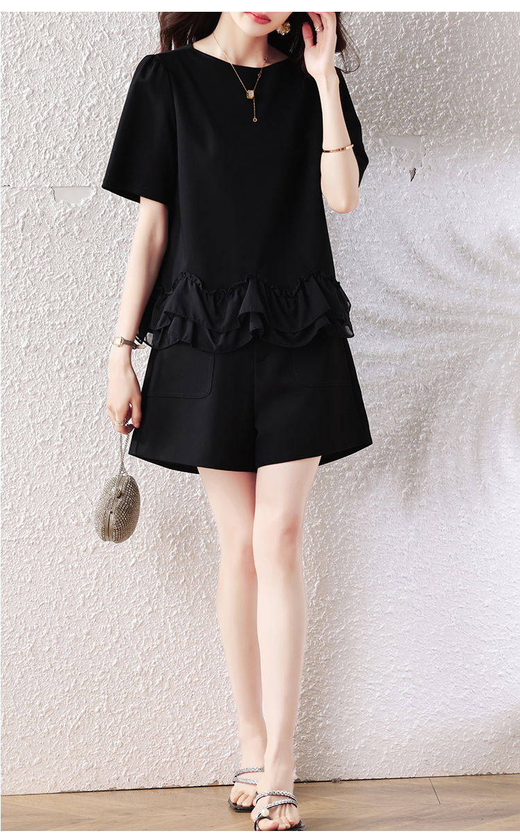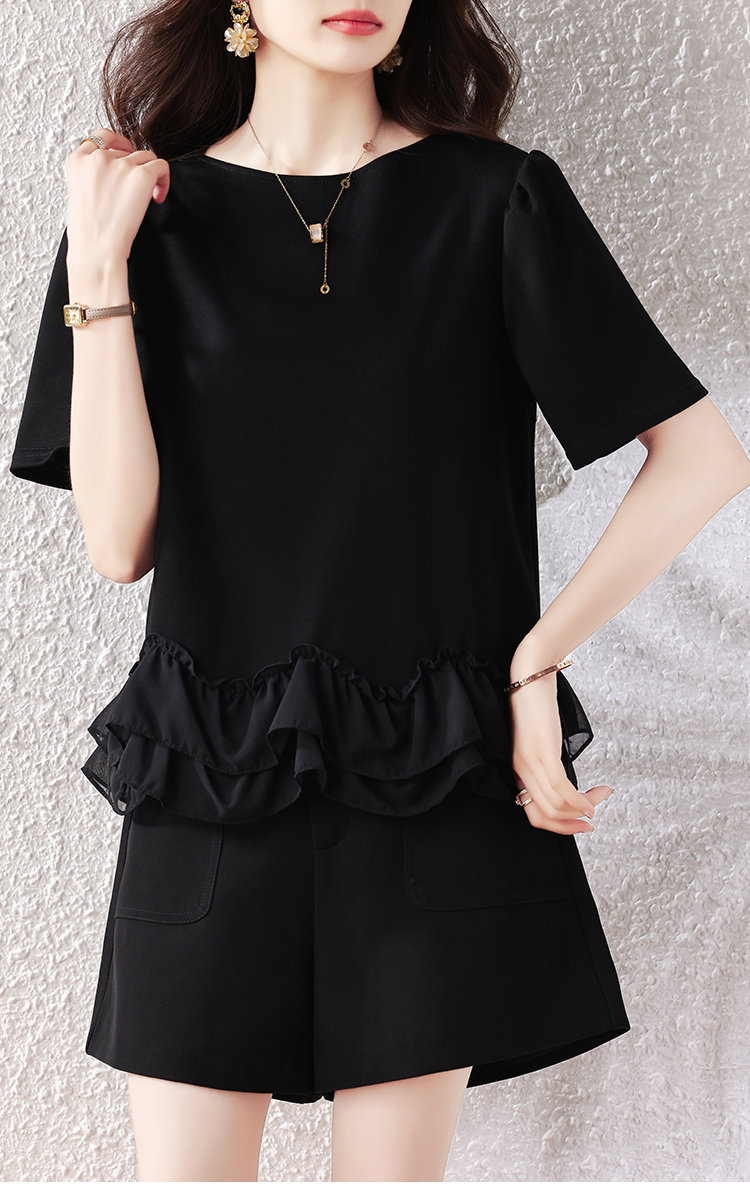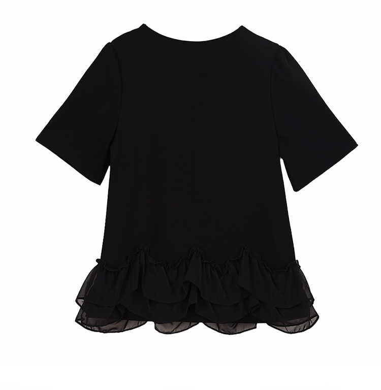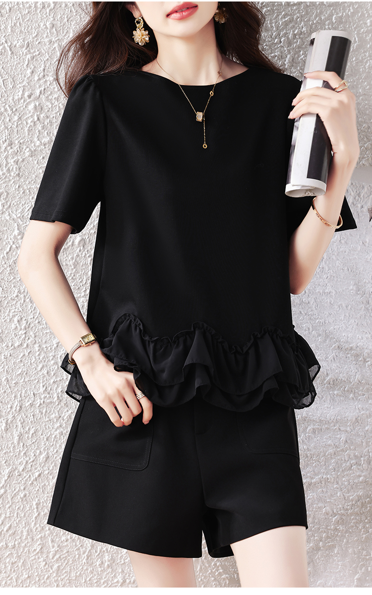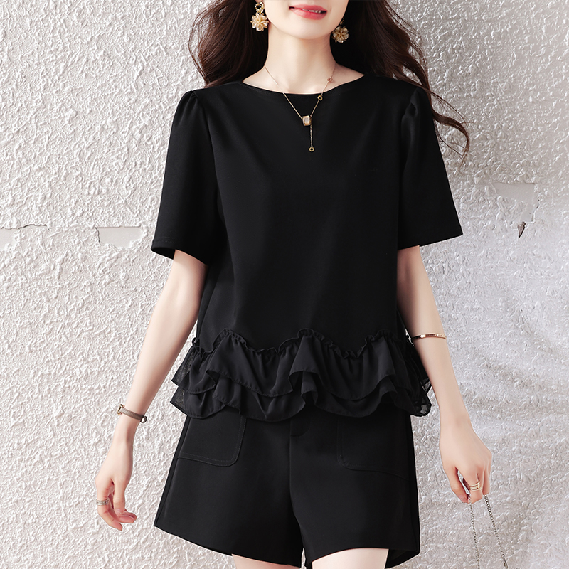 RY2567# 实拍大码女装2026夏新款宽松遮肚荷叶边T恤圆领短袖显瘦打底上衣