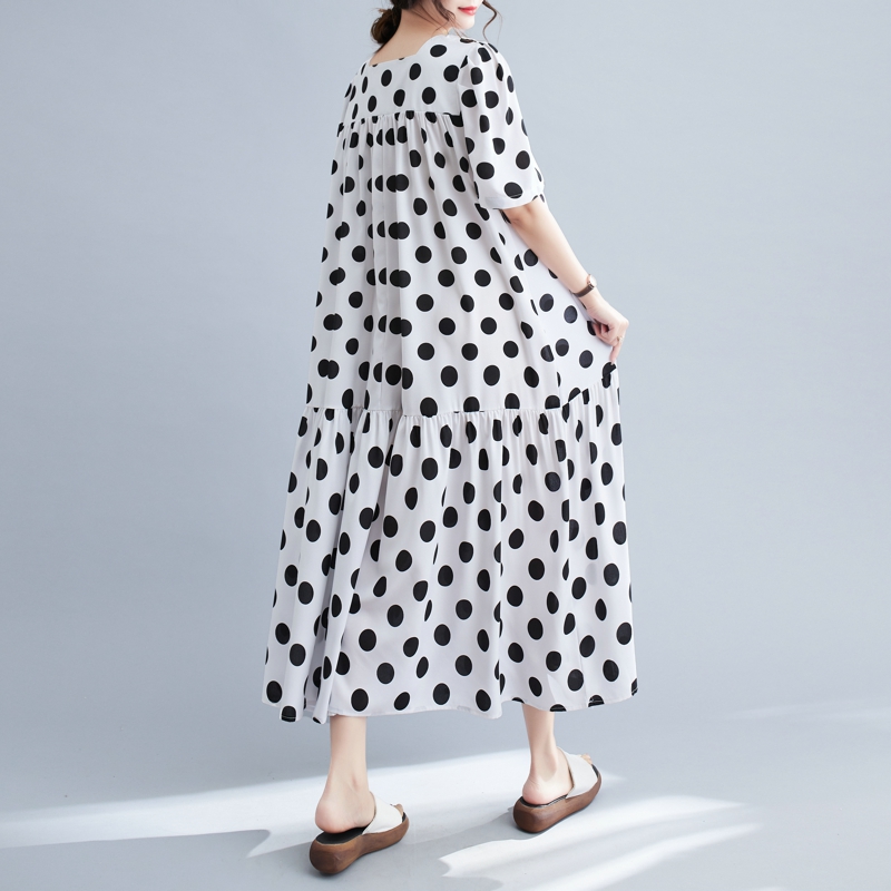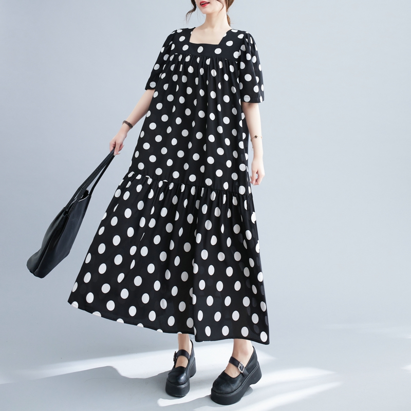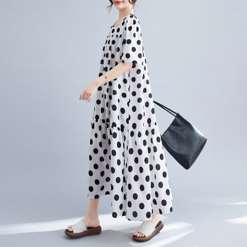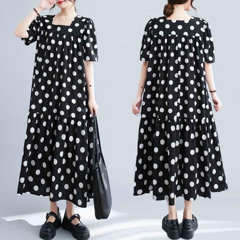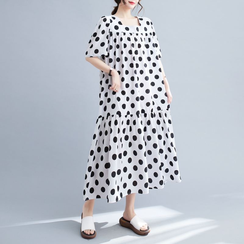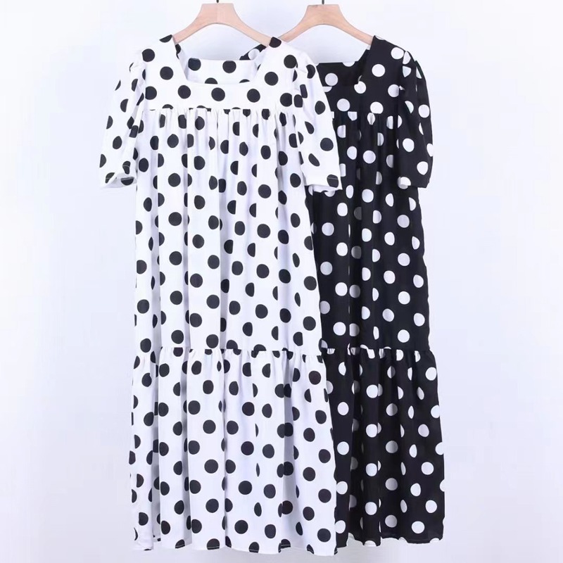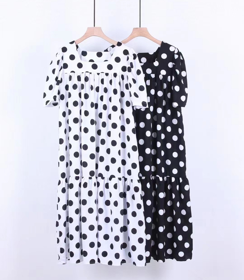 RY2588# 实拍胖mm宽松大码波点连衣裙女