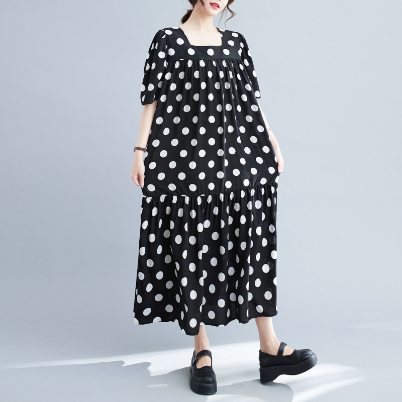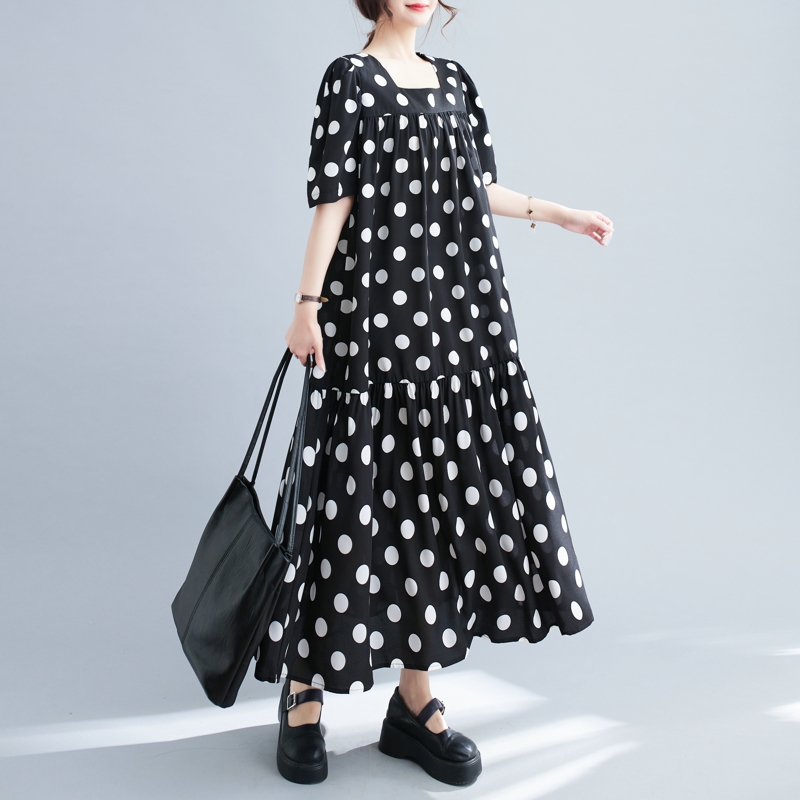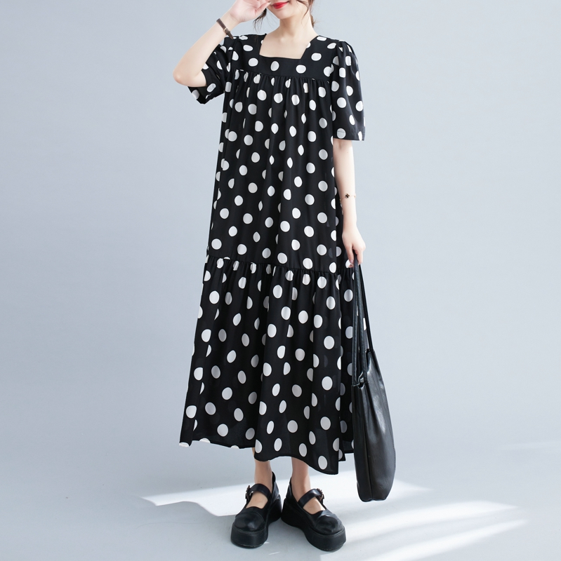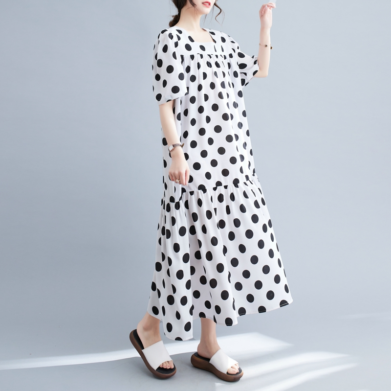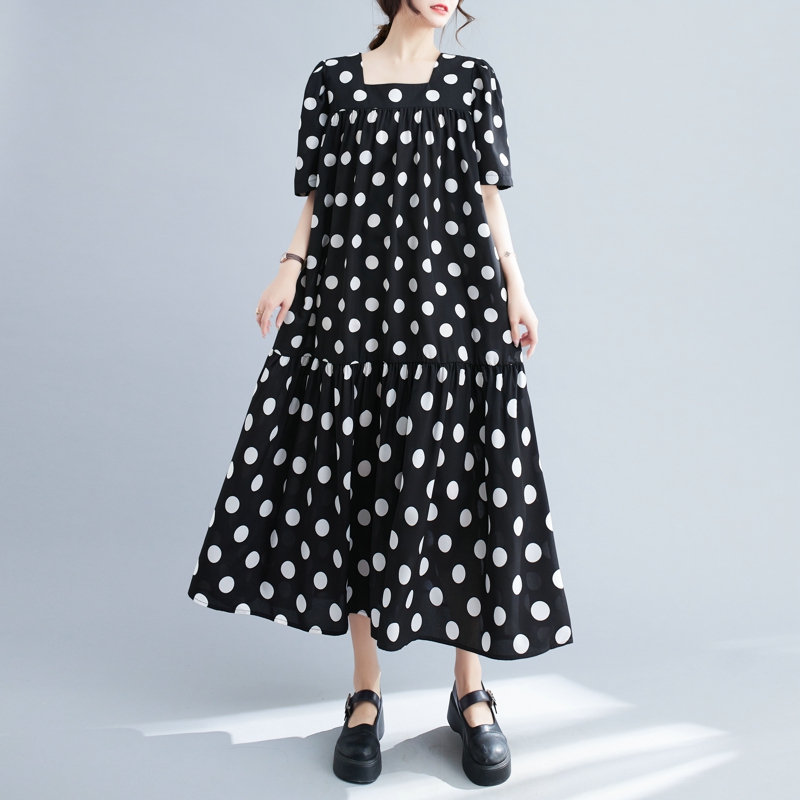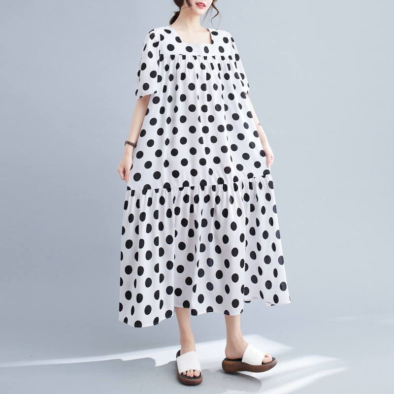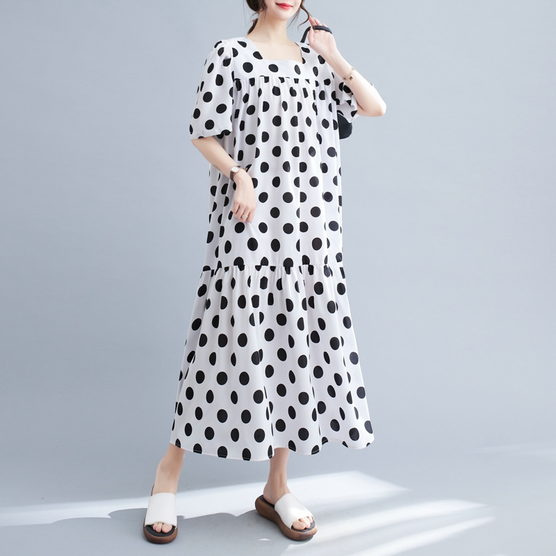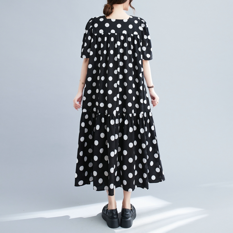 RY2588# 实拍胖mm宽松大码波点连衣裙女