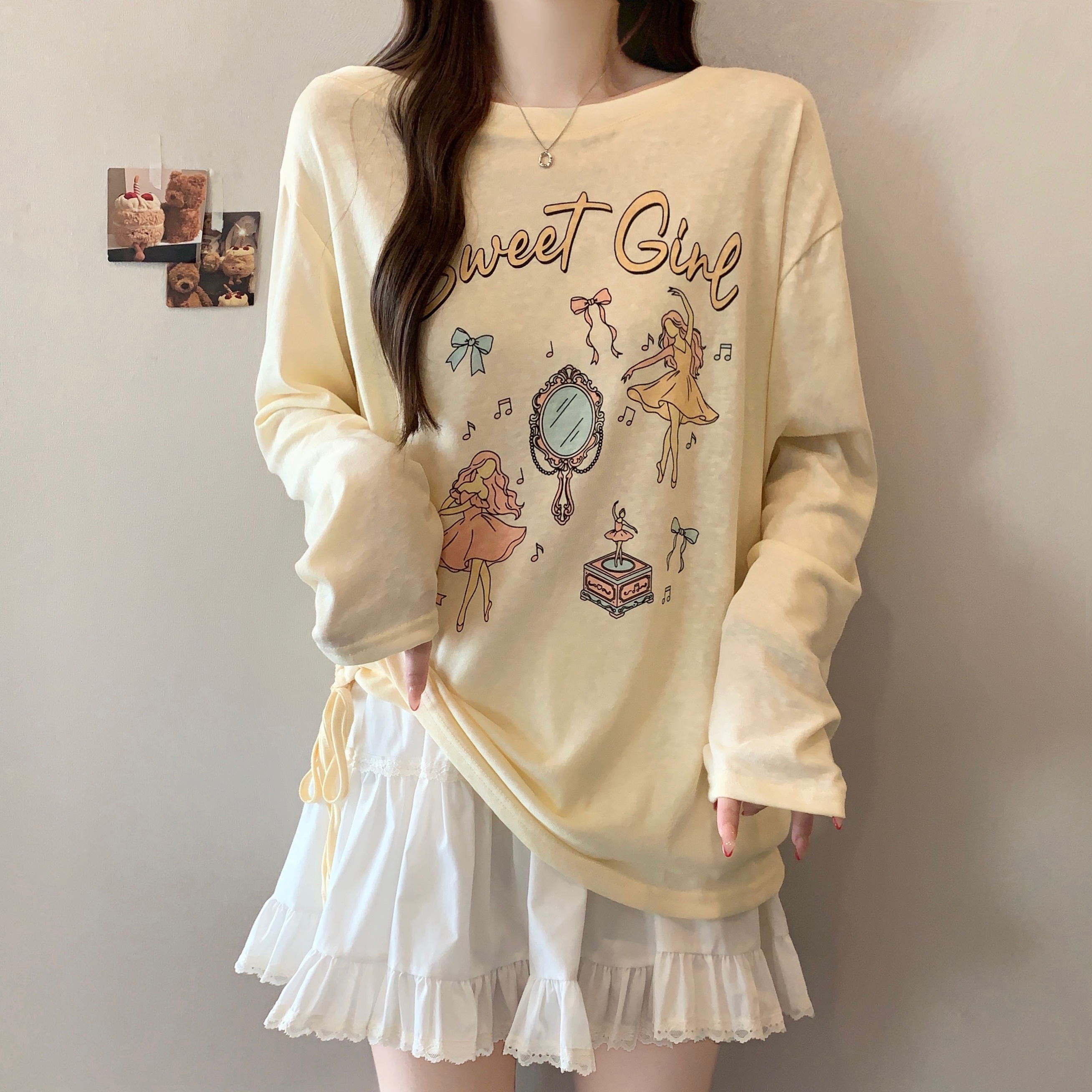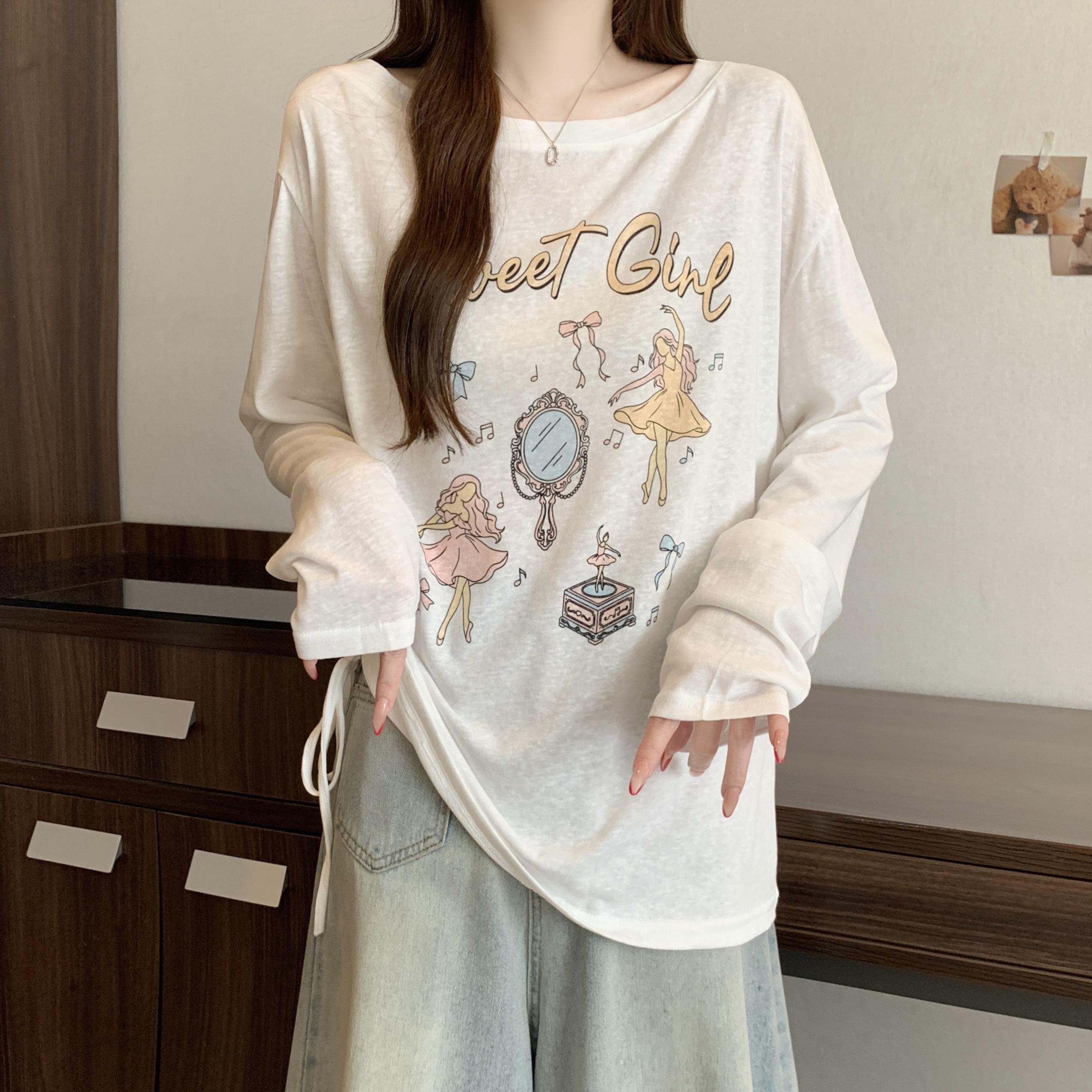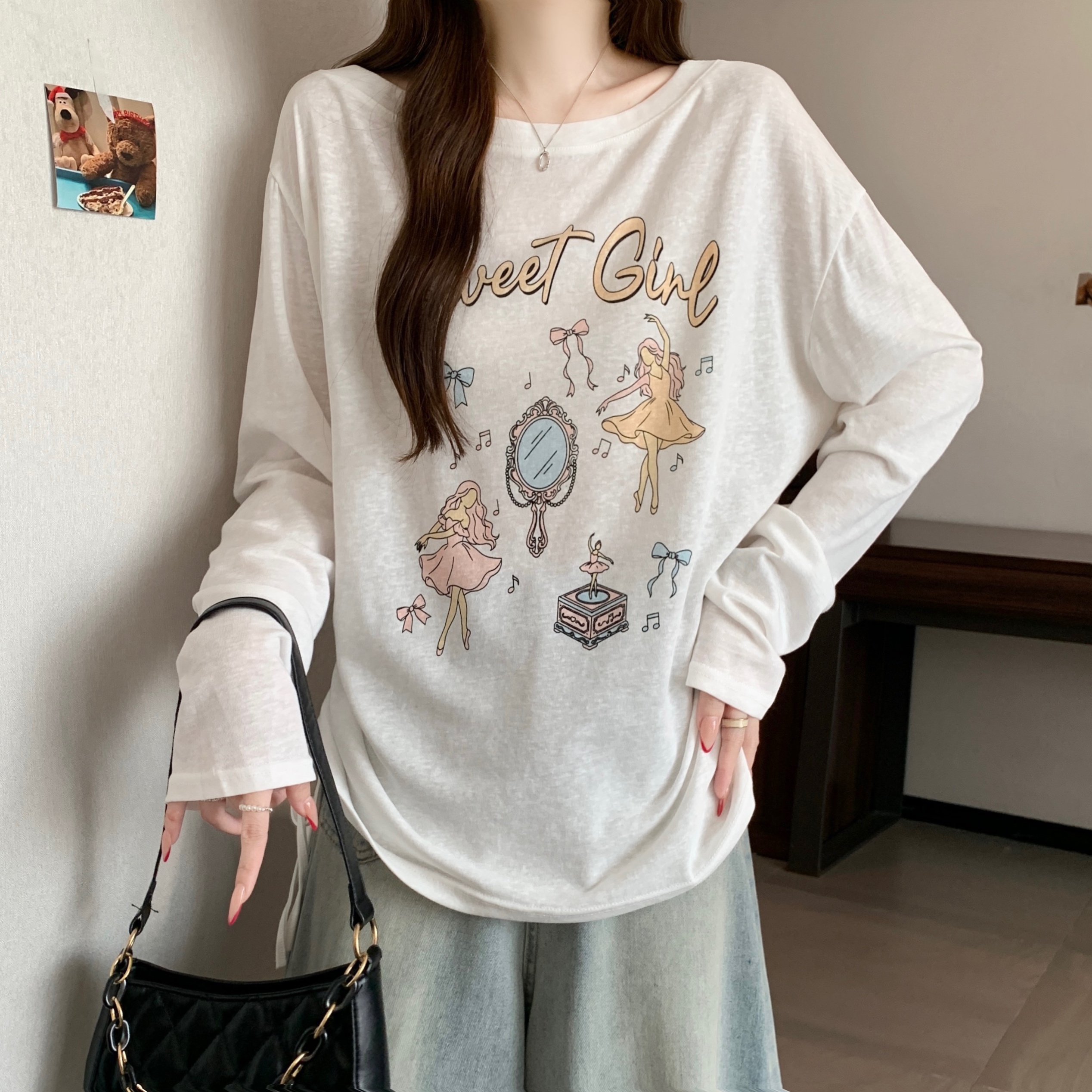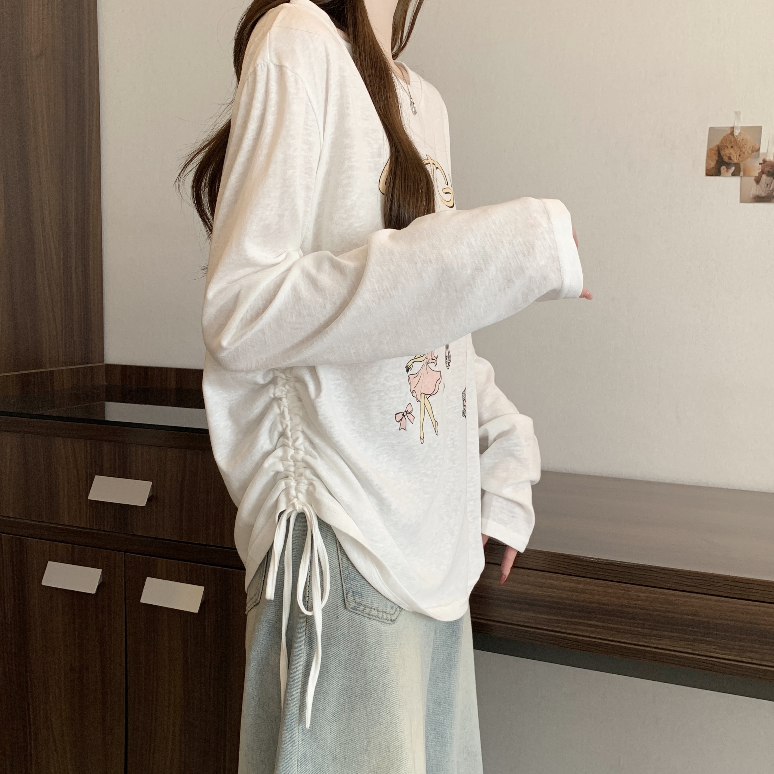 RY2606# 实拍2026韩系卡通薄款罩衫女春夏新款宽松休闲圆领长袖防晒衫上衣