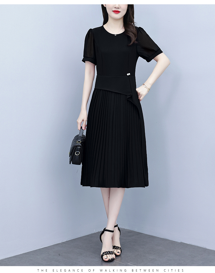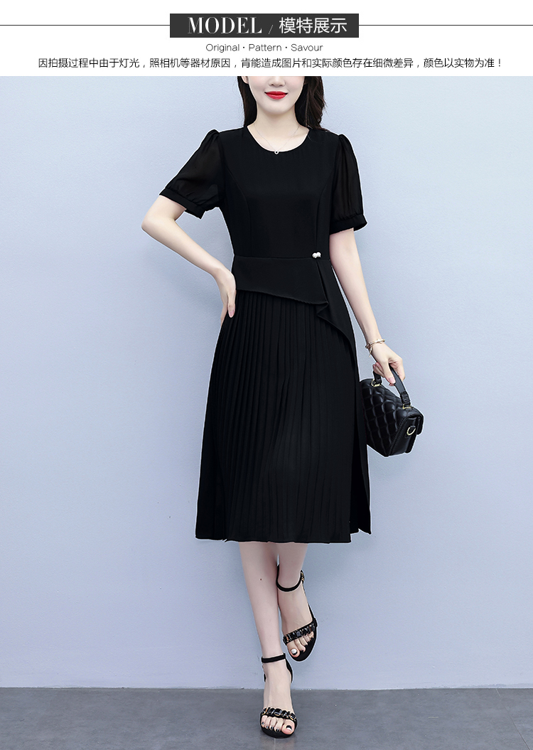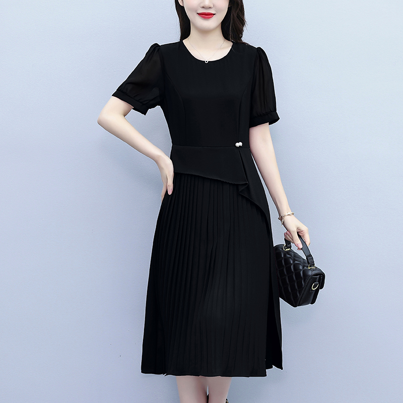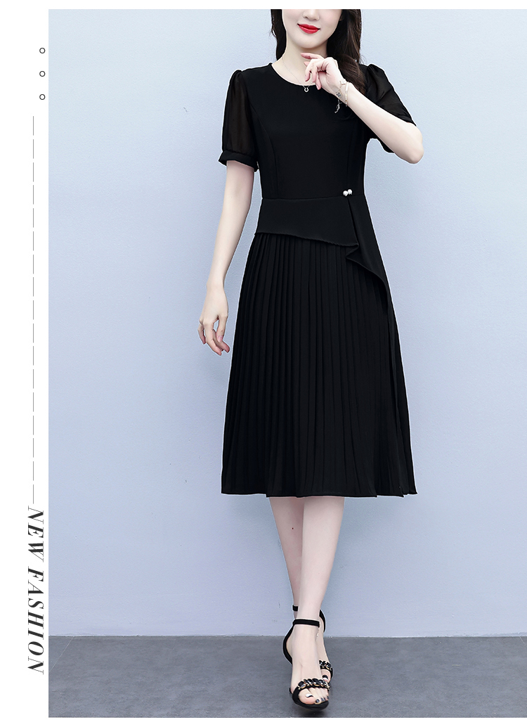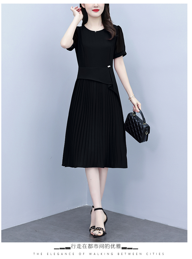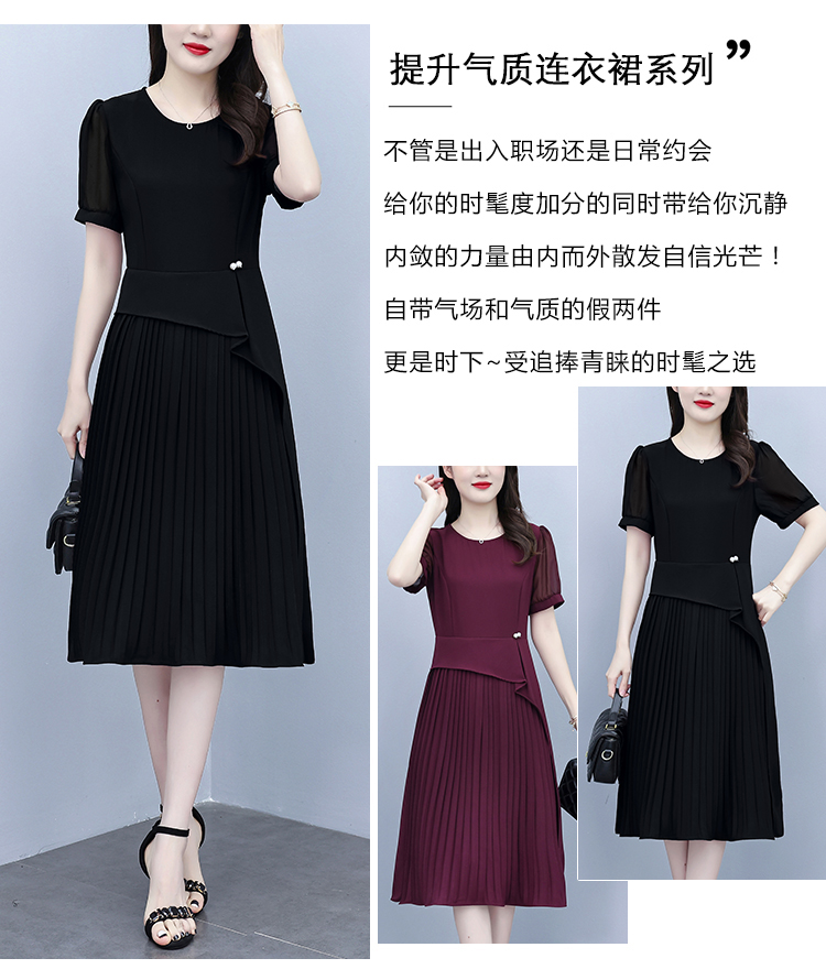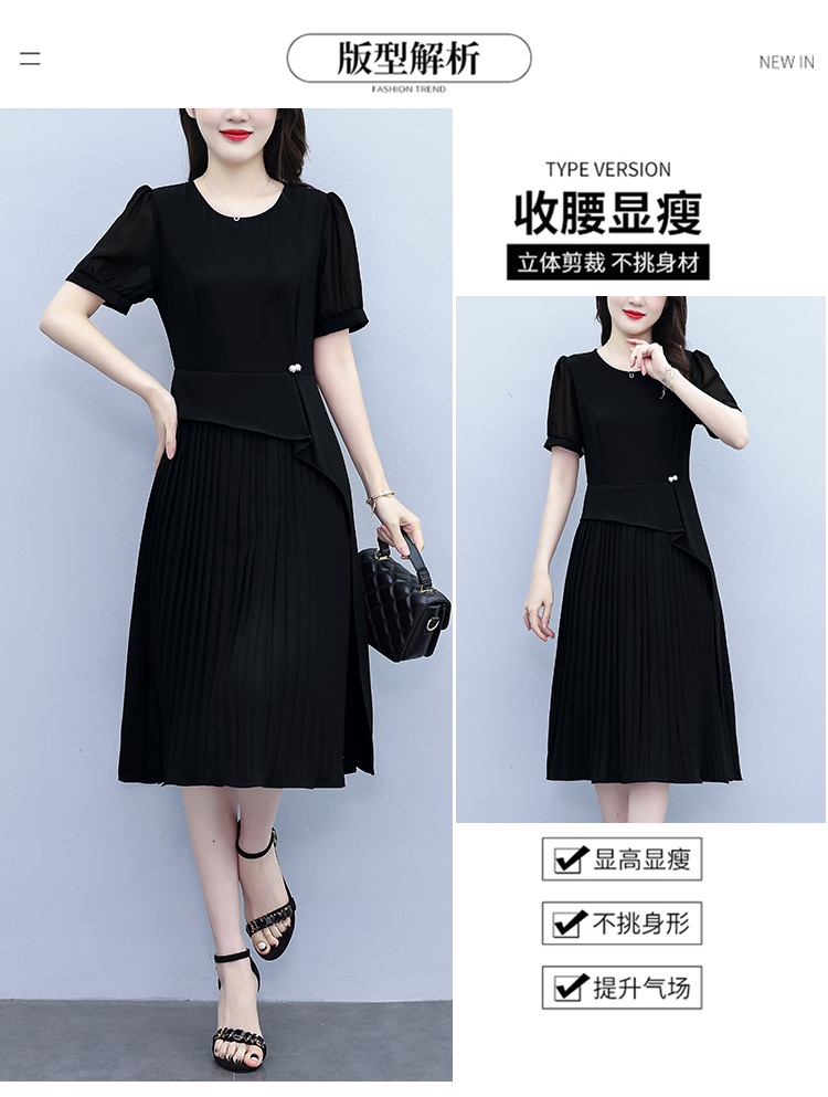 RY2607# 2026夏季新品高端大码显瘦遮肉压褶气质时尚百搭女装连衣裙A字裙