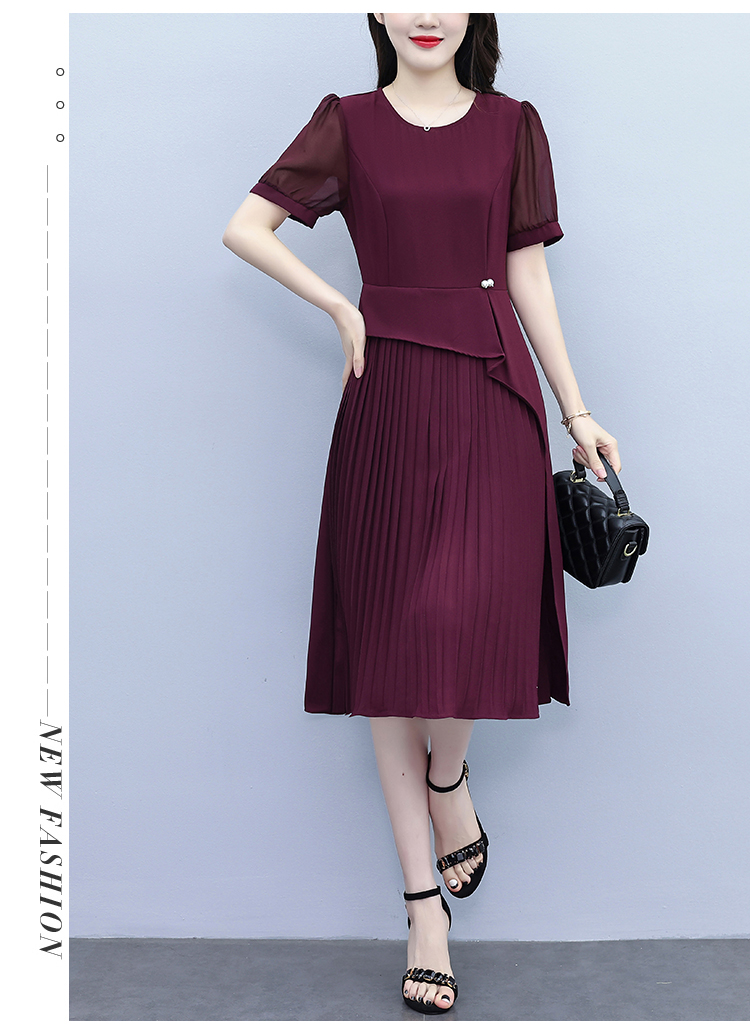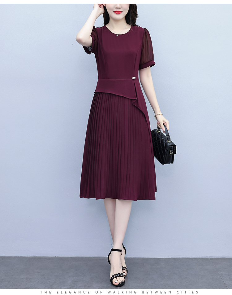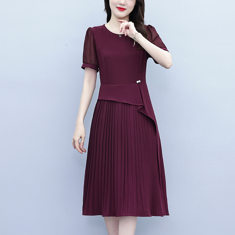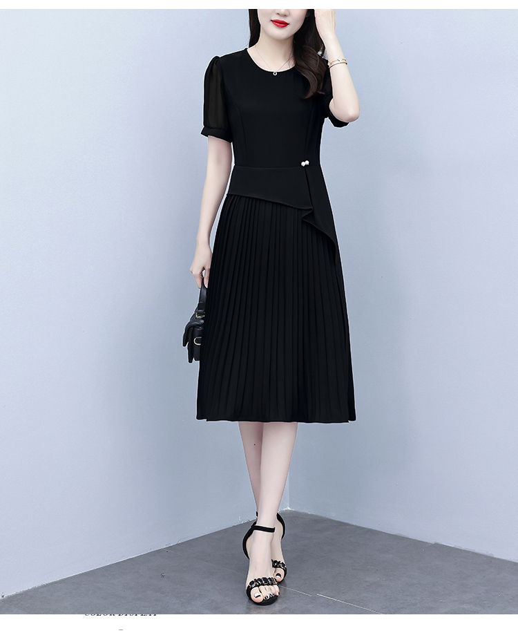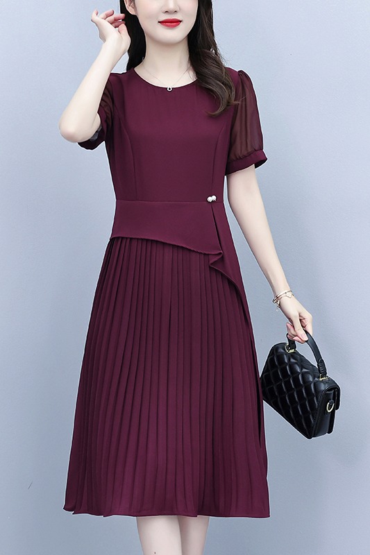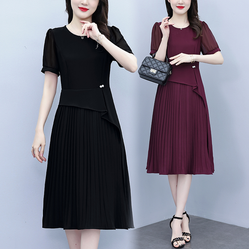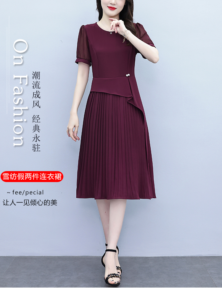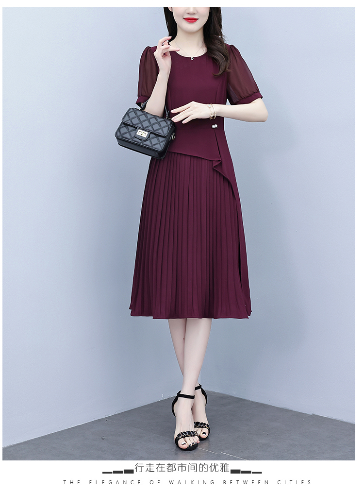 RY2607# 2026夏季新品高端大码显瘦遮肉压褶气质时尚百搭女装连衣裙A字裙