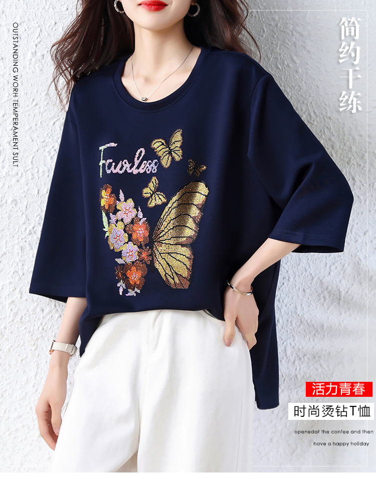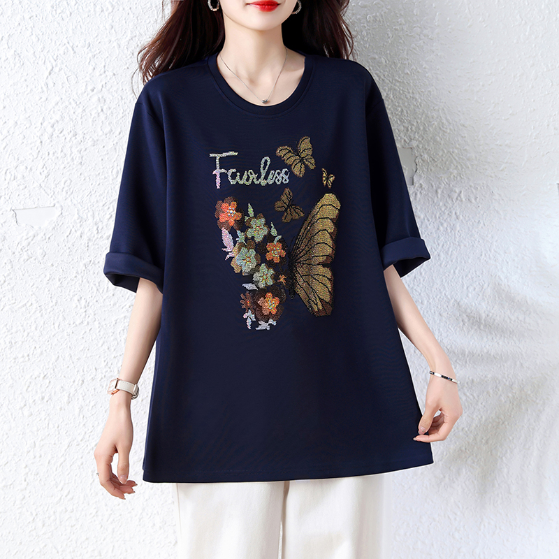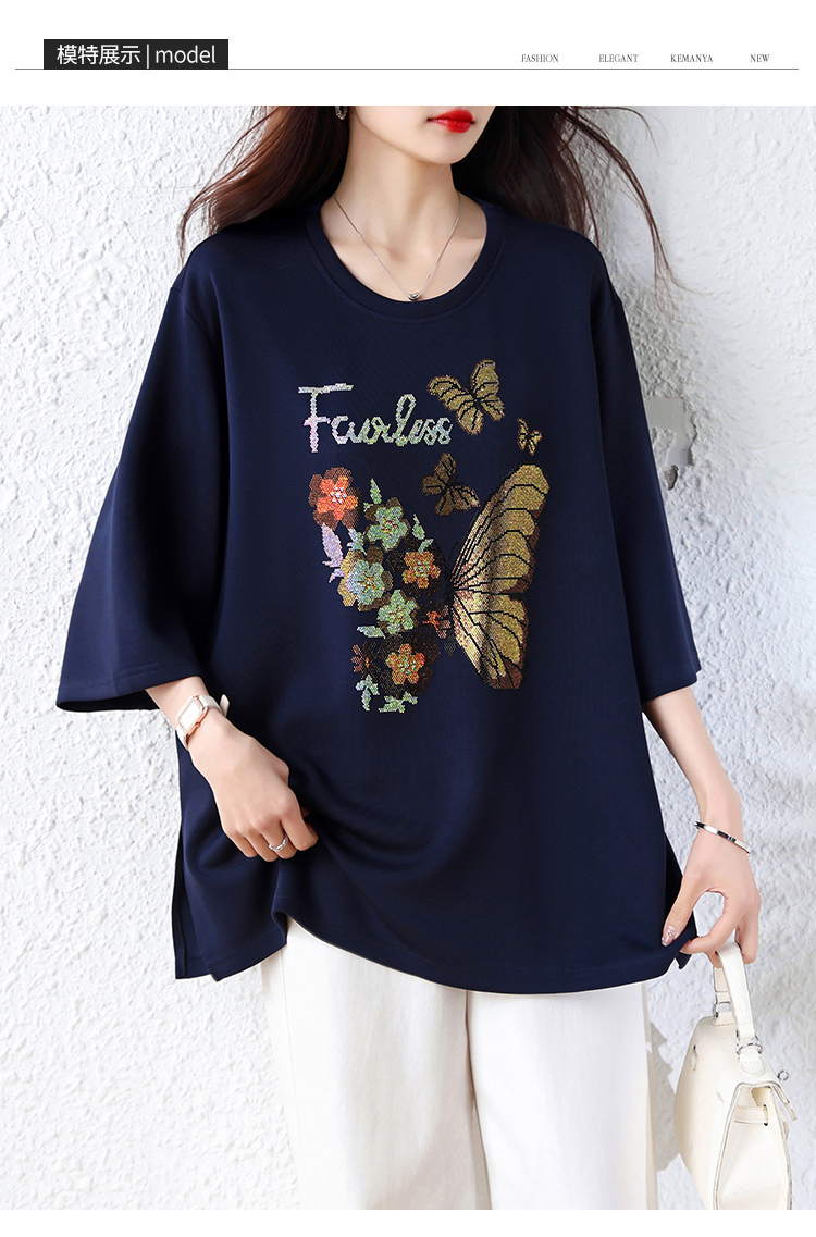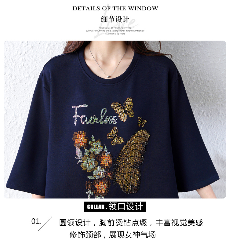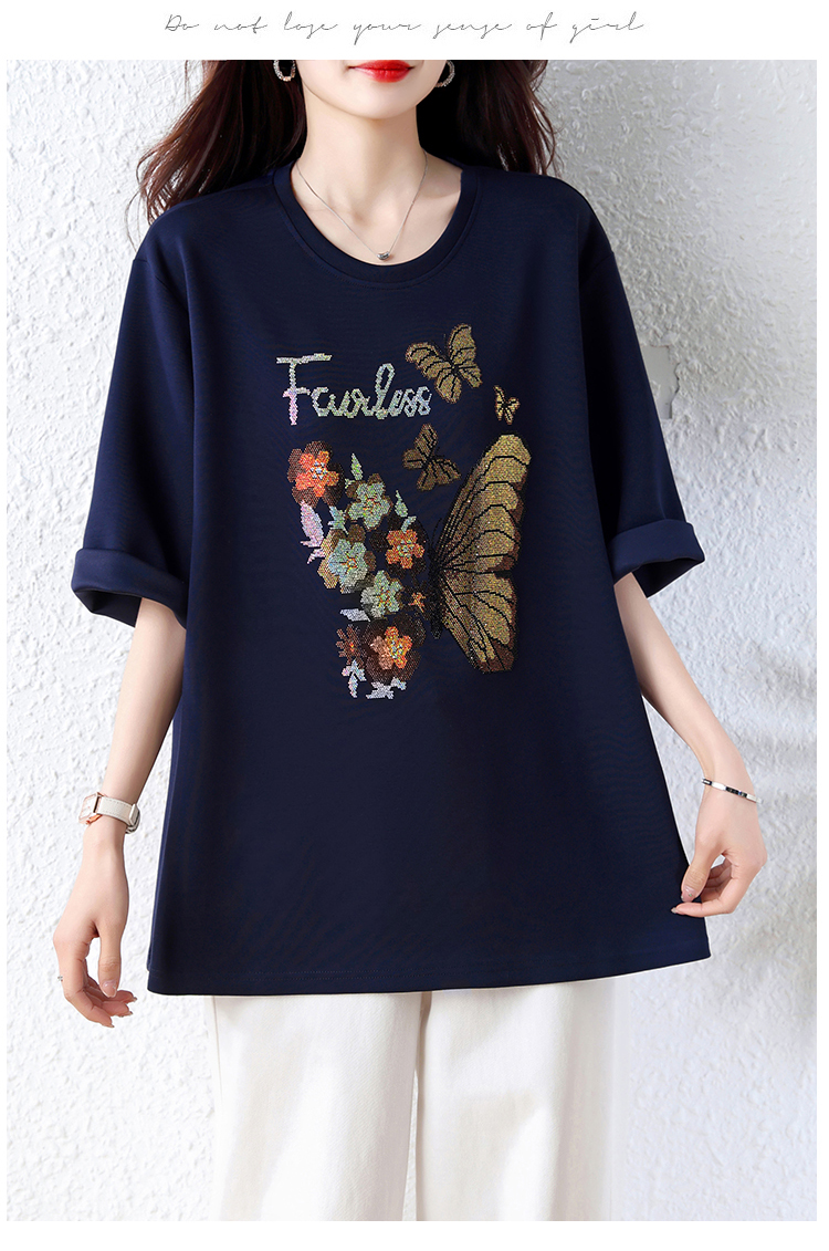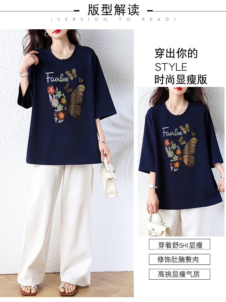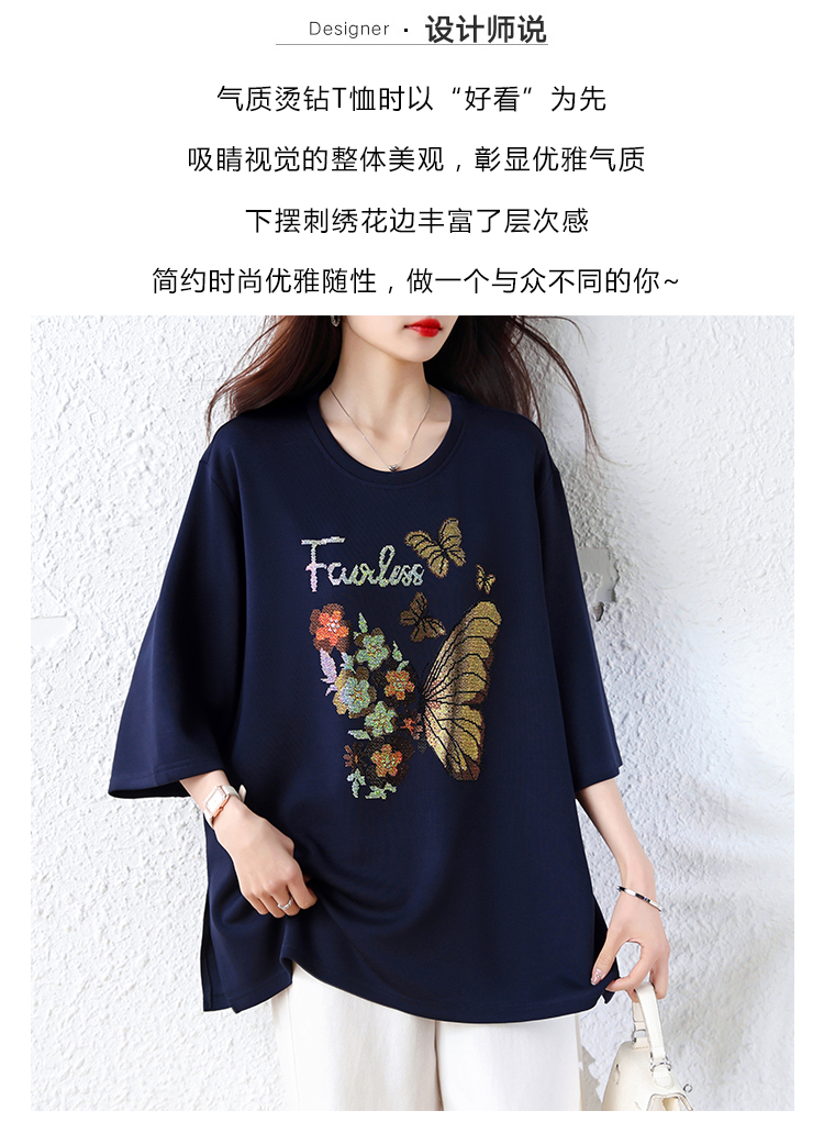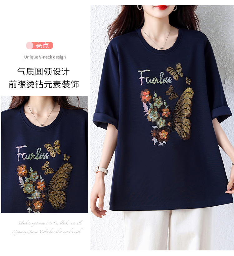 RY2610# 实拍大码女装2026夏季新款洋气圆领烫钻短袖T恤欧货新款宽松女装