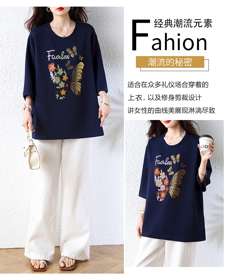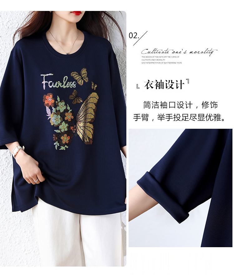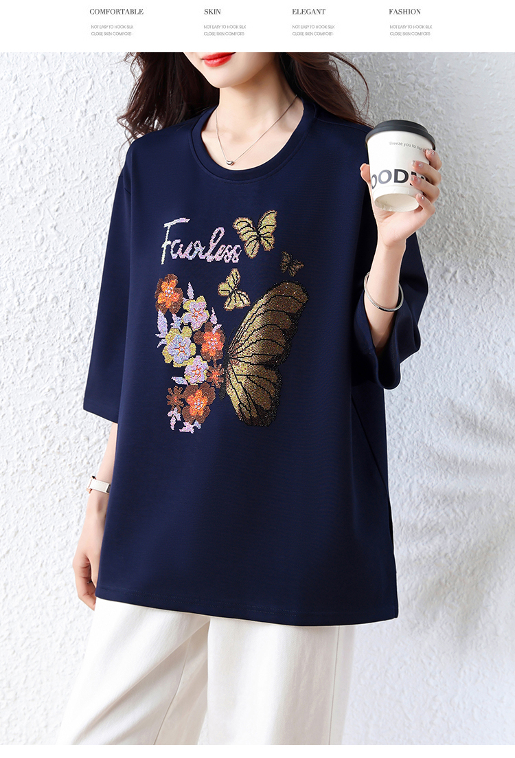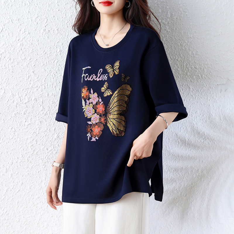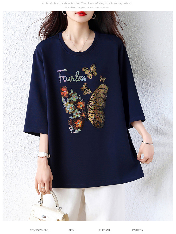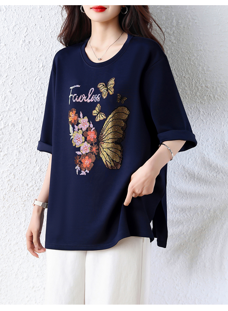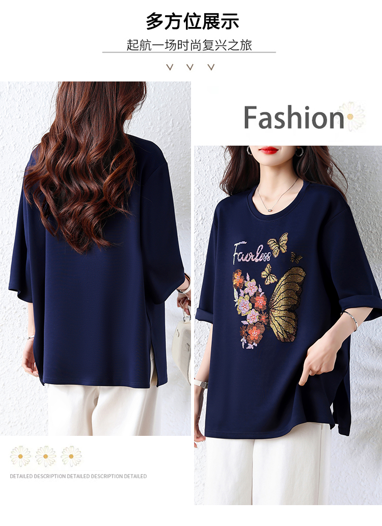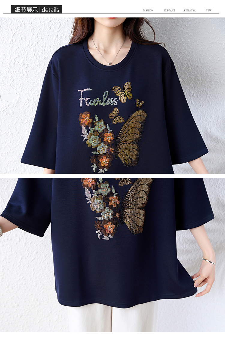 RY2610# 实拍大码女装2026夏季新款洋气圆领烫钻短袖T恤欧货新款宽松女装