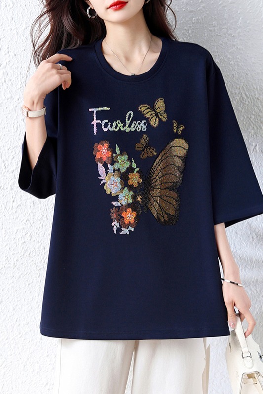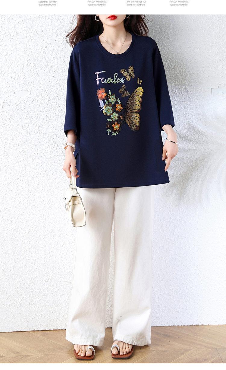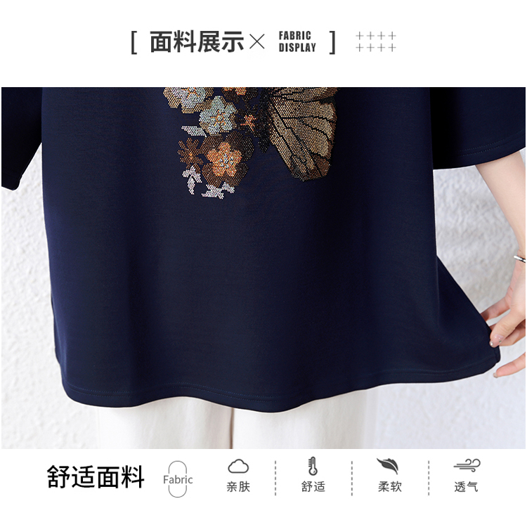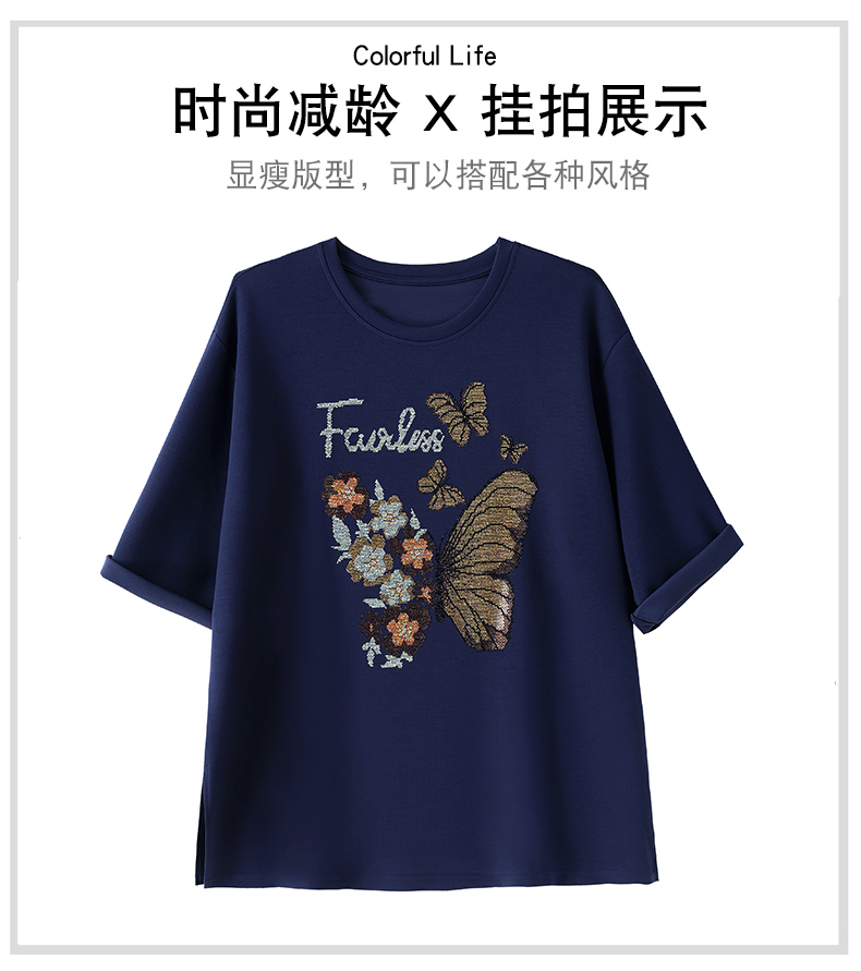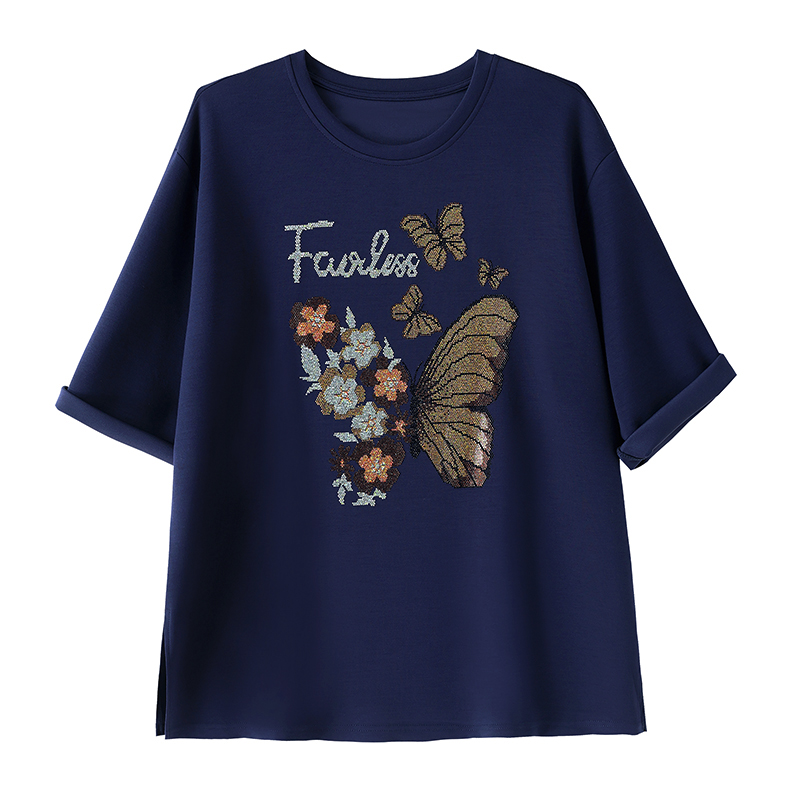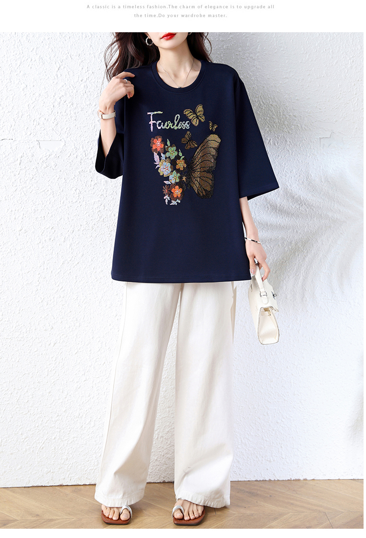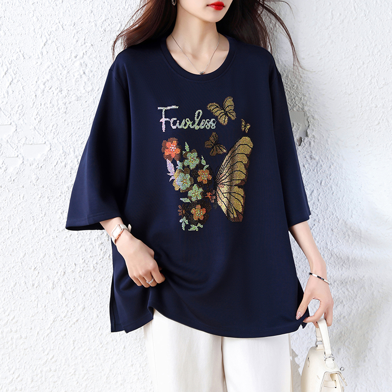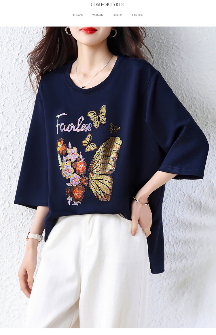 RY2610# 实拍大码女装2026夏季新款洋气圆领烫钻短袖T恤欧货新款宽松女装