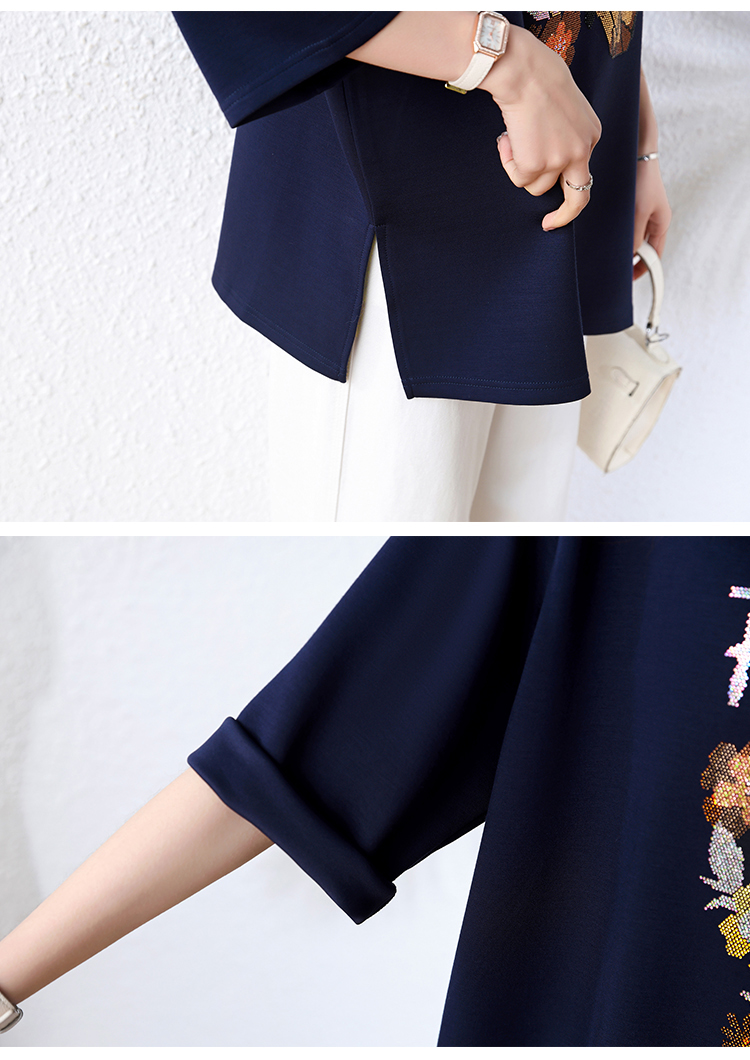RY2598# 实拍大码女装中式国风夏季蕾丝拼接修身显瘦绣花上衣+短裤套装